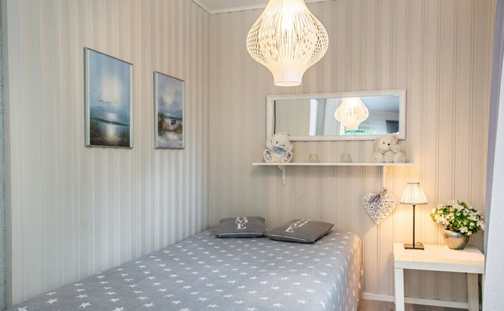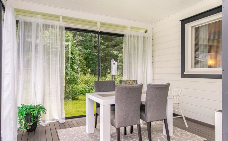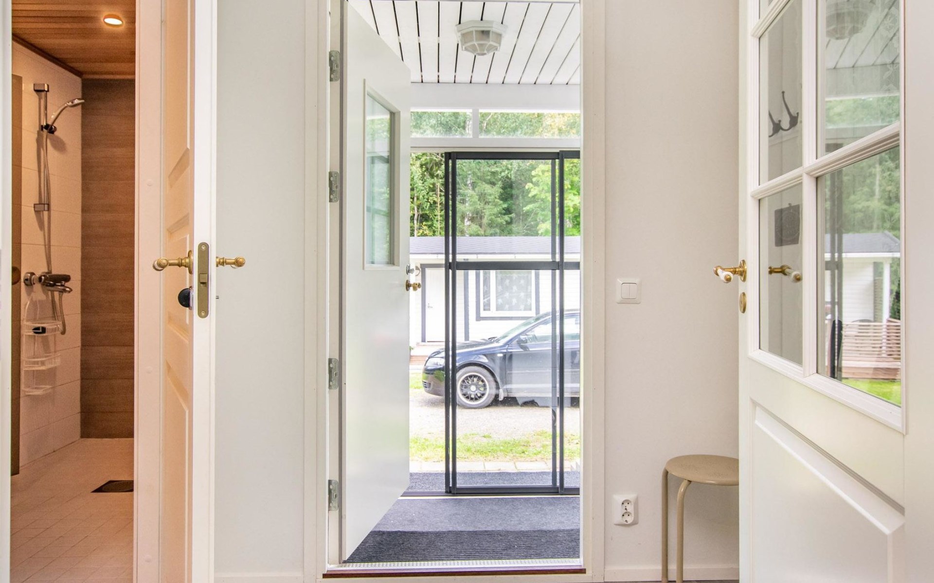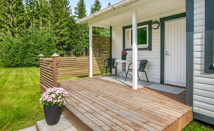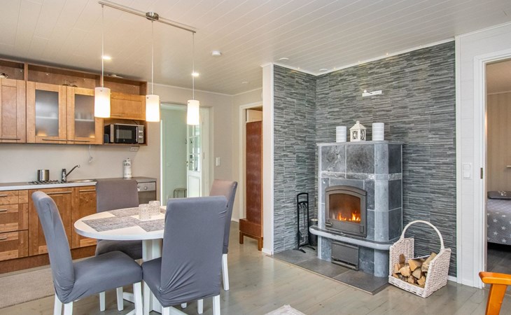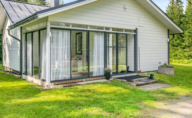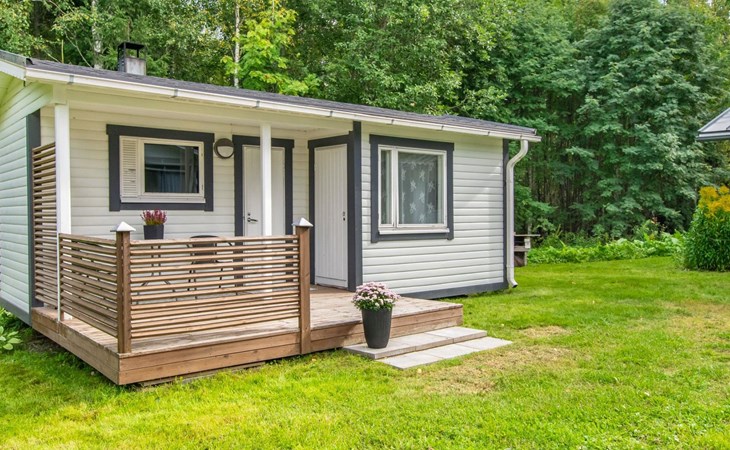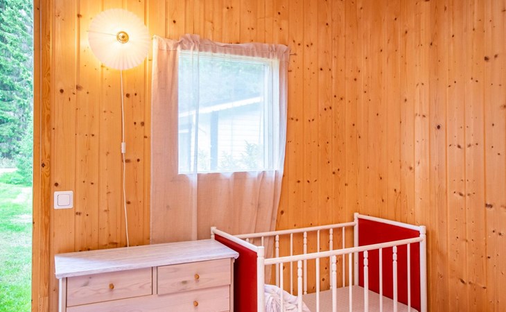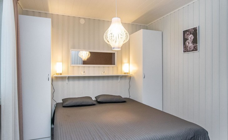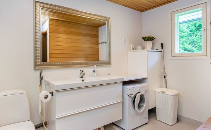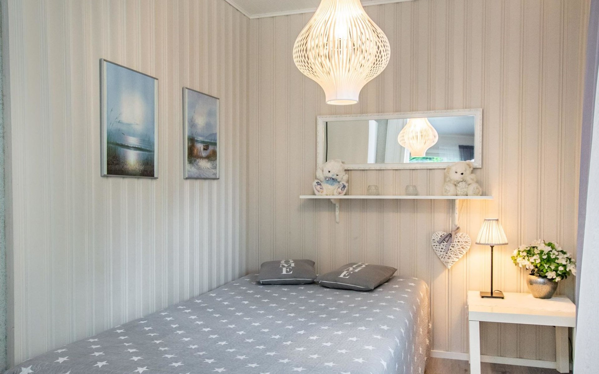 Wooden cottage 1958, renovated 2019, kitchen/living room convertible sofa bed and SMART TV, bedroom with 120 cm wide bed, bedroom with double bed (width 160 cm), hall, porch. Sauna (electric stove), bathroom with shower, WC and dressing room.