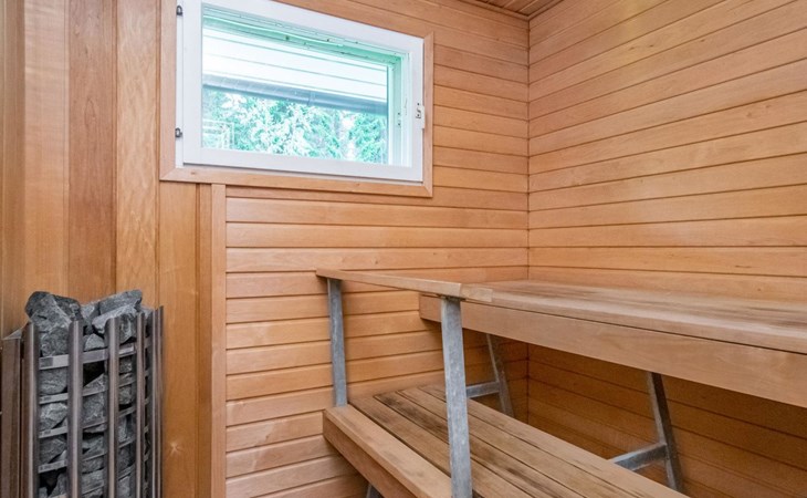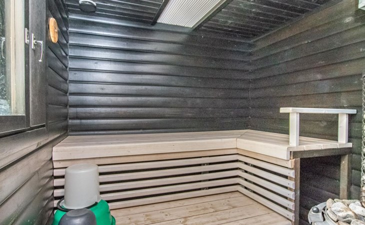 In summer use separate sauna on the cottage yard (it is not a lakeside sauna) with wood fired stove, dressing room with sleeping sofa for two persons, (no shower). Water has to be carried from the main cottage (there is a faucet on the main cottage's outer wall for that), electricity.