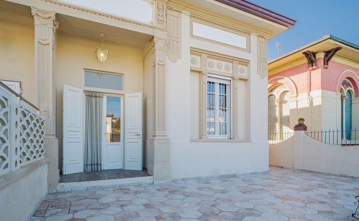 Lido di Camaiore: 2-family house, 2 storeys, renovated in 2024. In the centre of Lido di Camaiore, in a central, quiet position in the residential district, residential area (villas), 400 m from the sea, 400 m from the beach. Private: outdoor shower, garden furniture, planted inner courtyard. Heating available only from 01.Nov. - 07.Apr.. Parking (limited number of spaces) on the premises. Grocery, supermarket, restaurant, bar 200 m, bakery 250 m, pedestrian zone 400 m, bicycle rental 300 m, 5 minute walk to the centre, bus stop 350 m, railway station "Viareggio" 5 km, sandy beach "Lido di Camaiore", public bathing area 400 m. Golf course (18 hole) 15 km, surf school 500 m, tennis 2 km, cycle lane 300 m, children's playground 700 m. Nearby attractions: Firenze 90 m, Lucca 20 m, Pisa 20 m, Forte dei Marmi 15 m, Cinque terre 60 m, Carrara 50 m. Hiking paths: Sentieri Alpi Apuane 15 m. Please note: suitable for families. The owner does not accept any youth groups. Residence with electric gates.