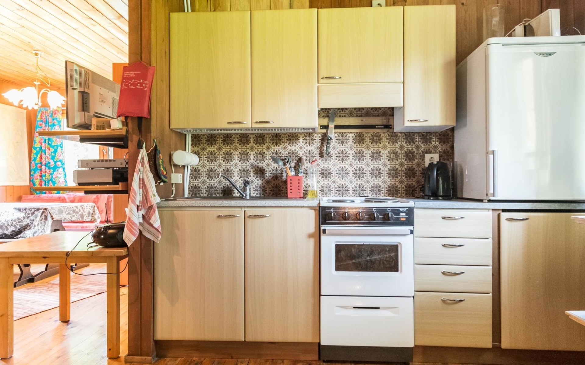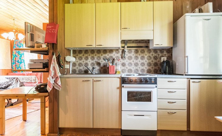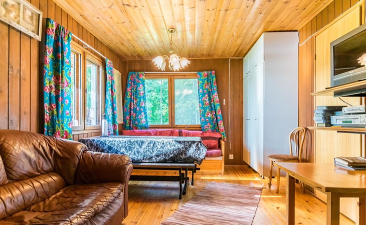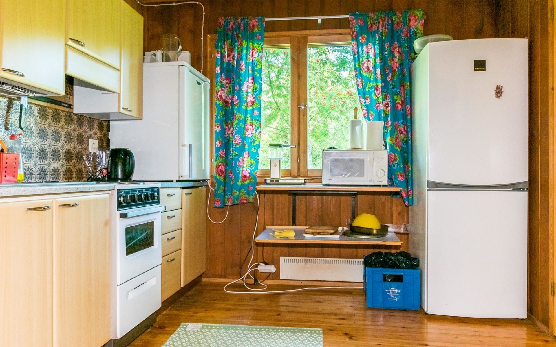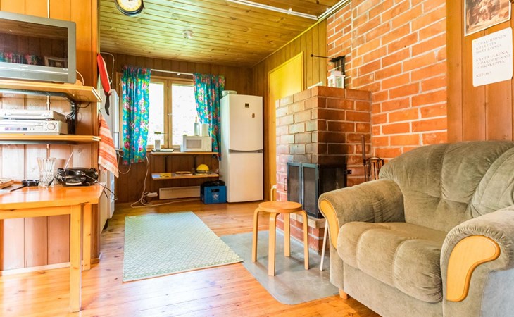 Wooden cottage 1983, living room/kitchen extra bed for 2, 2 bedrooms each with 2 beds, washroom and sauna renovated 2023, open porch. A small freezer and a second refrigerator are available from the owner upon pre-order.