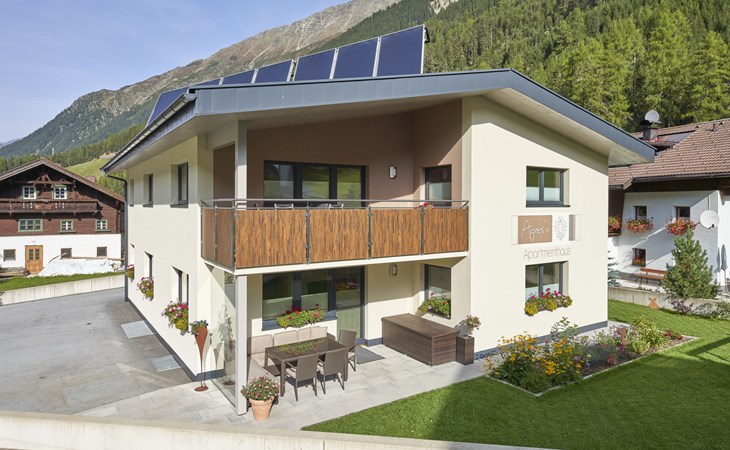 Gries 6 km from Längenfeld: Modern, comfortable apartment block "Agnesn". In the resort, in a quiet, sunny position, 500 m from the skiing area. For shared use: terrace (50 m2), barbecue. In the house: internet access, storage room for bicycles, storage room for skis, central heating system, air conditioning (extra), ski boot dryer. Towel change weekly. Bread roll service. Parking at the house. Grocery 500 m, supermarket 6 km, restaurant 200 m, bus stop 200 m, outdoor swimming pool 6 km. Tennis 6 km, riding stable 6 km, walking paths from the house 30 m, ski lift 500 m, ski rental 400 m, ski bus stop 200 m, ski school, cross country ski track 30 m, ice rink 300 m. Nearby attractions: Outdoor Park 'Area 47' 26 km. Well-known ski regions can easily be reached: Sölden 20 km. Please note: ski bus (free of charge). Free ski bus service to the ski region Längenfeld - Sölden.