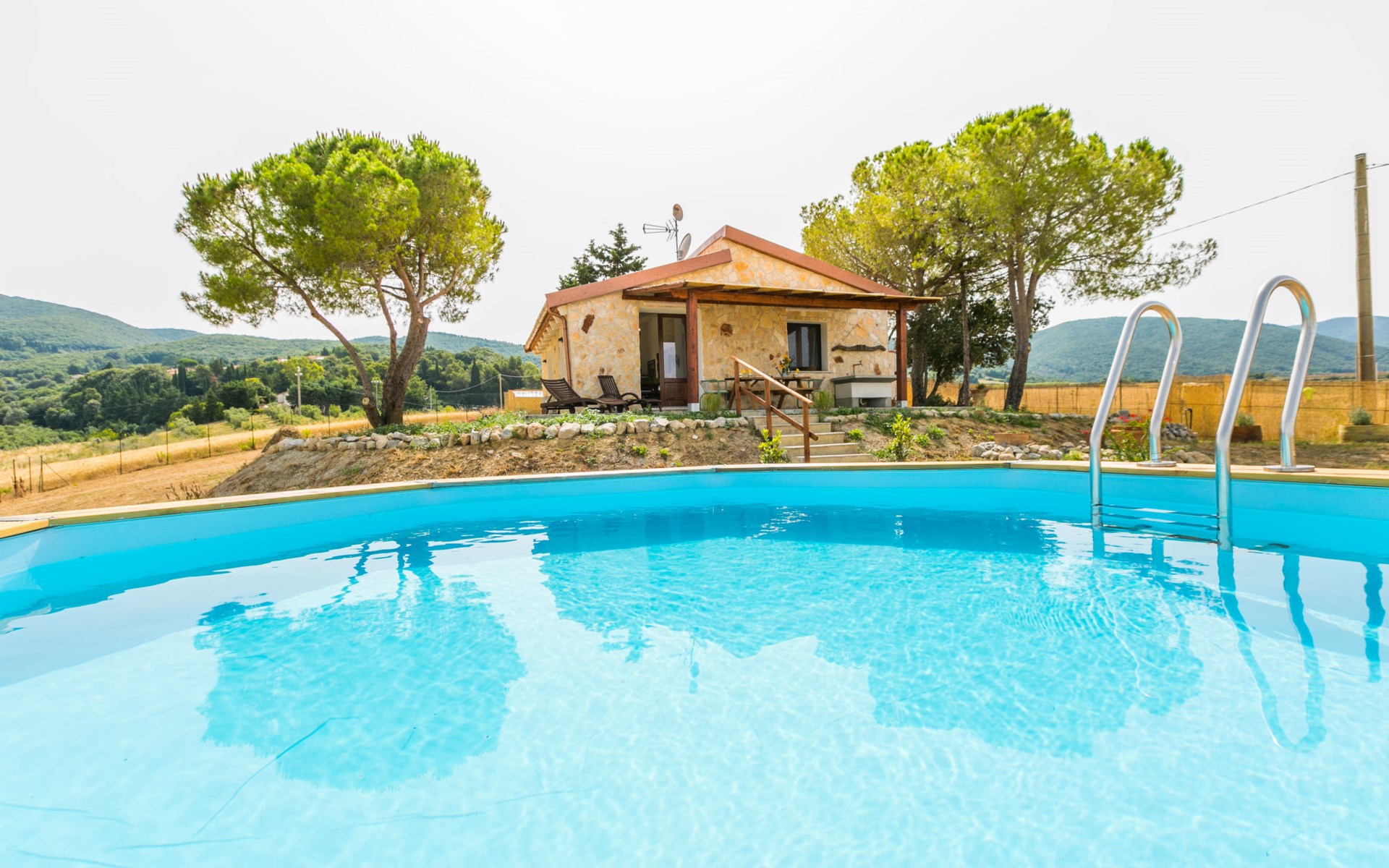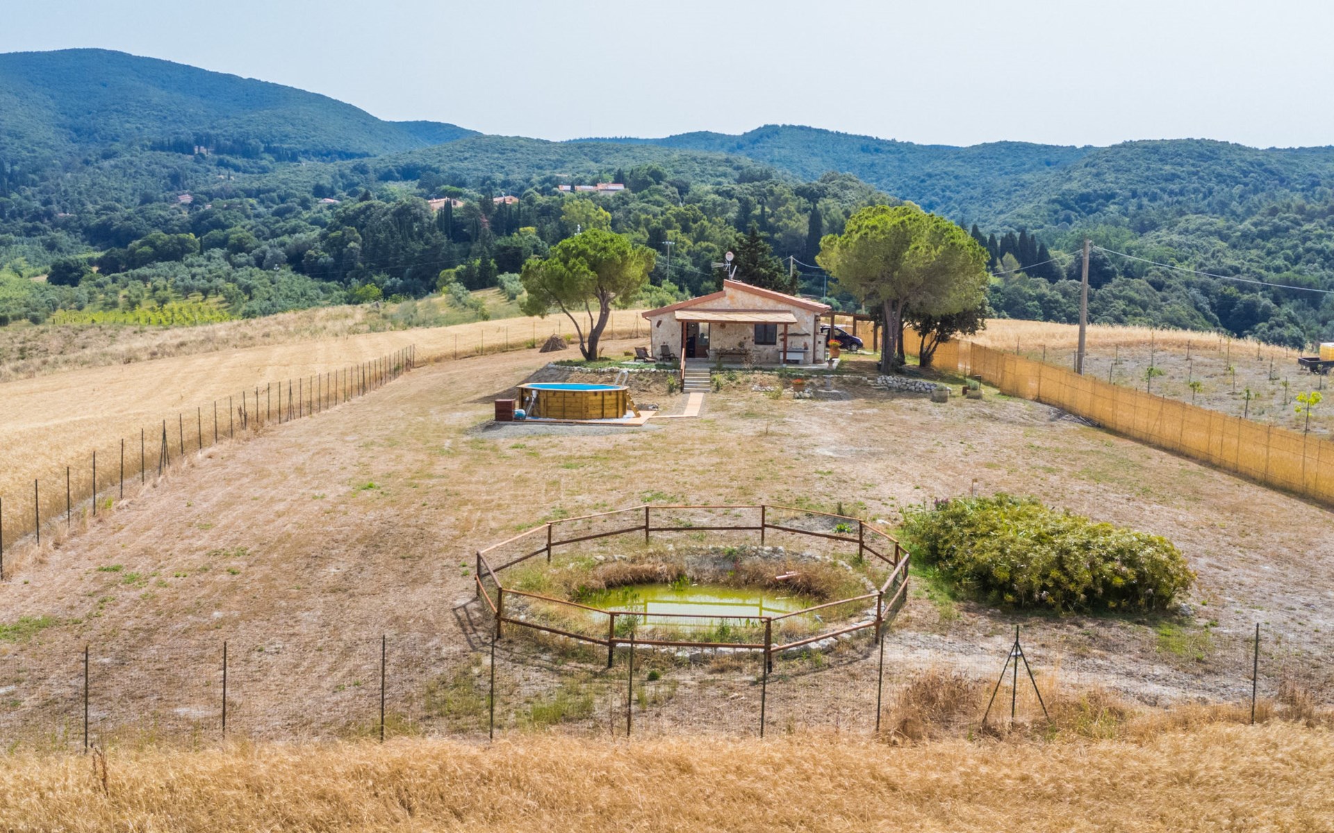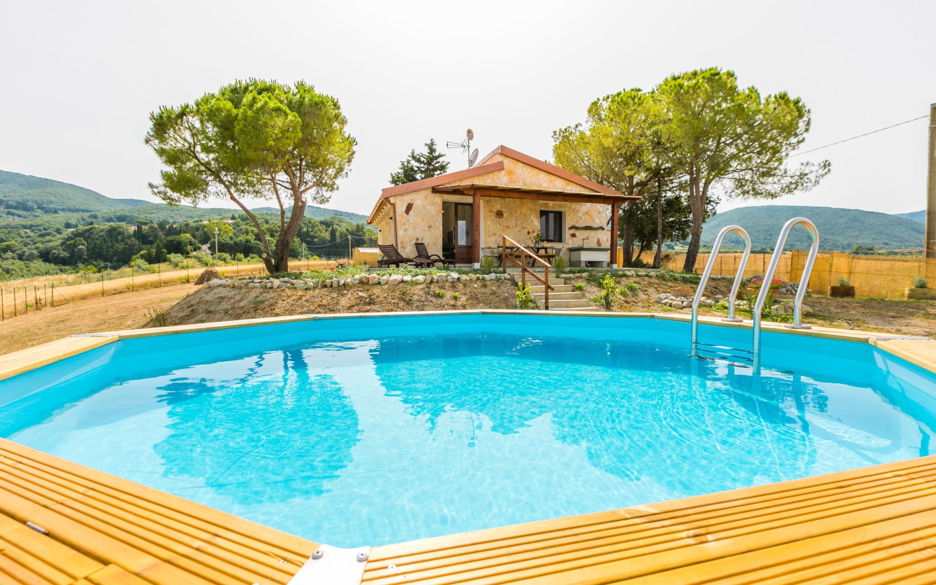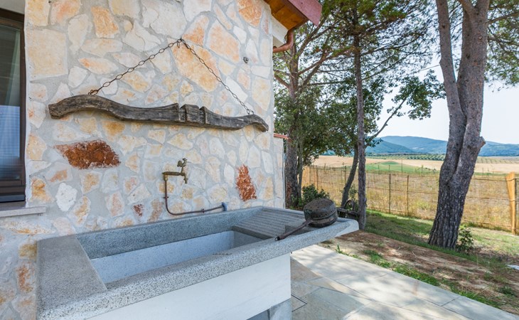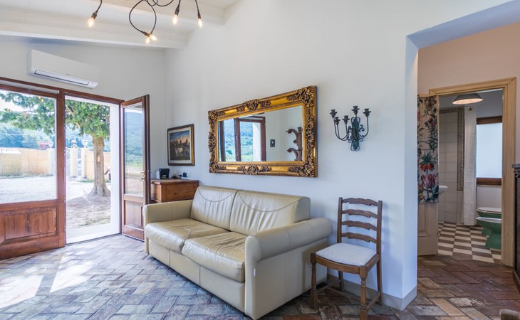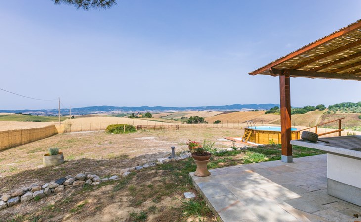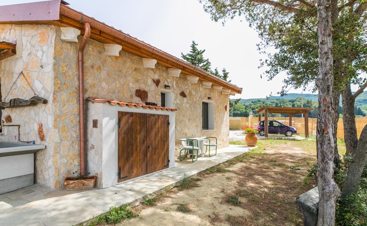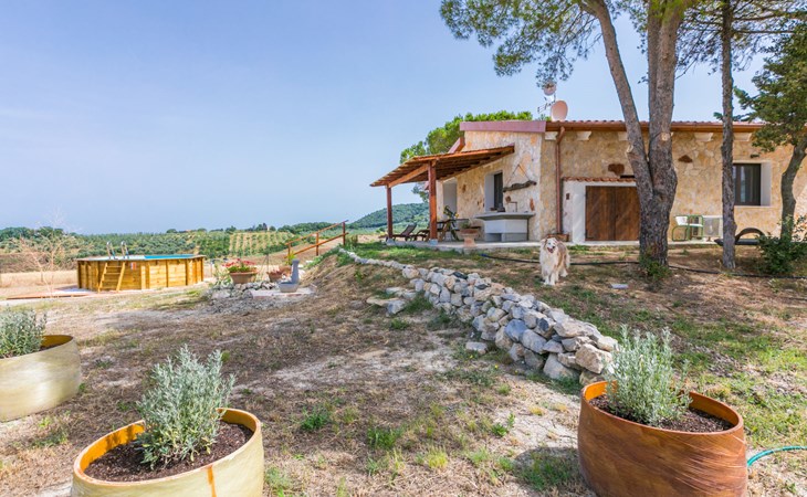 House "Casaletto Anticaluce", detached from the 18th century, renovated in 2024. 1.5 km from the centre of Pastina, 4 km from the centre of Pomaia, in a secluded, sunny position, 18 km from the sea, 18 km from the beach. Private: natural state property 2'500 m2 (fenced), natural garden, natural pond, swimming pool (above ground) (5 m diameter, depth 125 - 125 cm, seasonal availability: 12.Apr. - 25.Oct.). Outdoor shower, pool maintenance by the owner/gardener. Linen change (suppl. charge extra). Towel change (suppl. charge extra). Bumpy motor access (600 m via unmade road). Roofed, parking on the premises. Grocery 1.4 km, supermarket 15 km, restaurant 1.4 km, bus stop "Località Querciolo" 900 m, railway station "Rosignano Solvay" 18 km, sandy beach 18 km, rocky beach 18 km, thermal baths "Casciana Terme" 19 km. Marina 18 km. Nearby attractions: Pisa 45 km, Lucca 80 km, Firenze 95 km. Well-known lakes can easily be reached: Riserva Naturale Lago di Santa Luce 8 km.