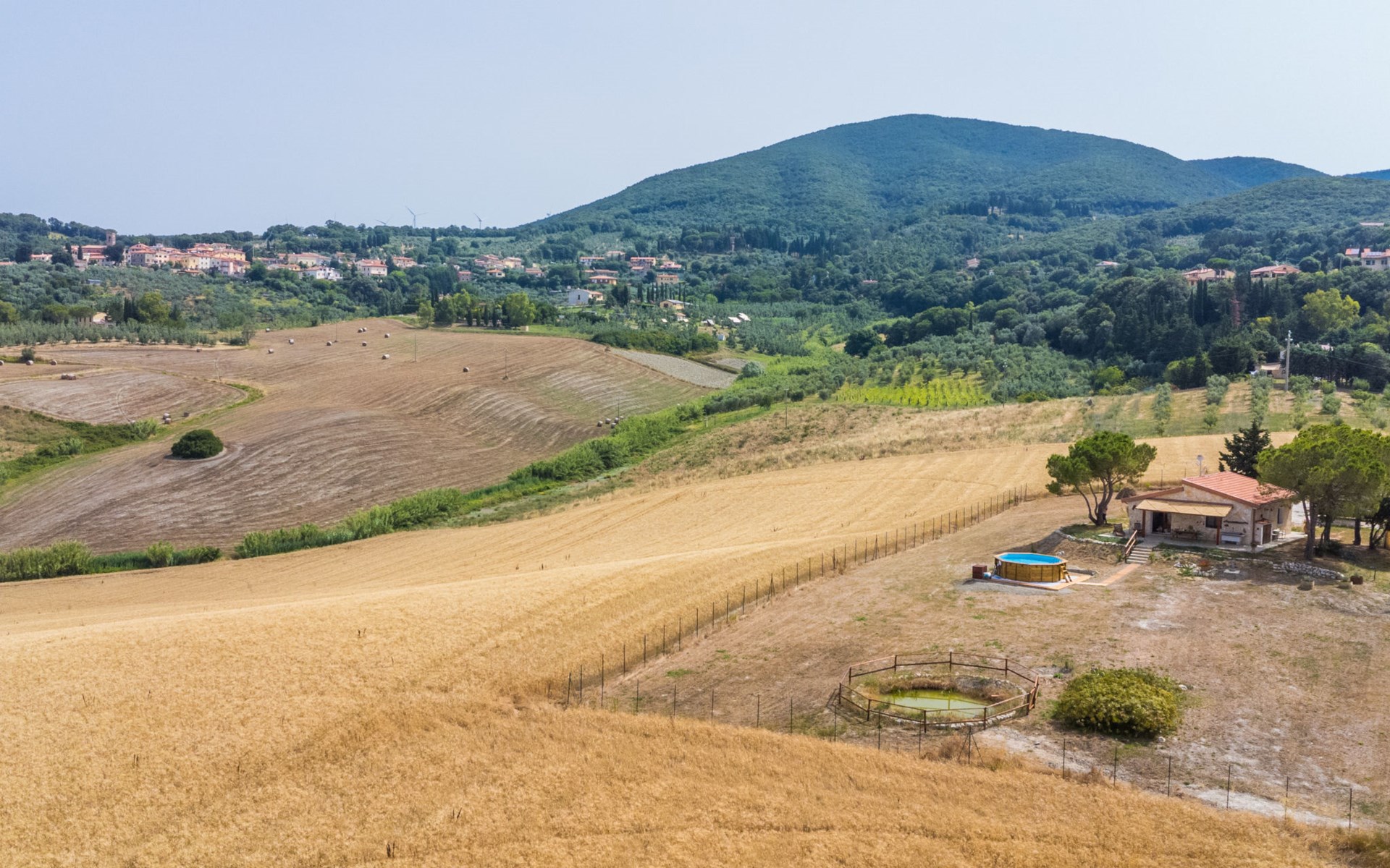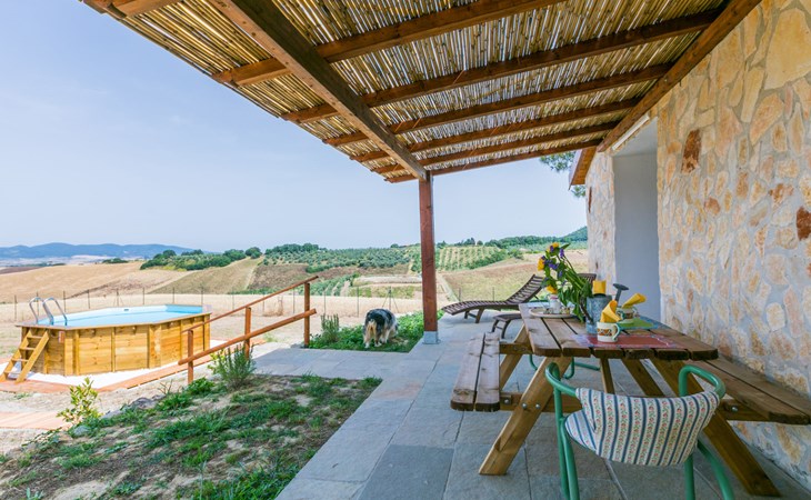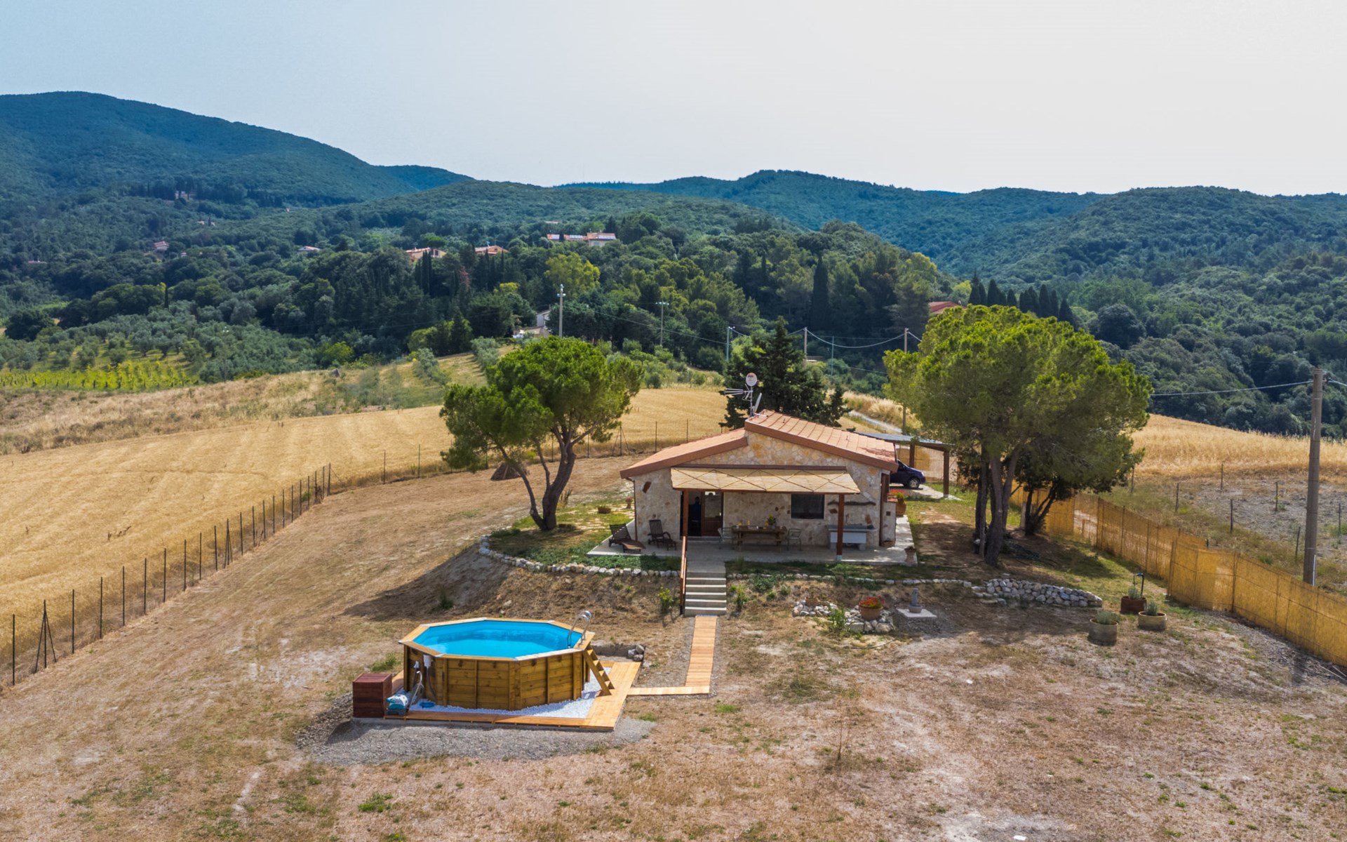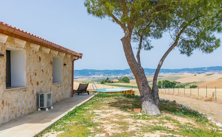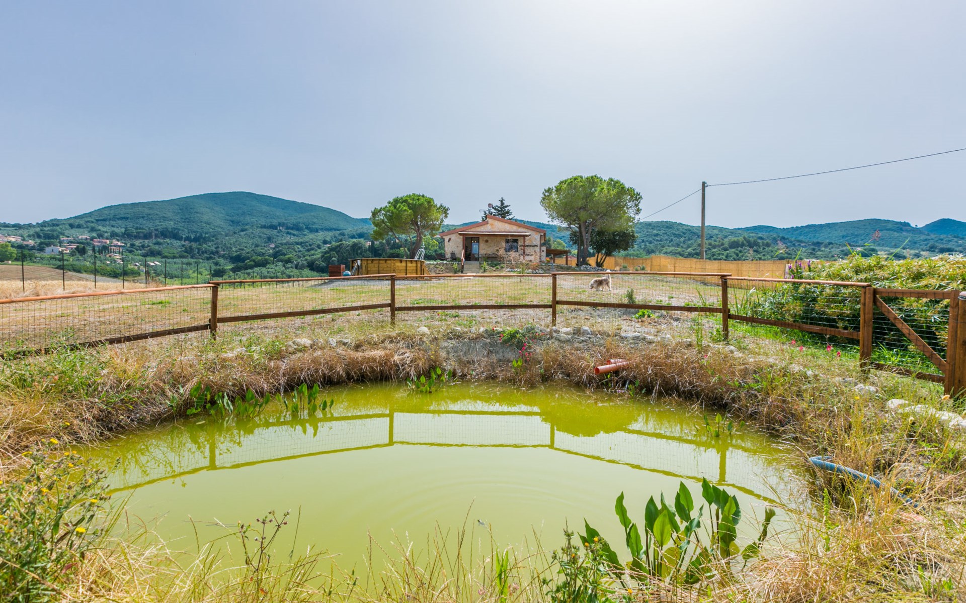 House "Casaletto Anticaluce", detached from the 18th century, renovated in 2024. 1.5 km from the centre of Pastina, 4 km from the centre of Pomaia, in a secluded, sunny position, 18 km from the sea, 18 km from the beach. Private: natural state property 2'500 m2 (fenced), natural garden, natural pond, swimming pool (above ground) (5 m diameter, depth 125 - 125 cm, seasonal availability: 12.Apr. - 25.Oct.). Outdoor shower, pool maintenance by the owner/gardener. Linen change (suppl. charge extra). Towel change (suppl. charge extra). Bumpy motor access (600 m via unmade road). Roofed, parking on the premises. Grocery 1.4 km, supermarket 15 km, restaurant 1.4 km, bus stop "Località Querciolo" 900 m, railway station "Rosignano Solvay" 18 km, sandy beach 18 km, rocky beach 18 km, thermal baths "Casciana Terme" 19 km. Marina 18 km. Nearby attractions: Pisa 45 km, Lucca 80 km, Firenze 95 km. Well-known lakes can easily be reached: Riserva Naturale Lago di Santa Luce 8 km.