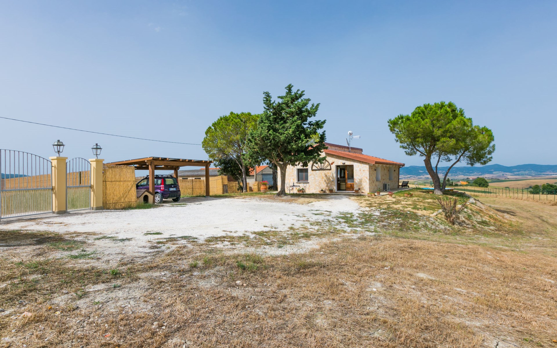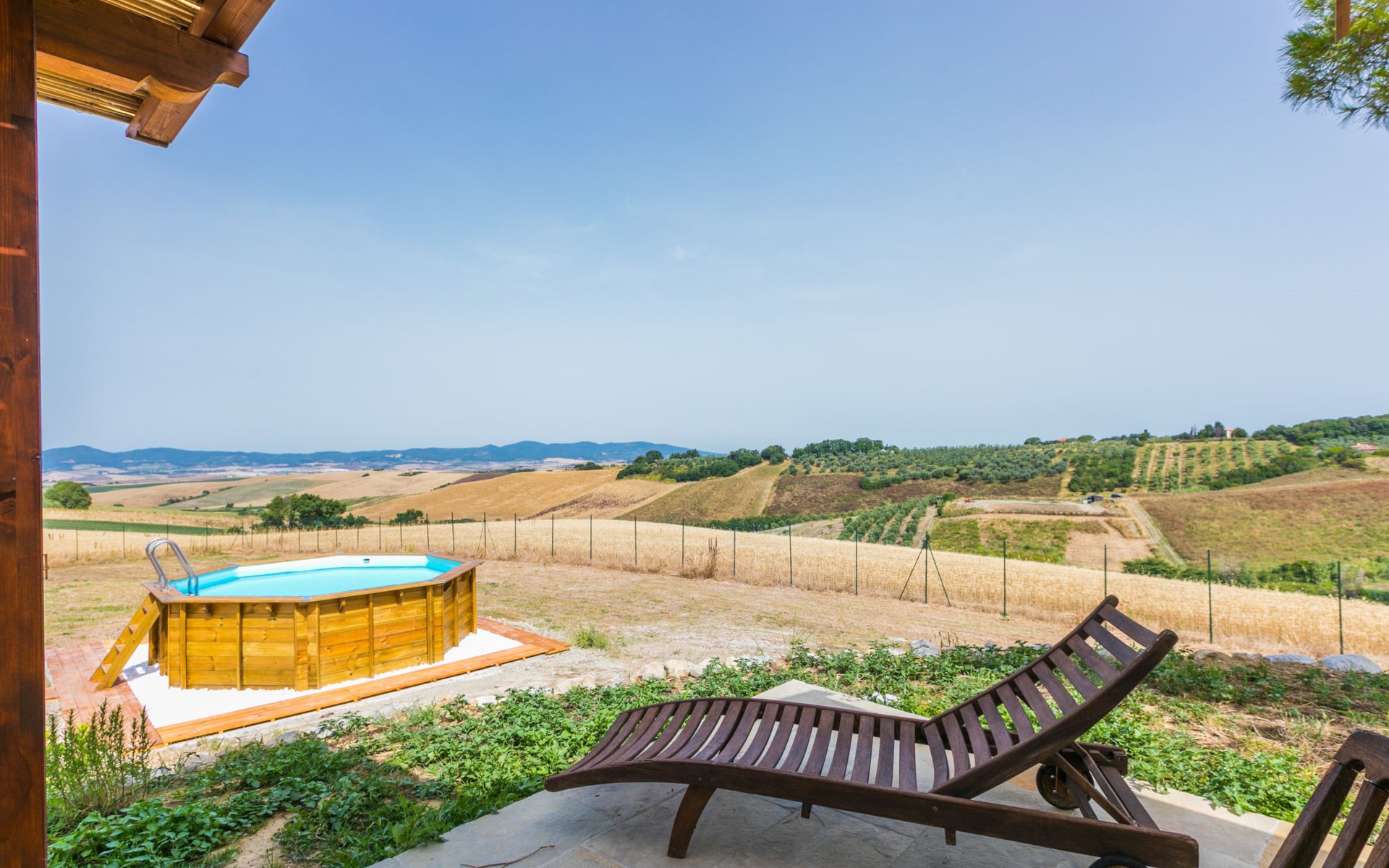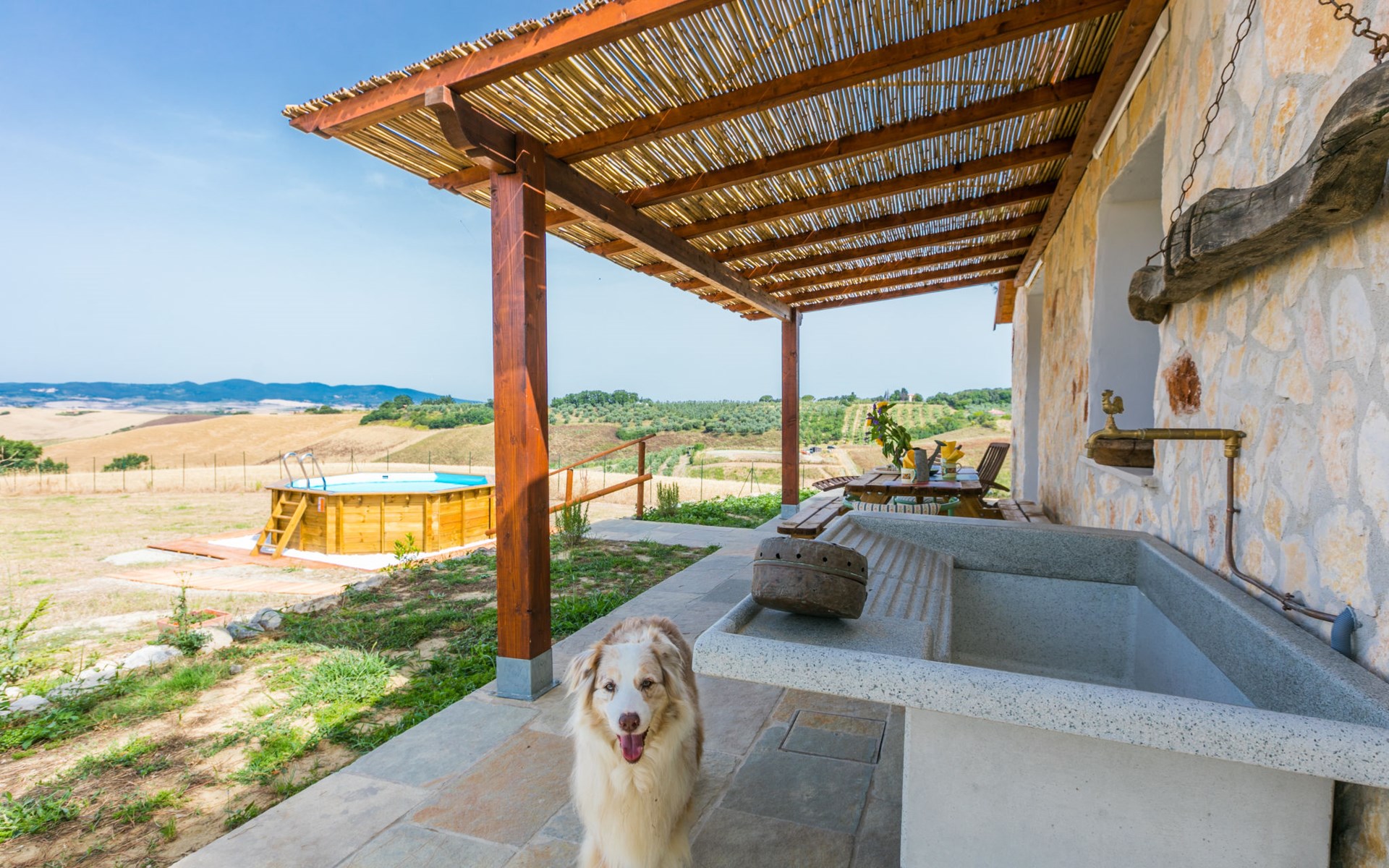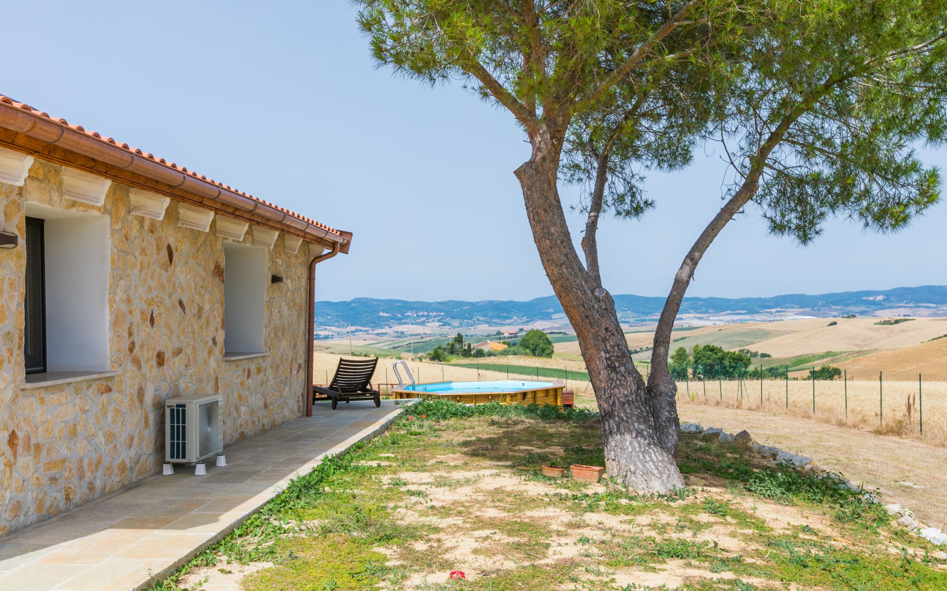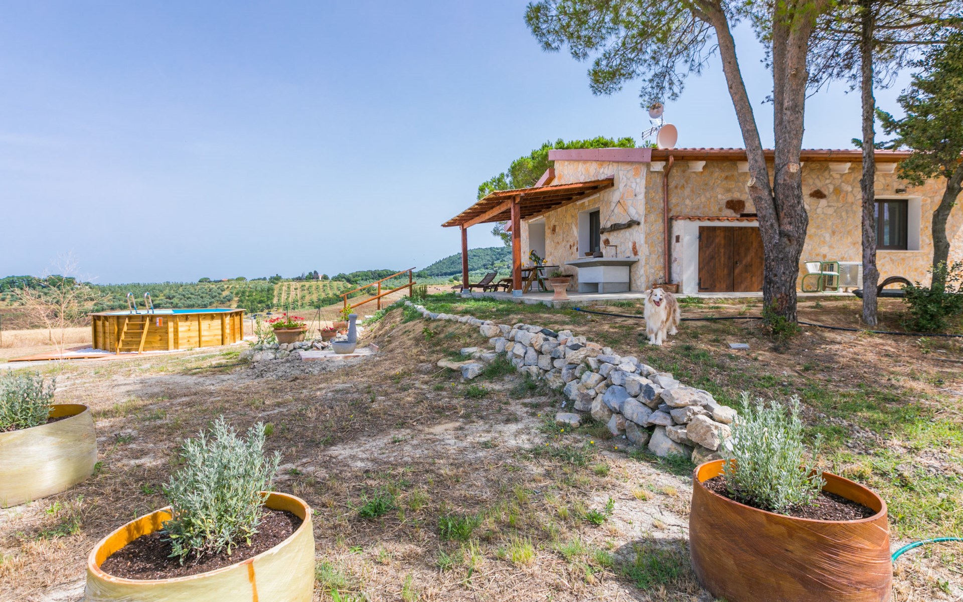 House "Casaletto Anticaluce", detached from the 18th century, renovated in 2024. 1.5 km from the centre of Pastina, 4 km from the centre of Pomaia, in a secluded, sunny position, 18 km from the sea, 18 km from the beach. Private: natural state property 2'500 m2 (fenced), natural garden, natural pond, swimming pool (above ground) (5 m diameter, depth 125 - 125 cm, seasonal availability: 12.Apr. - 25.Oct.). Outdoor shower, pool maintenance by the owner/gardener. Linen change (suppl. charge extra). Towel change (suppl. charge extra). Bumpy motor access (600 m via unmade road). Roofed, parking on the premises. Grocery 1.4 km, supermarket 15 km, restaurant 1.4 km, bus stop "Località Querciolo" 900 m, railway station "Rosignano Solvay" 18 km, sandy beach 18 km, rocky beach 18 km, thermal baths "Casciana Terme" 19 km. Marina 18 km. Nearby attractions: Pisa 45 km, Lucca 80 km, Firenze 95 km. Well-known lakes can easily be reached: Riserva Naturale Lago di Santa Luce 8 km.