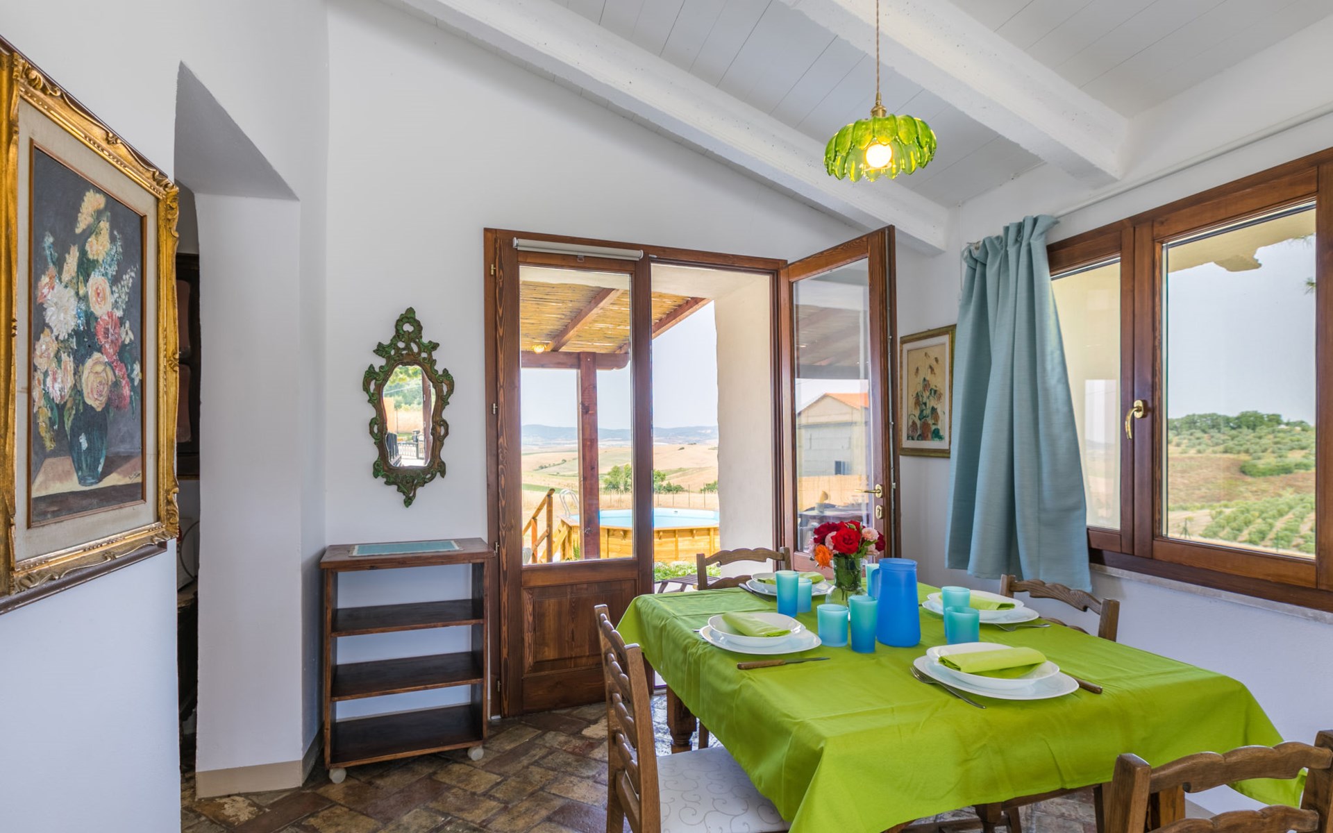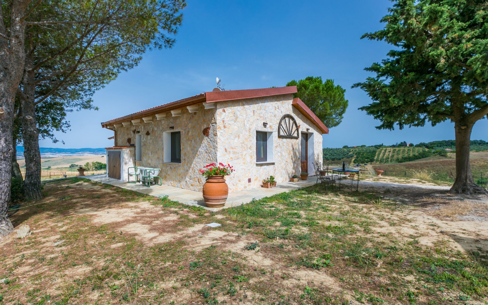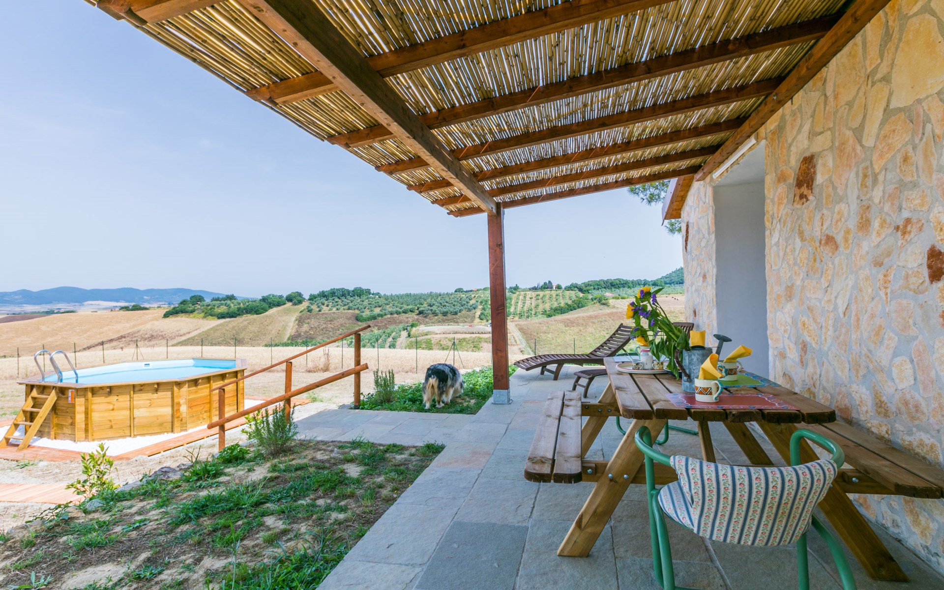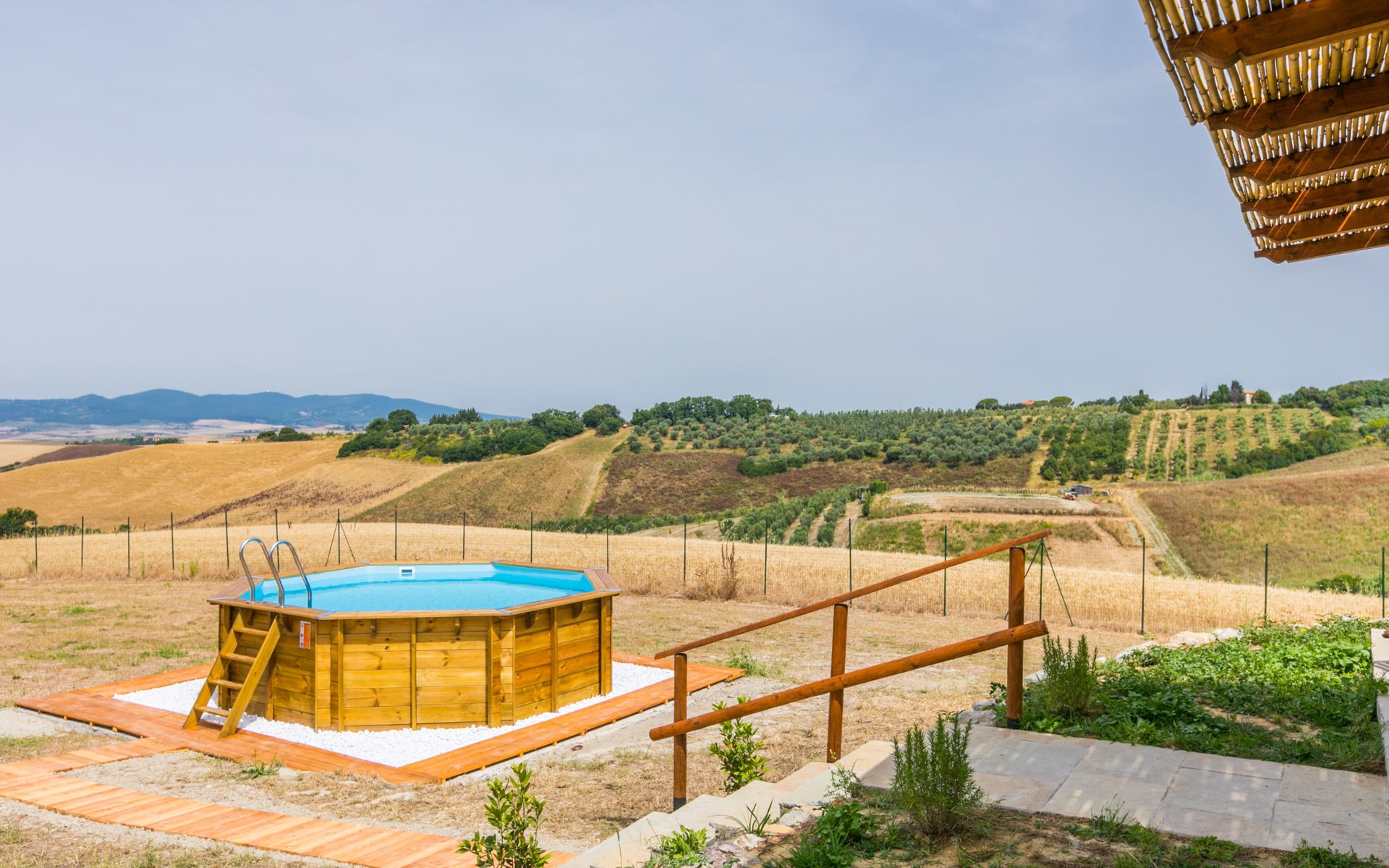 House "Casaletto Anticaluce", detached from the 18th century, renovated in 2024. 1.5 km from the centre of Pastina, 4 km from the centre of Pomaia, in a secluded, sunny position, 18 km from the sea, 18 km from the beach. Private: natural state property 2'500 m2 (fenced), natural garden, natural pond, swimming pool (above ground) (5 m diameter, depth 125 - 125 cm, seasonal availability: 12.Apr. - 25.Oct.). Outdoor shower, pool maintenance by the owner/gardener. Linen change (suppl. charge extra). Towel change (suppl. charge extra). Bumpy motor access (600 m via unmade road). Roofed, parking on the premises. Grocery 1.4 km, supermarket 15 km, restaurant 1.4 km, bus stop "Località Querciolo" 900 m, railway station "Rosignano Solvay" 18 km, sandy beach 18 km, rocky beach 18 km, thermal baths "Casciana Terme" 19 km. Marina 18 km. Nearby attractions: Pisa 45 km, Lucca 80 km, Firenze 95 km. Well-known lakes can easily be reached: Riserva Naturale Lago di Santa Luce 8 km.