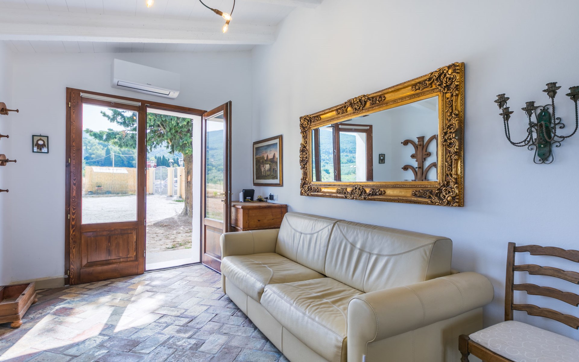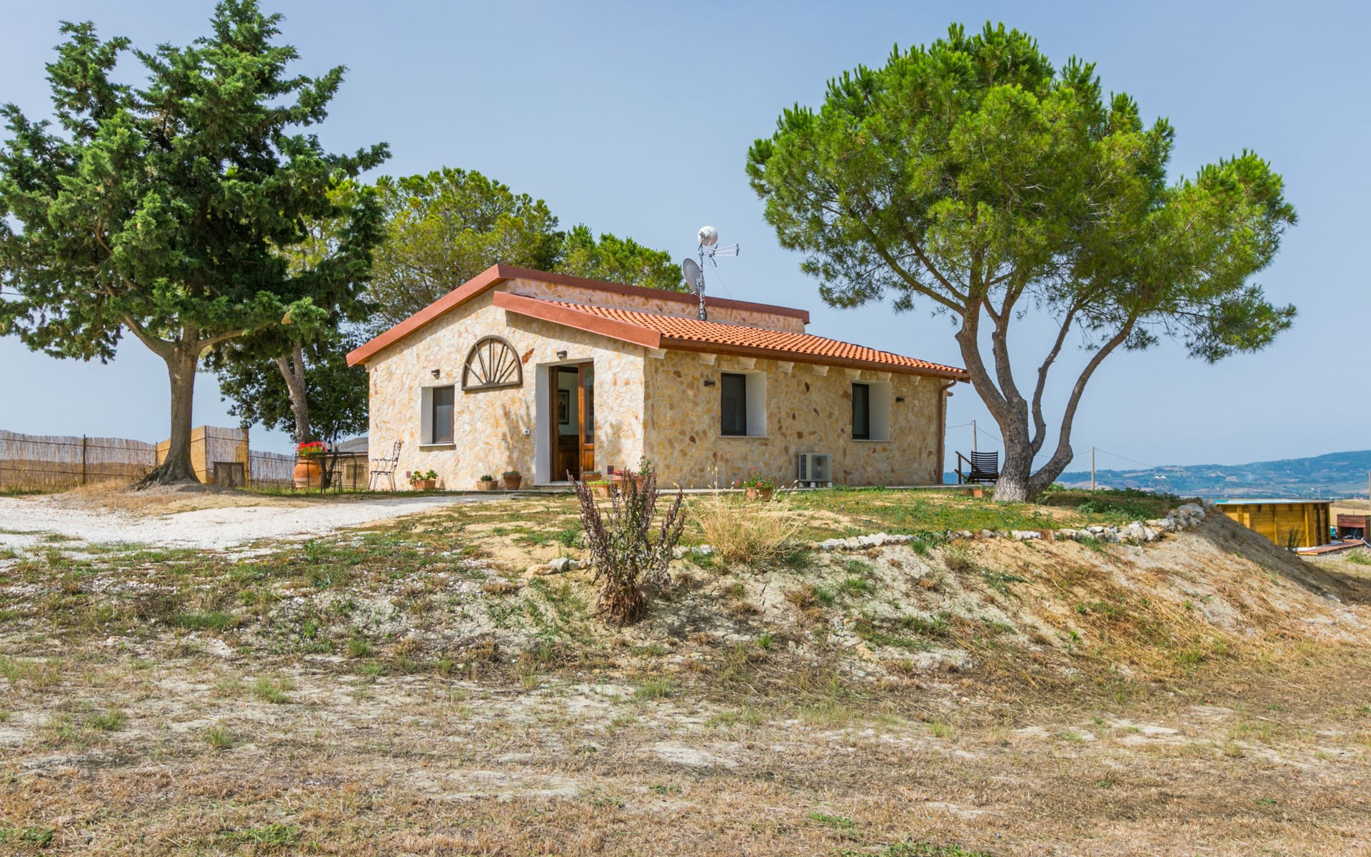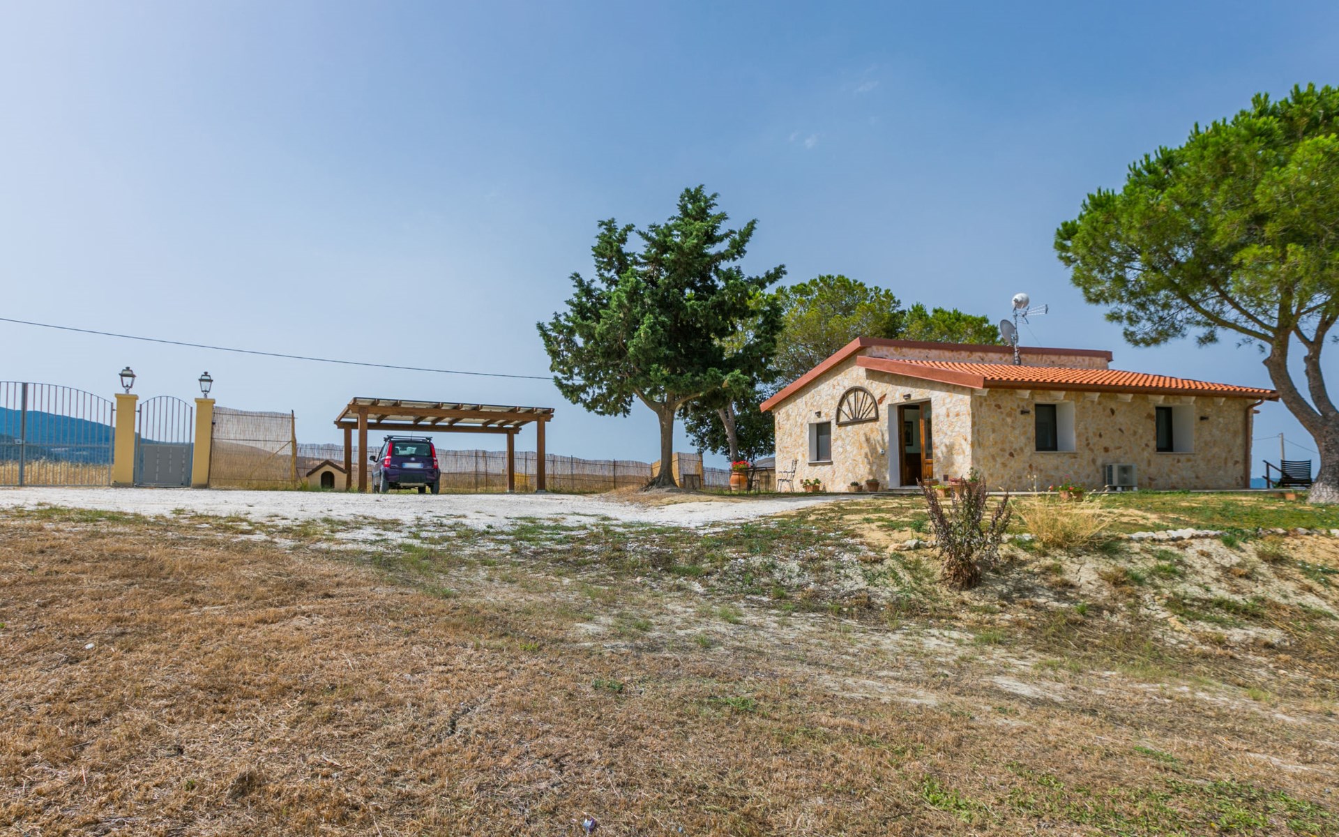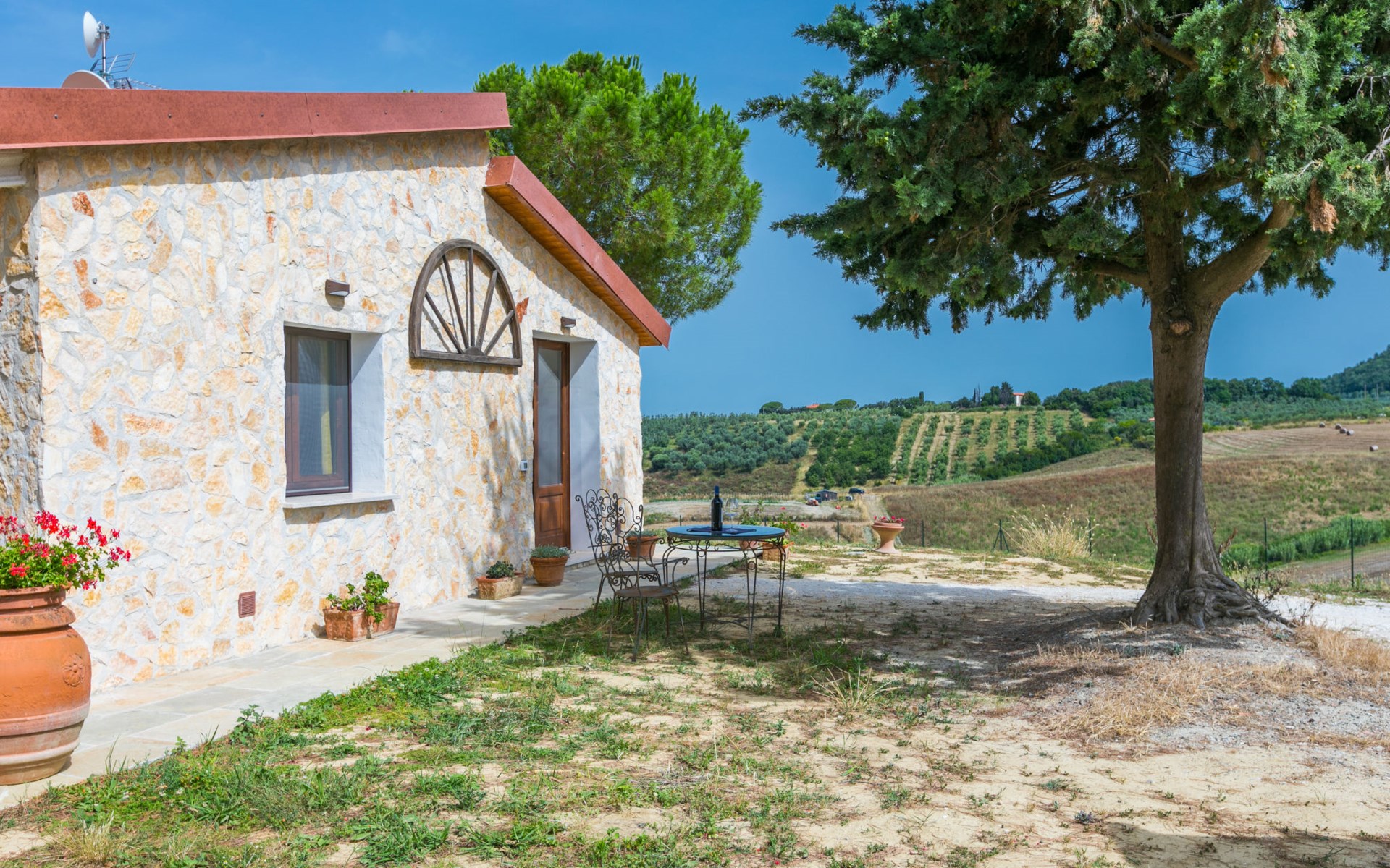 House "Casaletto Anticaluce", detached from the 18th century, renovated in 2024. 1.5 km from the centre of Pastina, 4 km from the centre of Pomaia, in a secluded, sunny position, 18 km from the sea, 18 km from the beach. Private: natural state property 2'500 m2 (fenced), natural garden, natural pond, swimming pool (above ground) (5 m diameter, depth 125 - 125 cm, seasonal availability: 12.Apr. - 25.Oct.). Outdoor shower, pool maintenance by the owner/gardener. Linen change (suppl. charge extra). Towel change (suppl. charge extra). Bumpy motor access (600 m via unmade road). Roofed, parking on the premises. Grocery 1.4 km, supermarket 15 km, restaurant 1.4 km, bus stop "Località Querciolo" 900 m, railway station "Rosignano Solvay" 18 km, sandy beach 18 km, rocky beach 18 km, thermal baths "Casciana Terme" 19 km. Marina 18 km. Nearby attractions: Pisa 45 km, Lucca 80 km, Firenze 95 km. Well-known lakes can easily be reached: Riserva Naturale Lago di Santa Luce 8 km.