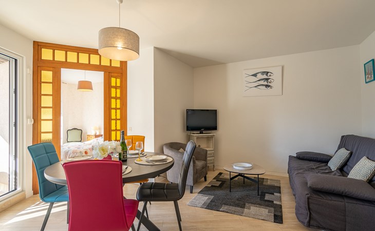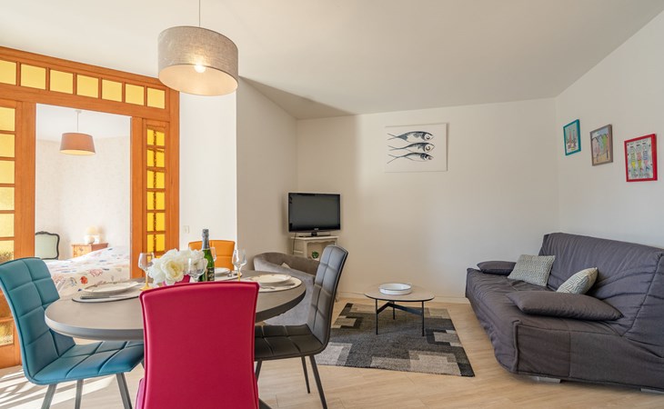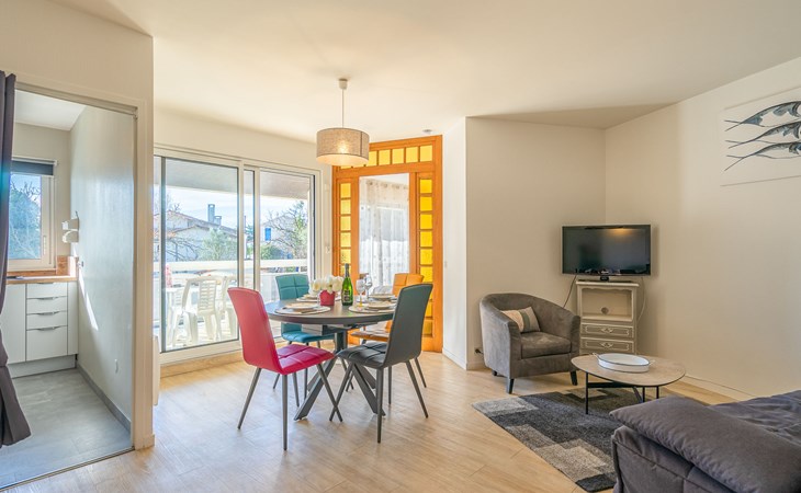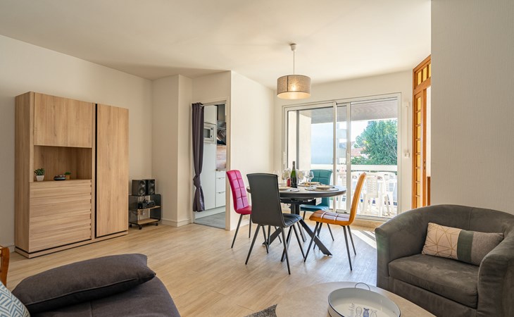 Residence "La Fregate", 4 storeys. In the district of Pontaillac, 2 km from the centre of Vaux sur Mer, 2.5 km from the centre of Royan, 250 m from the sea, 250 m from the beach, on a main road. In the house: lift. Shop, grocery, restaurant, bakery, café 300 m, bus stop "Porte Océane" 150 m, railway station "Royan" 3.2 km, sandy beach "Pontaillac" 250 m, park "Luna Park (Juillet-Août)" 16 km, indoor swimming pool 3 km, thermal baths "Thalassothérapie Thalazur Royan" 1.8 km, lake Métairie - Royan 1.5 km. Sports harbour 2.5 km, golf course (18 hole) 5 km, surf school 250 m, sailing school 2.3 km, tennis 2 km, indoor tennis centre 2 km, minigolf 650 m, riding stable 6 km, cycle lane 50 m. Nearby attractions: Zoo de La Palmyre 12 km, Hippodrome - La Palmyre 13 km, Centre aquatique Iléo - Ile d'Oléron 42 km, Fort Boyard - Fouras 51 km, Aéroport La Rochelle - Ile de Ré 78 km, Aéroport Bordeaux - Merignac 105 km.