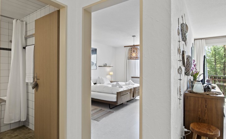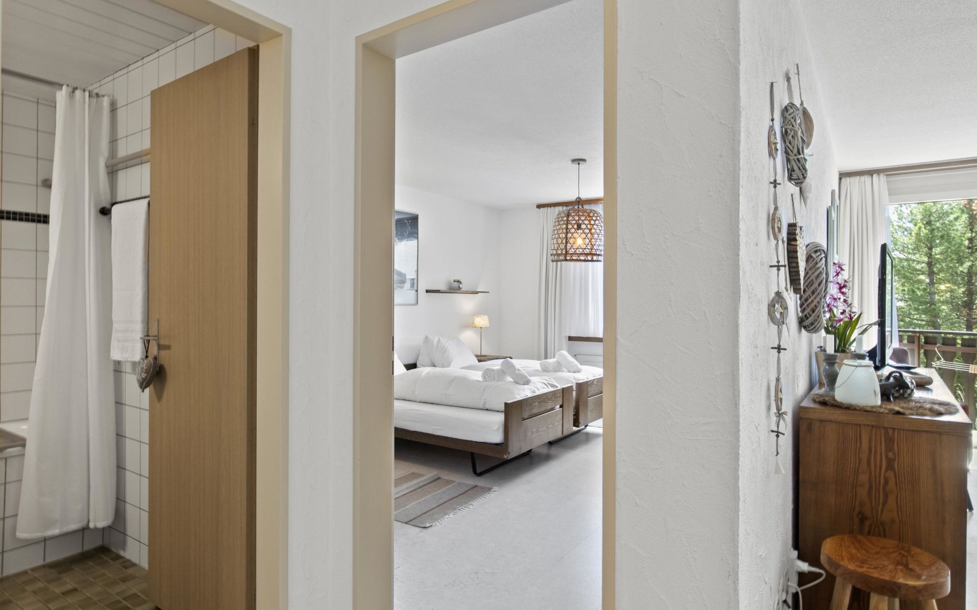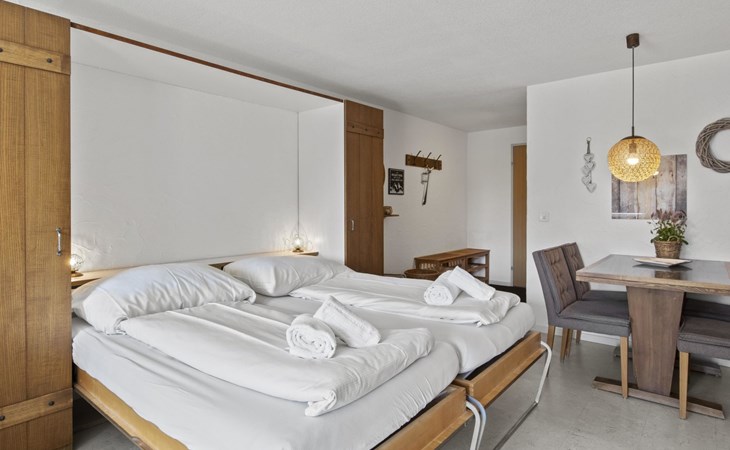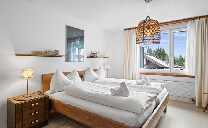 3rd floor / Lift / Wlan yes / 1 room with double bed /1 room in the living area with two cupboard beds / 1 bathroom with WC and bathtub. Dog allowed, but best time must be reported in advance - dog fee The holiday flat is located in the centre of Lenzerheide and is directly at the ski slope/cross-country ski run and close to the free sports bus and various shopping facilities. A good starting point for all winter/summer activities for the whole family. (The holiday flat A301 is also in the same house).
