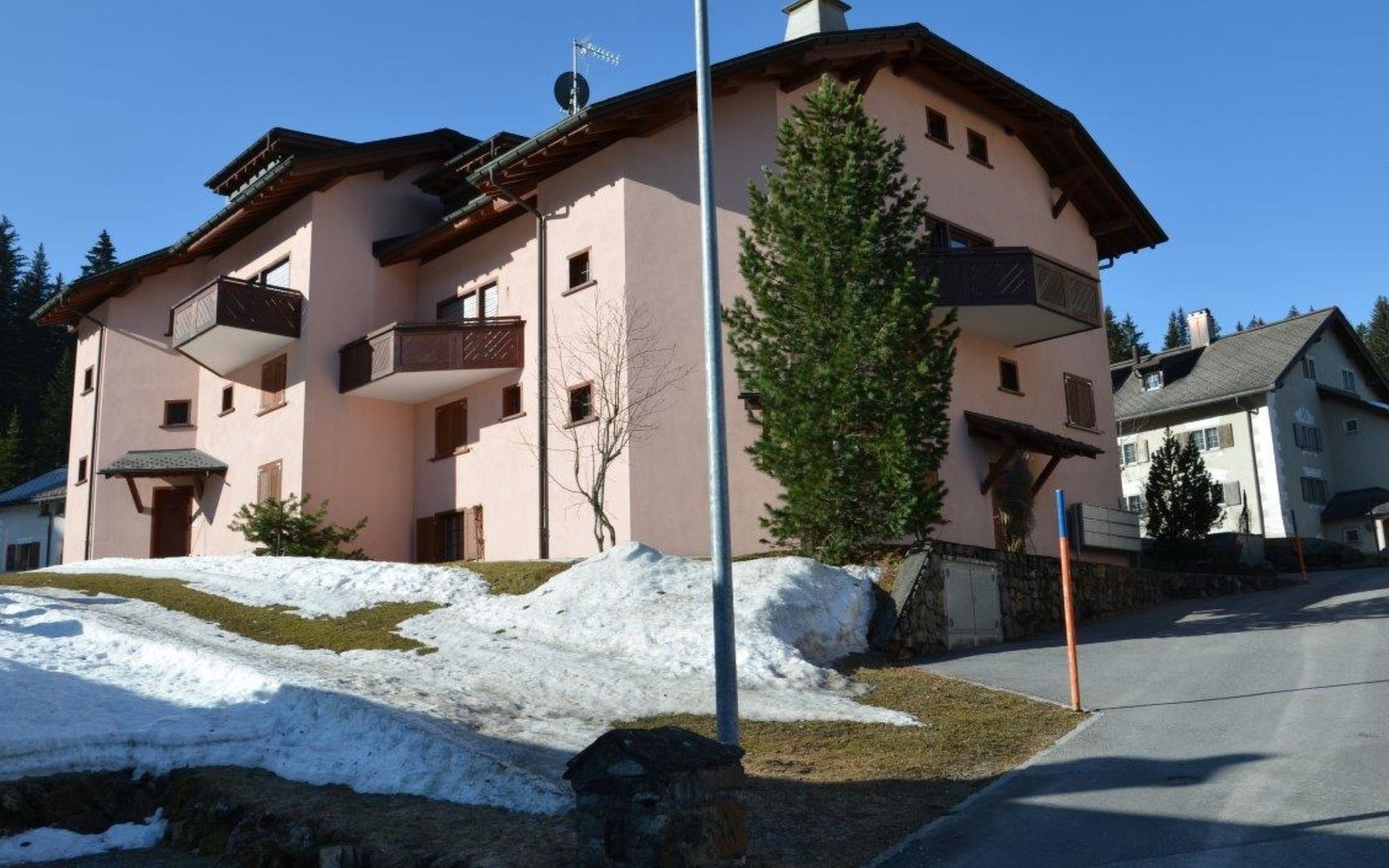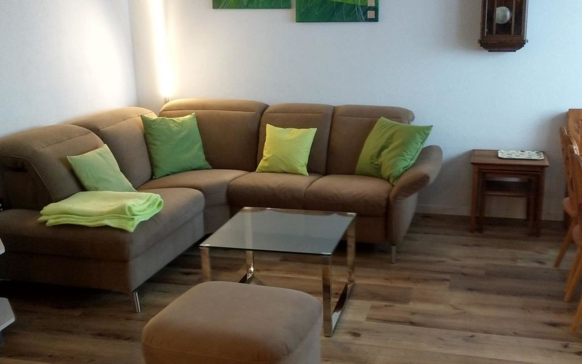 The holiday flat was renovated in the living area / kitchen in 2020. It is on the 2nd floor and is in maisonette style. The holiday flat is equipped for 6 people. It has a living/dining room with a modern kitchen. Crockery and cutlery 12 pieces. 1 shower/WC/double washbasin on the lower floor and 3 bedrooms on the upper floor. TV/radio/lan available free of charge. Ski room in the basement; washing machine/dryer are available in the basement on request.