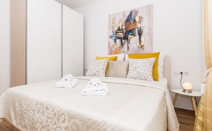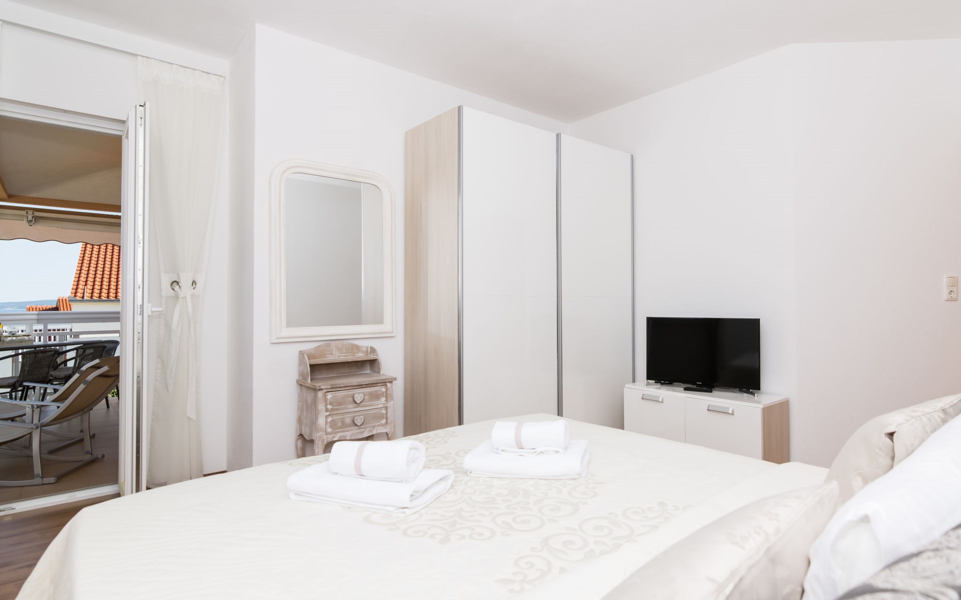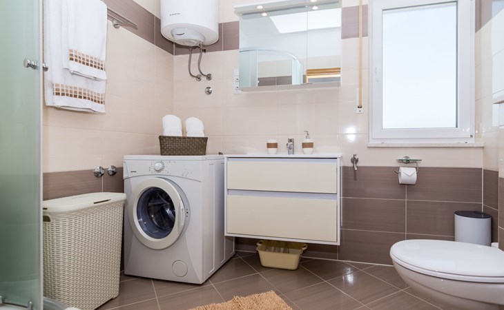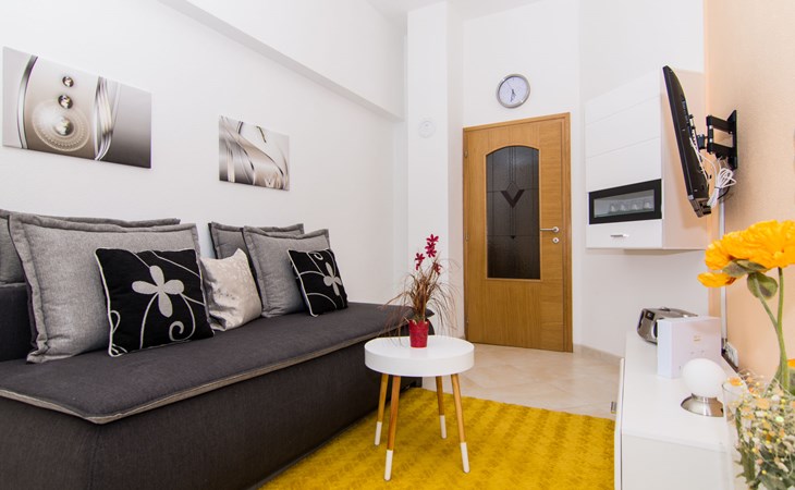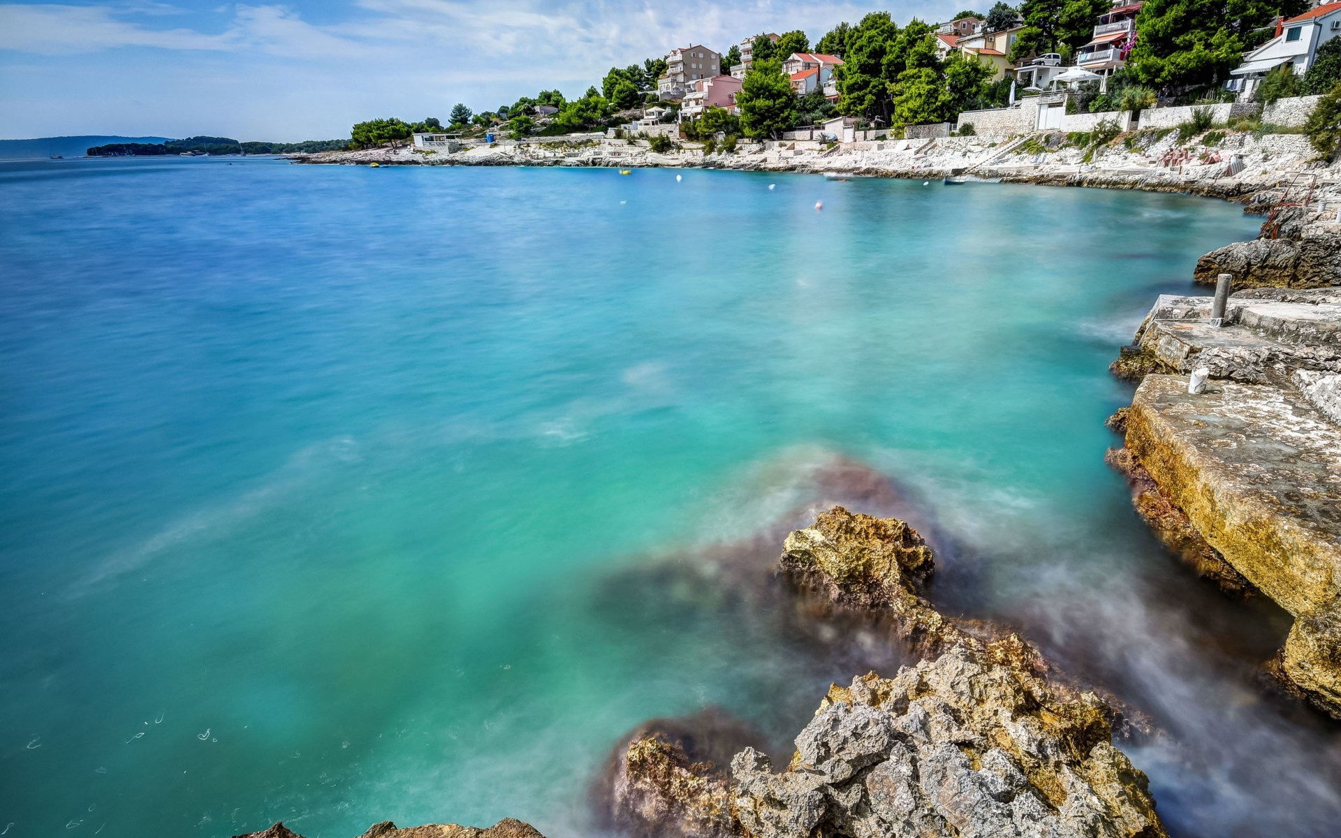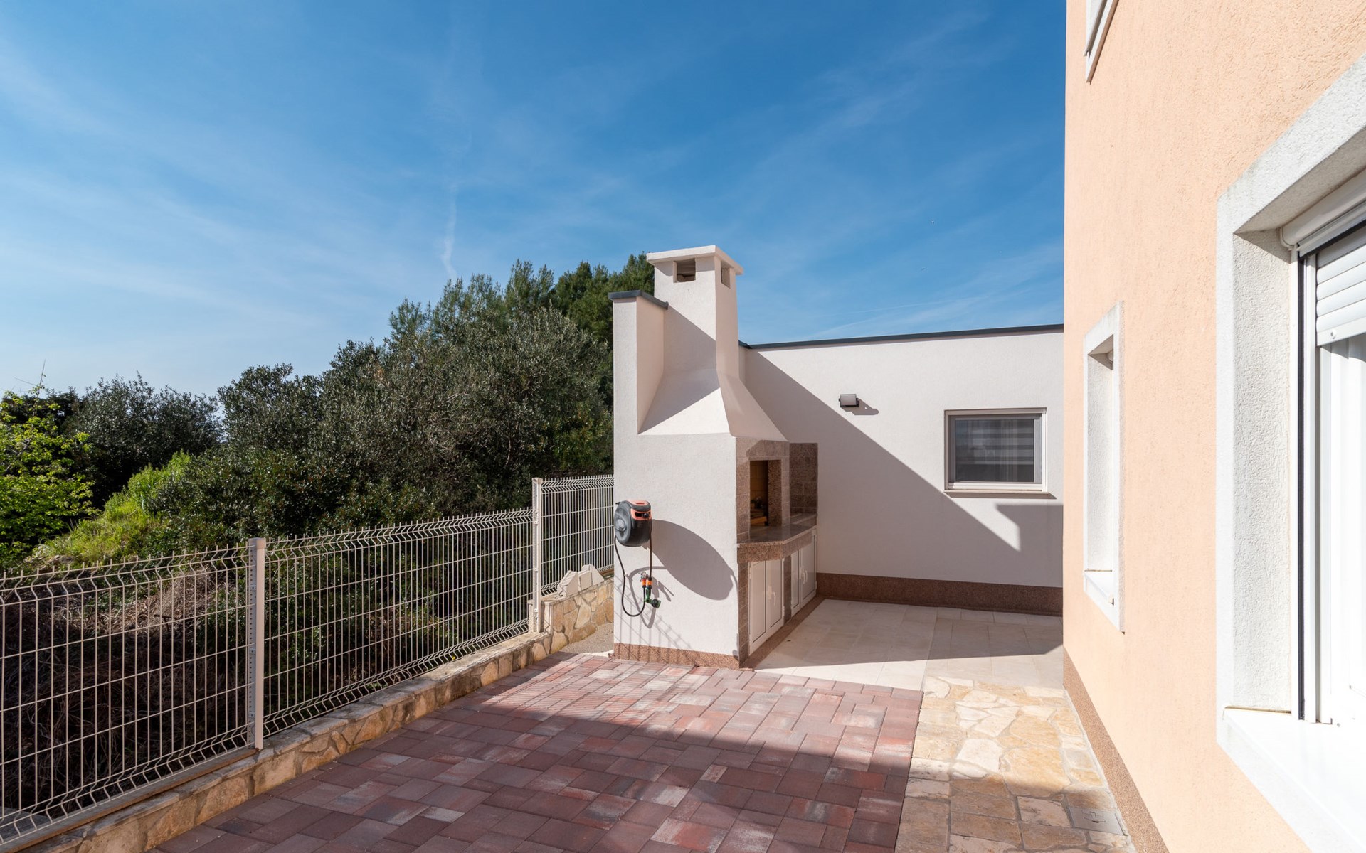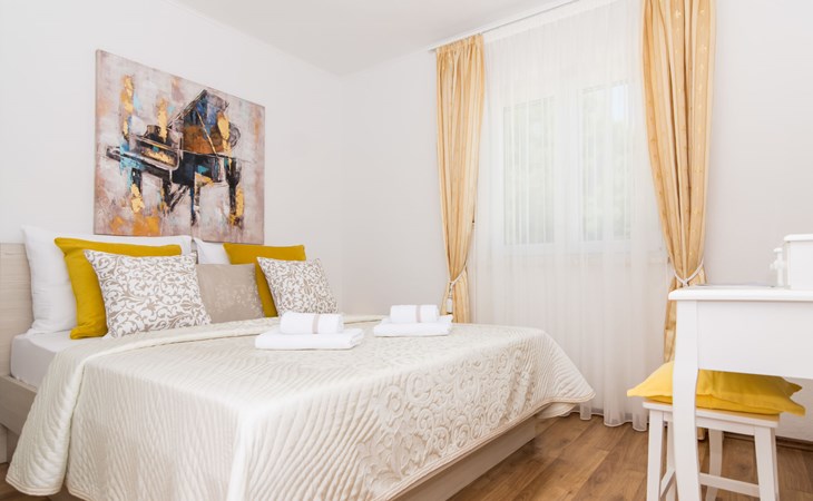 Okrug Gornji (Čiovo) 6 km from Trogir: Beautiful apartment house "Villa Nikaroni". 1.5 km from the centre of Okrug Gornji, in a quiet, sunny position, 250 m from the sea, 250 m from the beach. For shared use: property 1'000 m2, garden with lawn. Barbecue. In the house: internet access. Parking at the house on the premises. Shop, restaurant 650 m, bus stop 2 km, rocky beach 250 m.