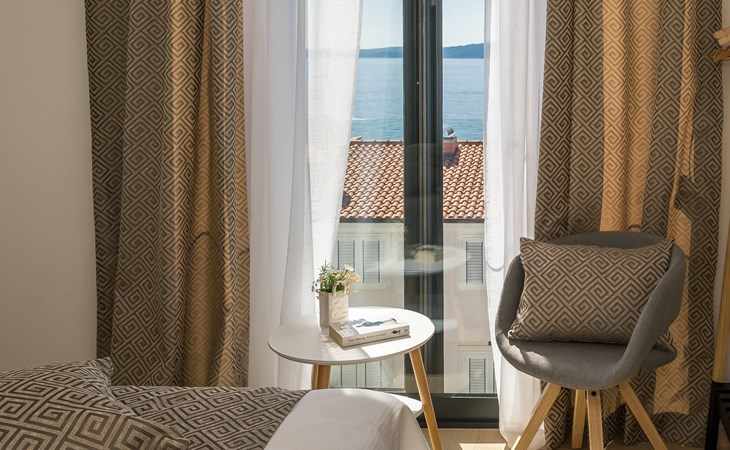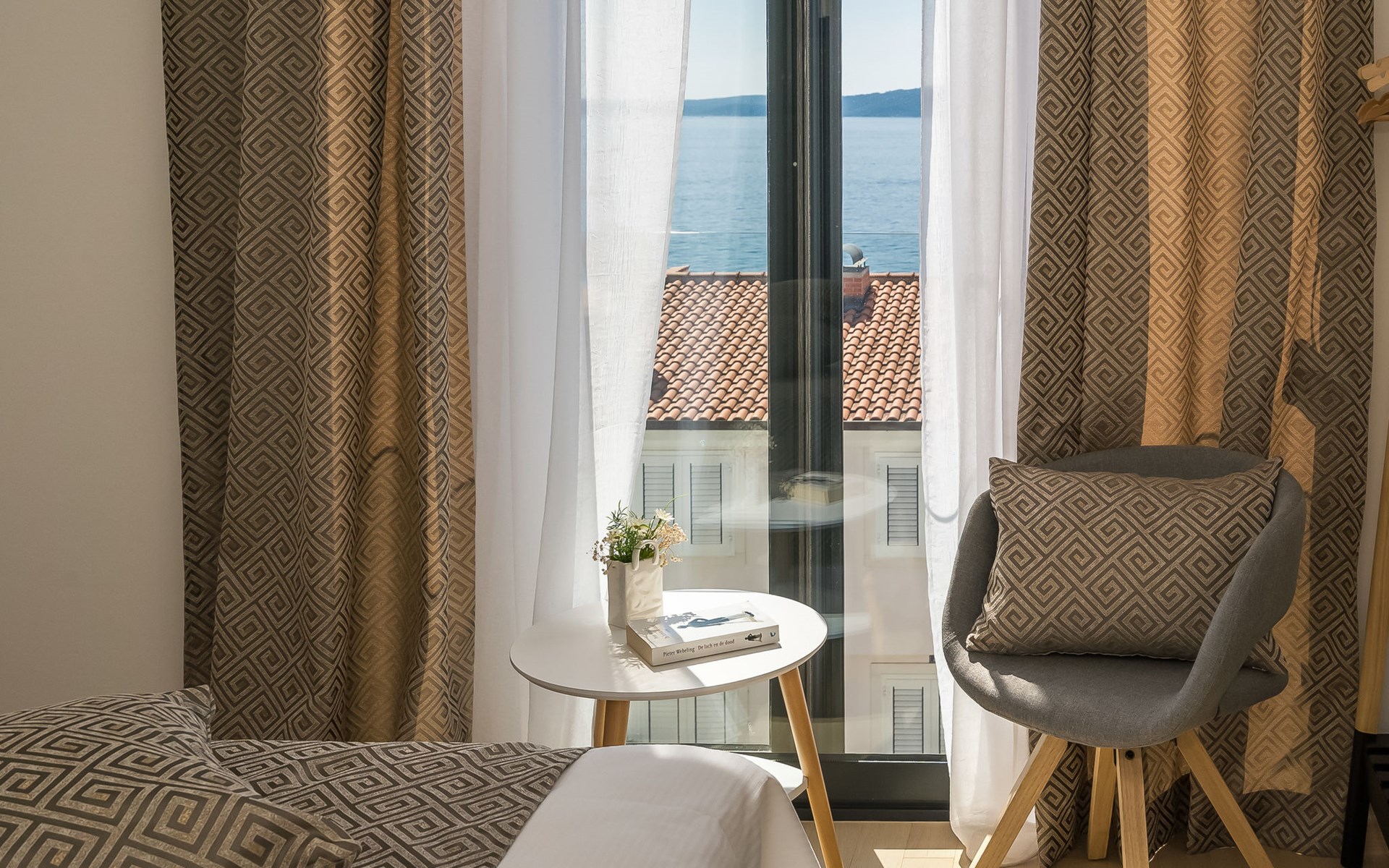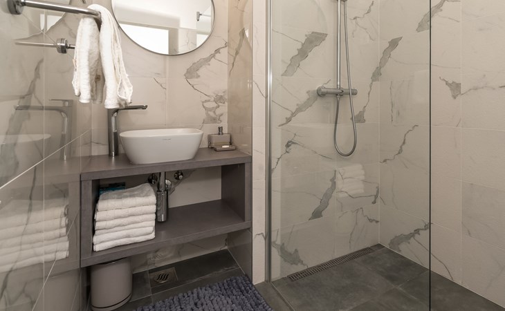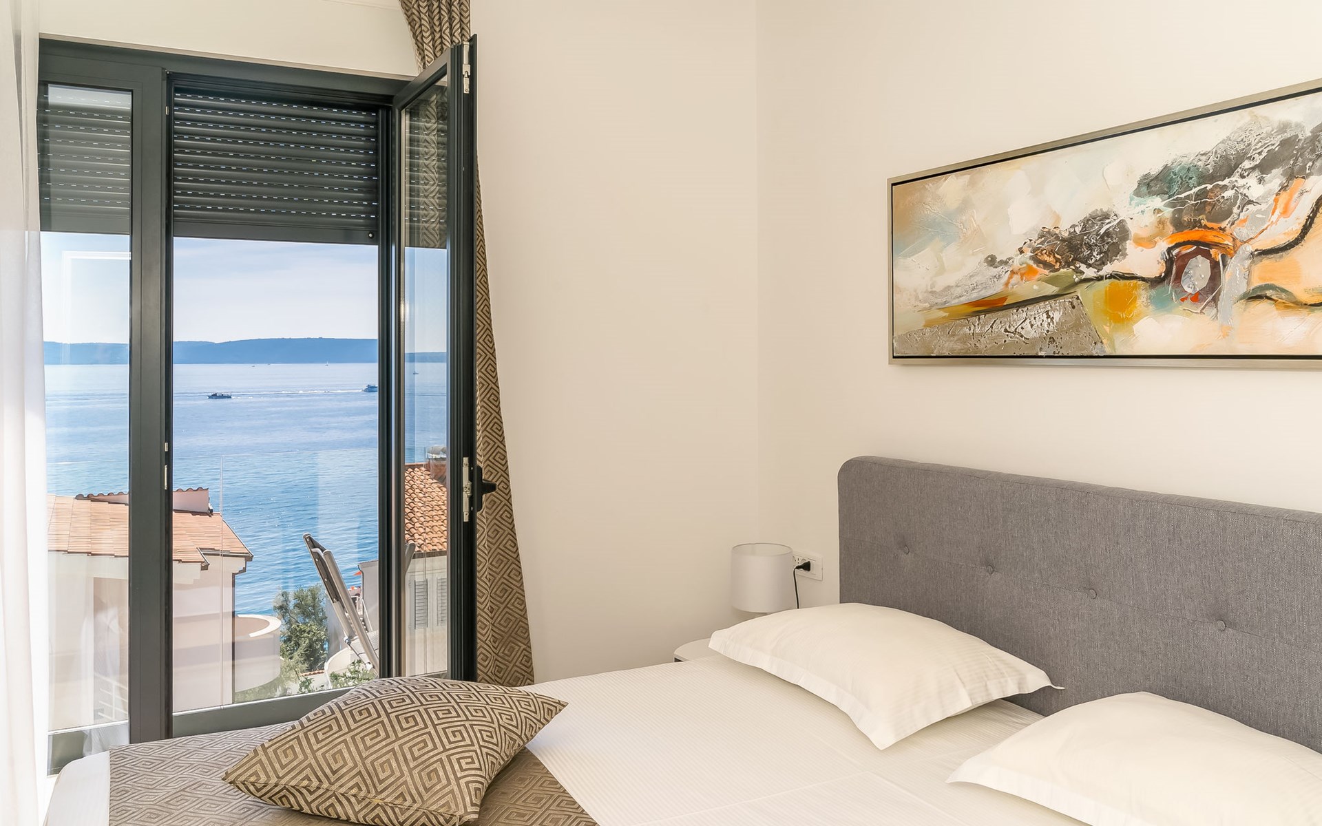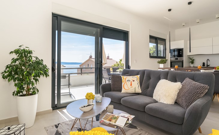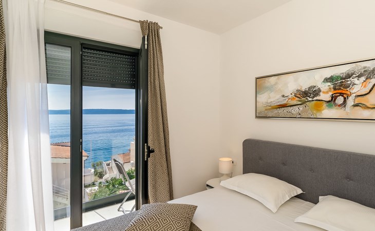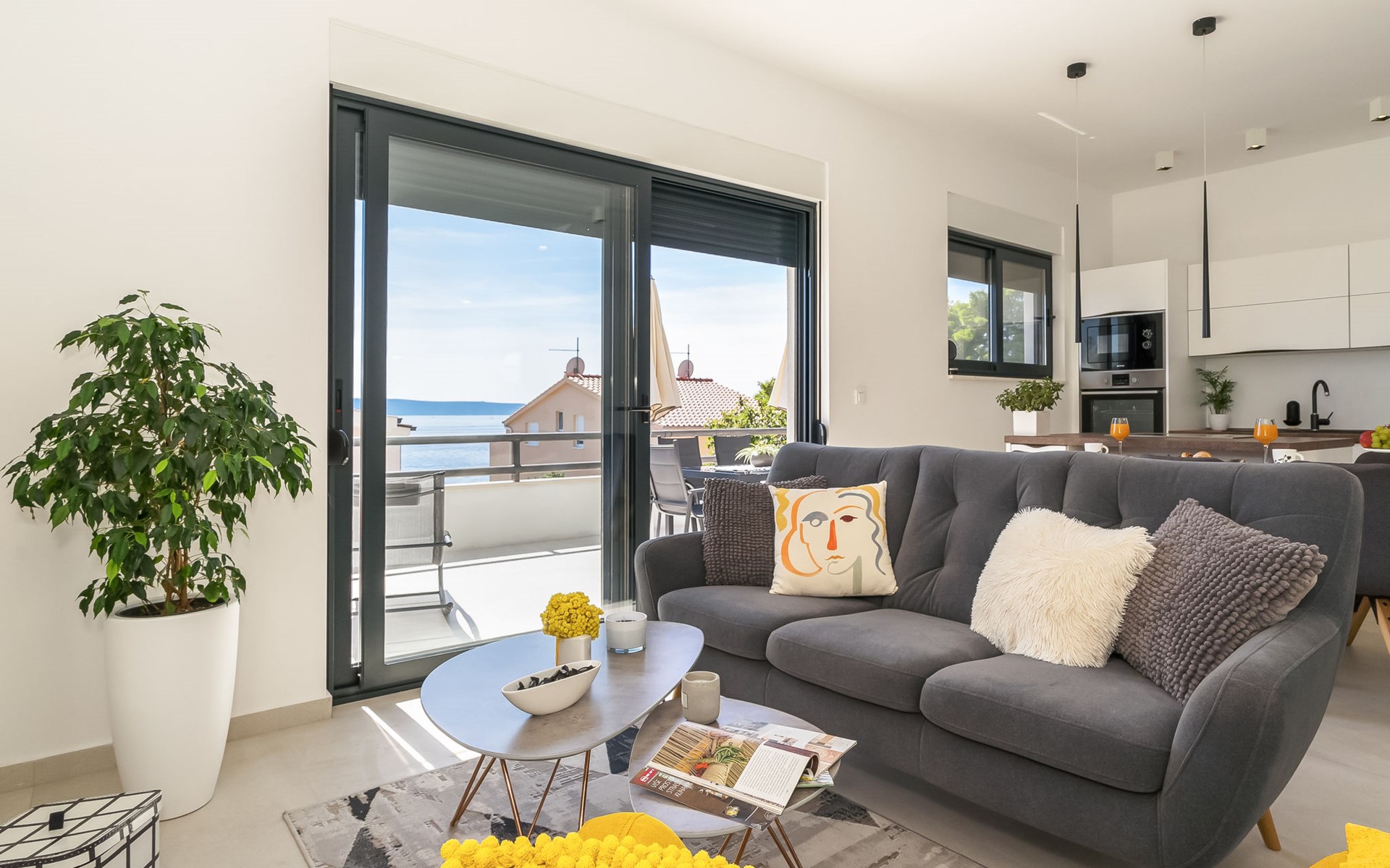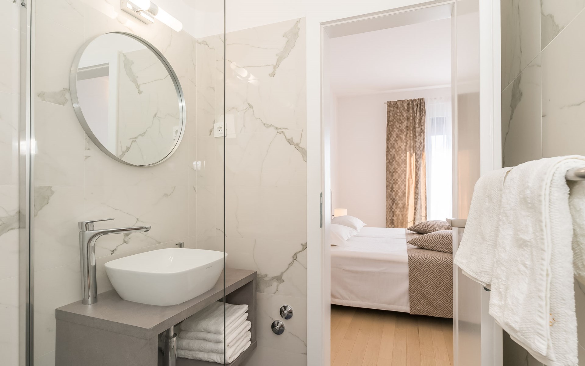 Okrug Gornji (Čiovo) 6 km from Trogir: Open staircase. Semi-detached house "Villa Meri 2", 2 storeys, built in 2019. 1.5 km from the centre of Okrug Gornji, in a quiet, sunny, elevated position, 60 m from the sea, 60 m from the beach. For shared use: swimming pool angular (7 x 4 m, 30 m2, depth 140 cm, seasonal availability: 01.May. - 15.Oct.) with internal staircase. Terrace (60 m2), garden furniture, barbecue. Private: outdoor shower. In the house: internet access, washing machine. Parking (for 2 cars) at the house on the premises. Shop 250 m, restaurant 200 m, bus stop 1.8 km, pebble beach 150 m, rocky beach 60 m. Please note: airfield 6 km from the property. Property ref. HR4910.304 is situated on the same property.