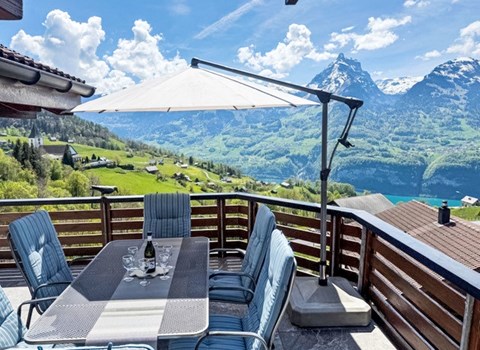 More information by the provider: The four-family house was built in 2011. The house is located on the edge of the village, with a beautiful open view in a quiet and idyllic location. The apartment is on the mezzanine floor with large terrace, garage parking with charging station and children's playground. 10 walking minutes from the train station, 5 walking minutes to the supermarket. In the high season (winter and summer) free local bus. Bus stop "Disentis/Mustér, Cucagna" 0.1 km, railway station "Disentis/Mustér" 0.6 km, ferry "Landungssteg SGV Flüelen" 28.0 km.