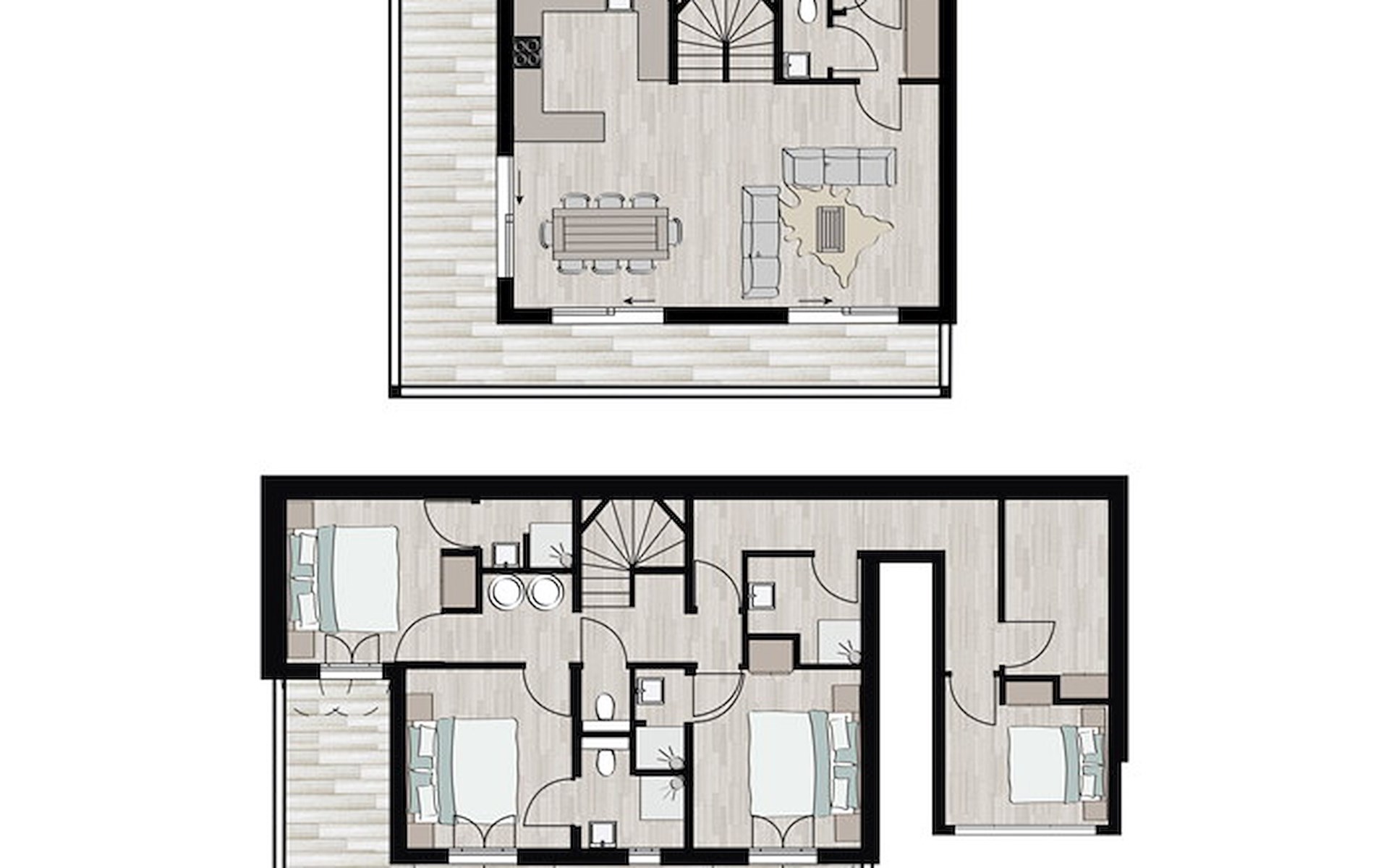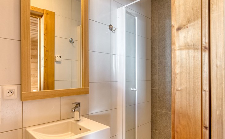 This detached chalet has 5 double bedrooms: 1 bedroom is a twin, 1 bedroom has a bunk bed and 3 bedrooms are doubles. There are also 4 bathrooms with a shower and toilet, including 1 bathroom with a rain shower. The chalet also has a separate toilet.