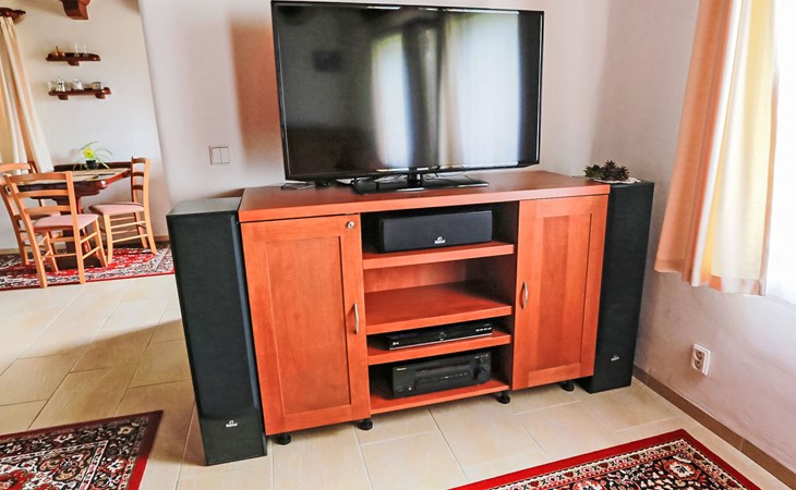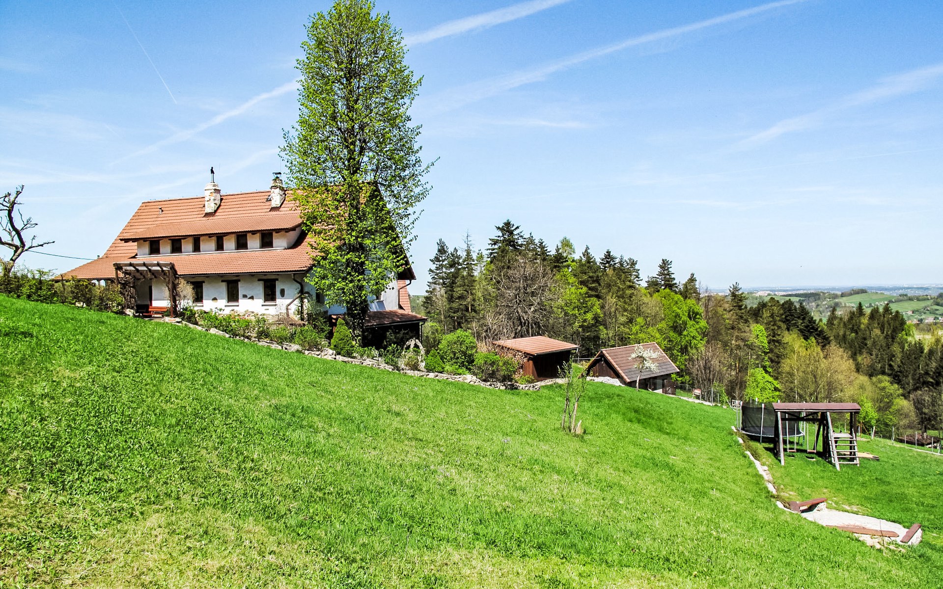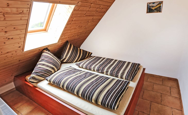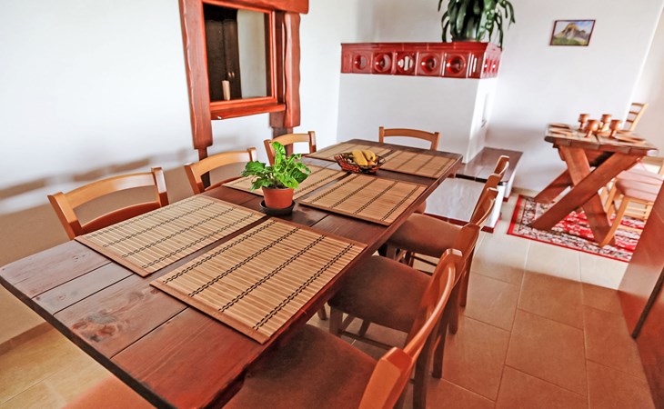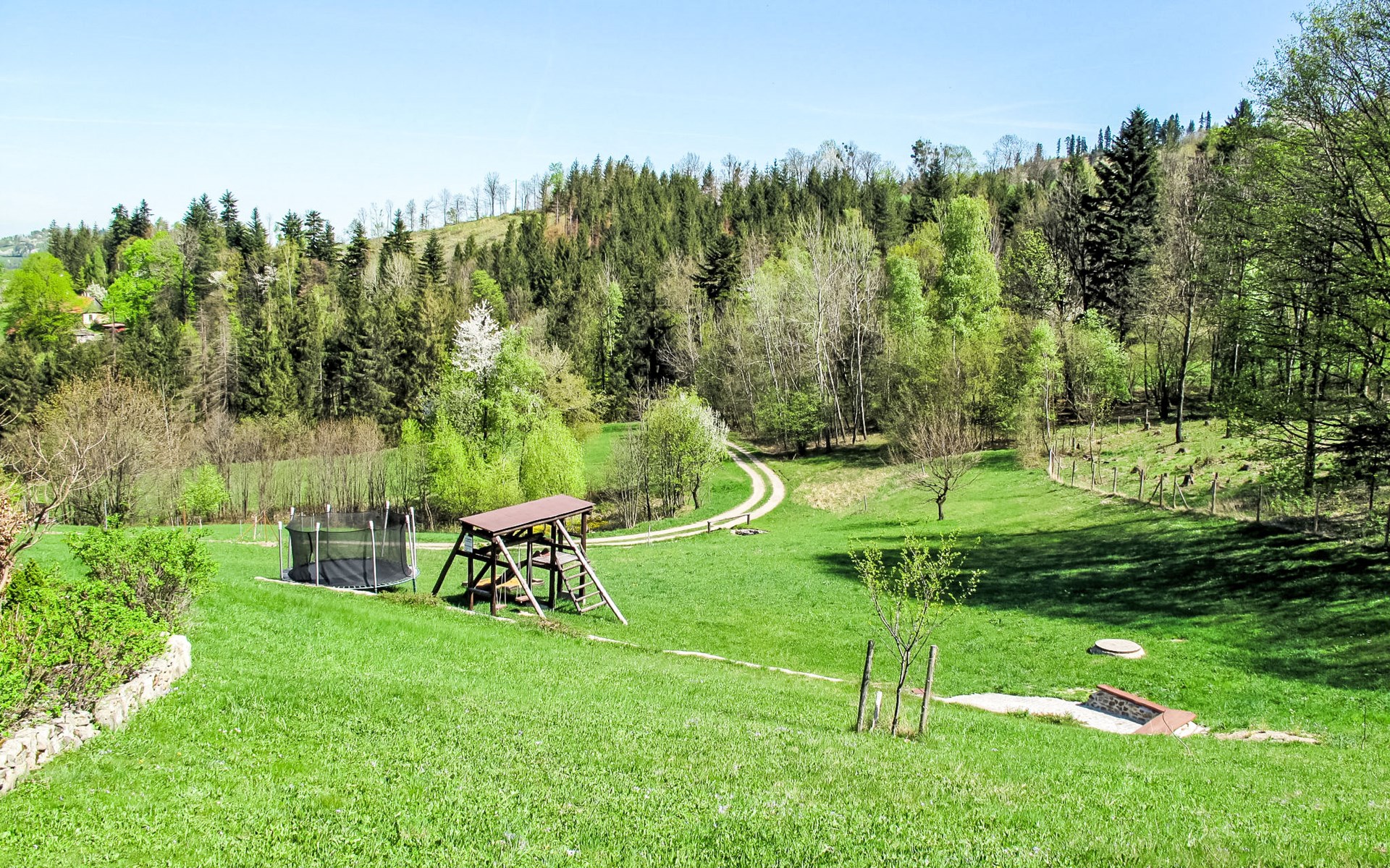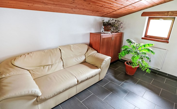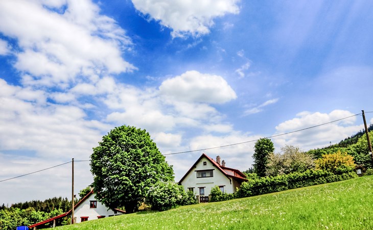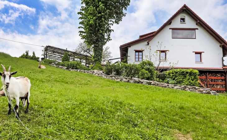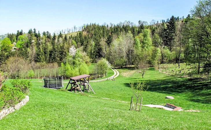 Lhotka 12 km from Ostravice: Large, child friendly, comfortable chalet "Lhotka", built in 1774, renovated in 2015, surrounded by meadows. On the outskirts, in a quiet, sunny position on a slope, 200 m from the edge of the forest. Private: natural state property 12 ha, garden 600 m2, meadow. Terrace, garden furniture, barbecue, children's playground (slide, swing, sandbox). In the house: storage room for bicycles, storage room for skis, central heating system. Steep motor access (via unmade road). In Winter: please take snow chains. Parking (for 4 cars) at the house. Grocery 1.5 km, supermarket 6 km, restaurant 1.6 km, bus stop 1 km, railway station 6 km, outdoor swimming pool 6 km, indoor swimming pool 1.6 km. Golf course (18 hole) 12 km, tennis 6 km, riding stable 4 km, ski lift 5 km, ski school 9 km, cross country ski track 3 km. Nearby attractions: Tatra Kopřivnice Museum 16 km, Skanzen Rožnov pod Radhoštěm 24 km. Please note: car recommended. Suitable for families.