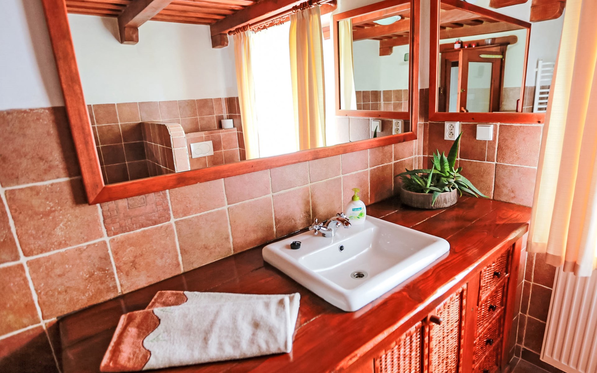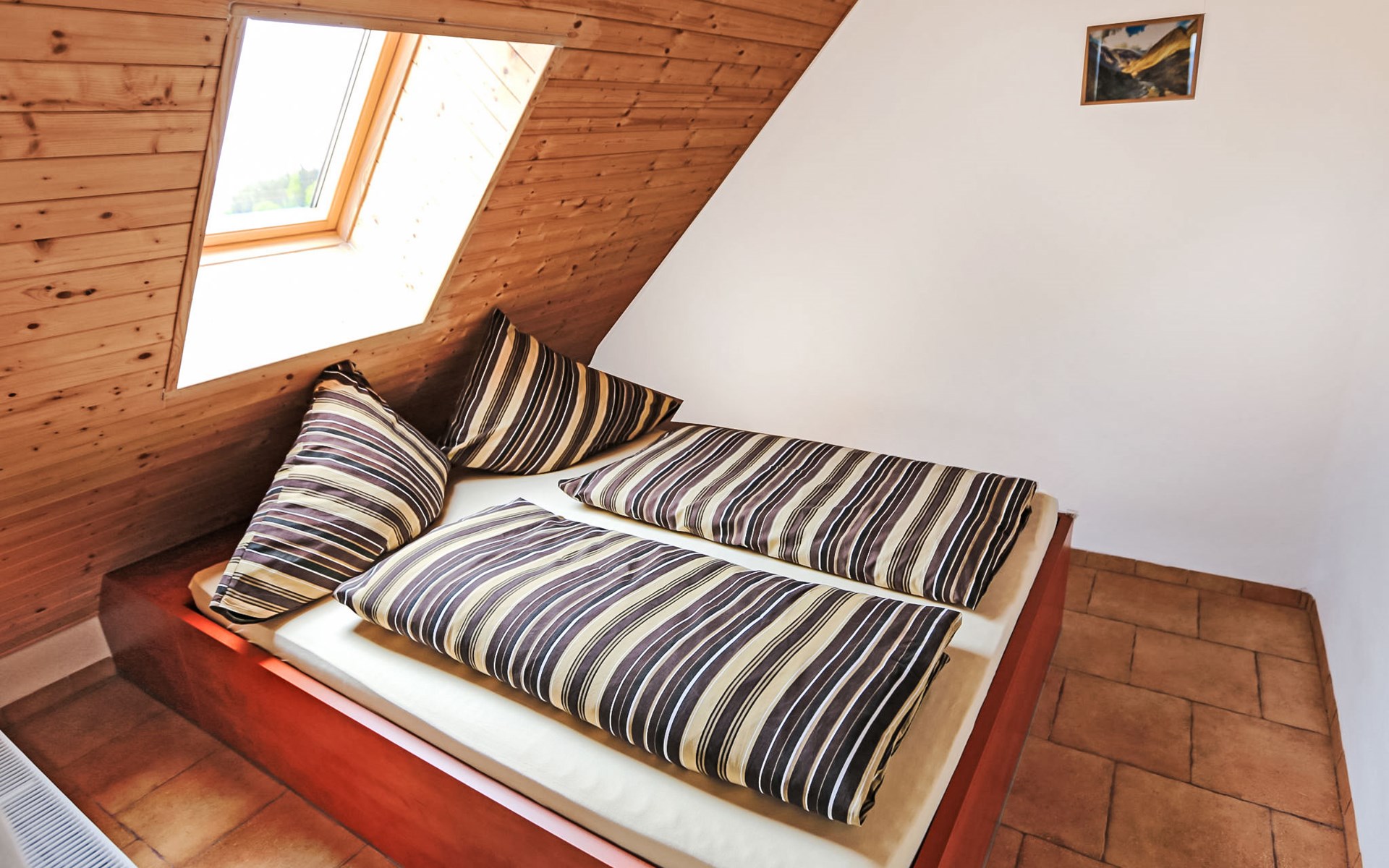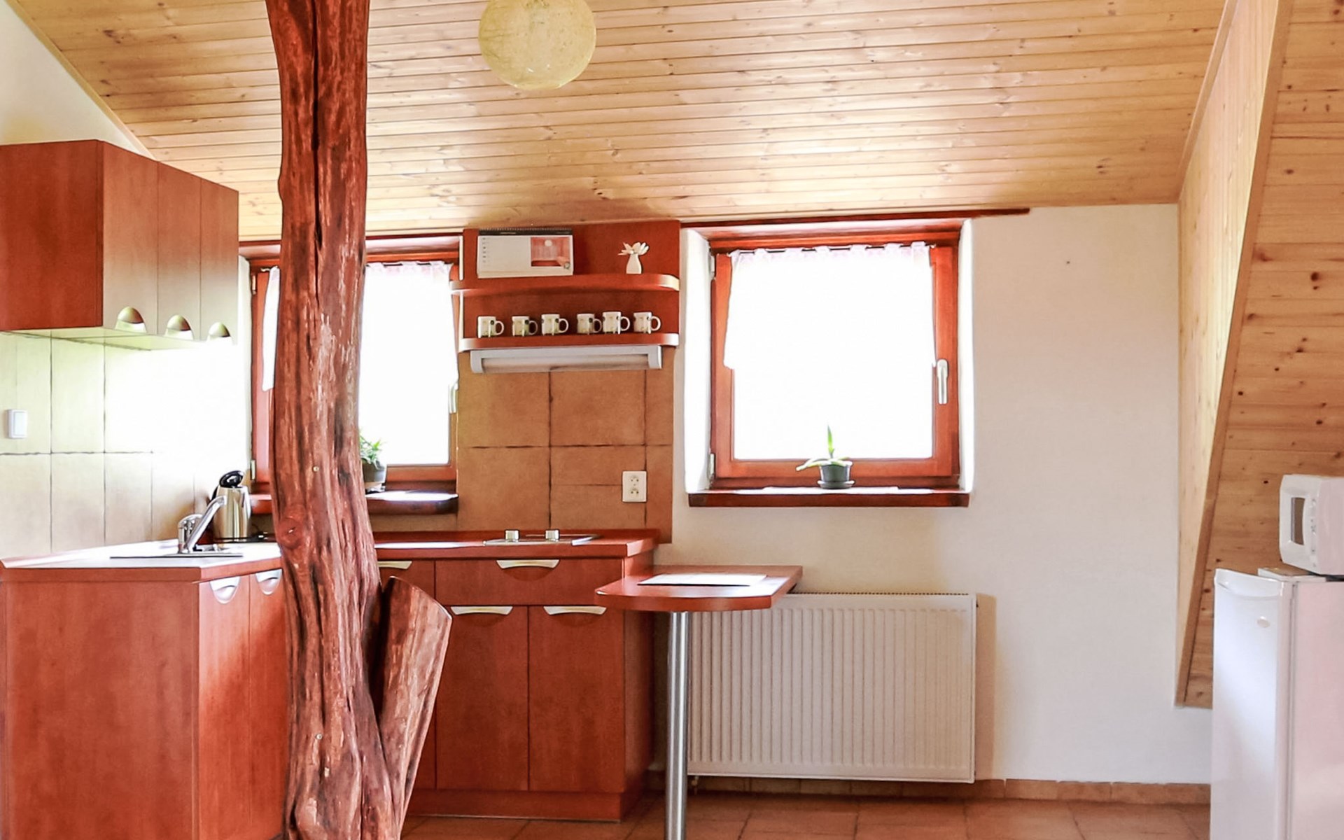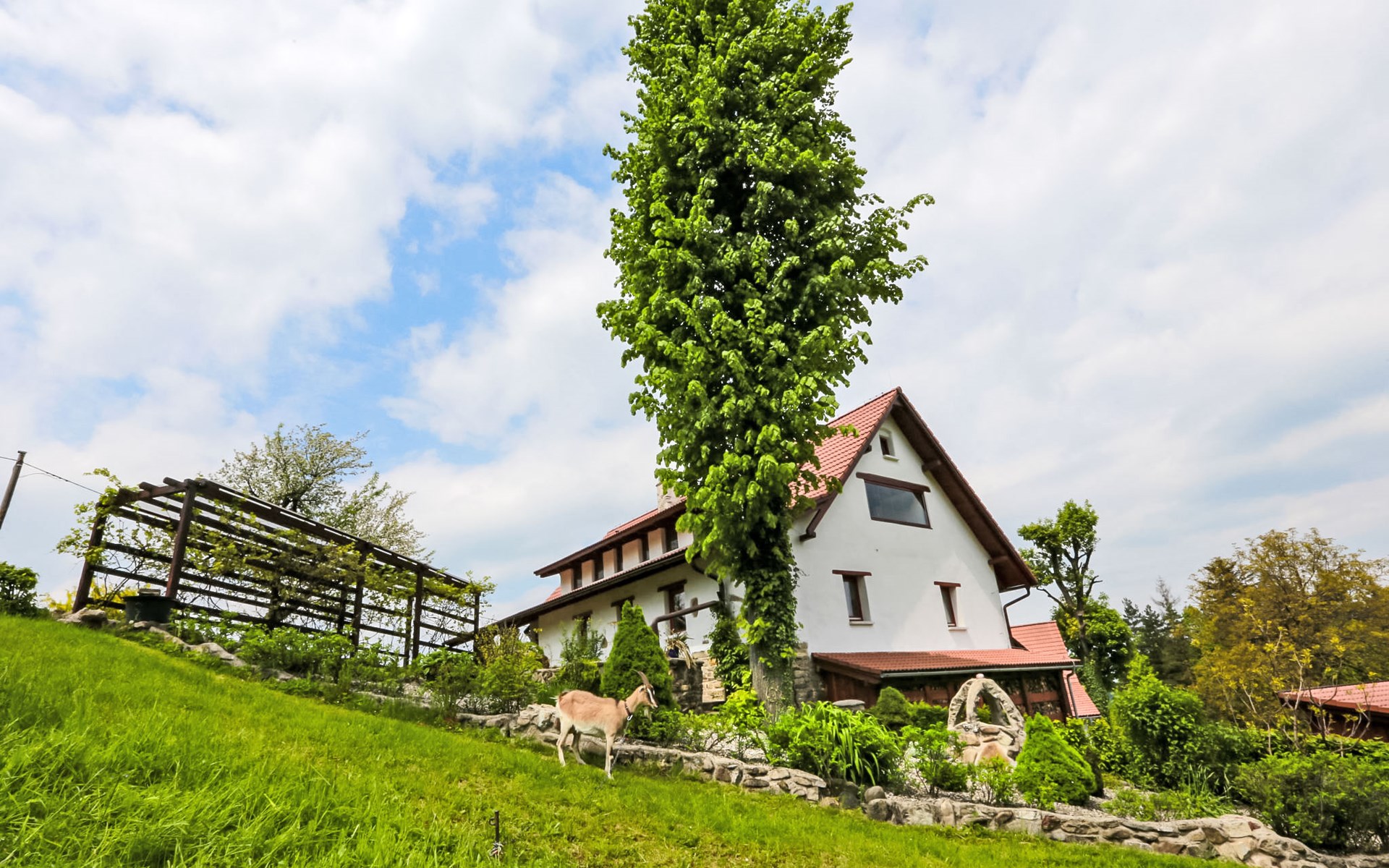 Lhotka 12 km from Ostravice: Large, child friendly, comfortable chalet "Lhotka", built in 1774, renovated in 2015, surrounded by meadows. On the outskirts, in a quiet, sunny position on a slope, 200 m from the edge of the forest. Private: natural state property 12 ha, garden 600 m2, meadow. Terrace, garden furniture, barbecue, children's playground (slide, swing, sandbox). In the house: storage room for bicycles, storage room for skis, central heating system. Steep motor access (via unmade road). In Winter: please take snow chains. Parking (for 4 cars) at the house. Grocery 1.5 km, supermarket 6 km, restaurant 1.6 km, bus stop 1 km, railway station 6 km, outdoor swimming pool 6 km, indoor swimming pool 1.6 km. Golf course (18 hole) 12 km, tennis 6 km, riding stable 4 km, ski lift 5 km, ski school 9 km, cross country ski track 3 km. Nearby attractions: Tatra Kopřivnice Museum 16 km, Skanzen Rožnov pod Radhoštěm 24 km. Please note: car recommended. Suitable for families.