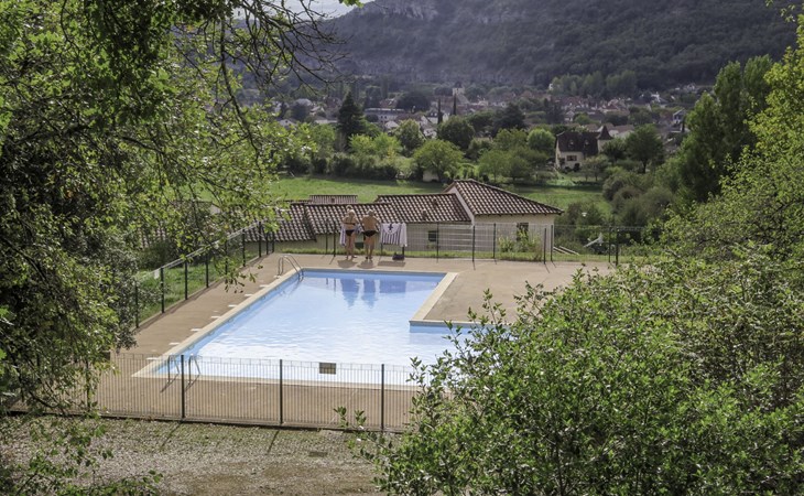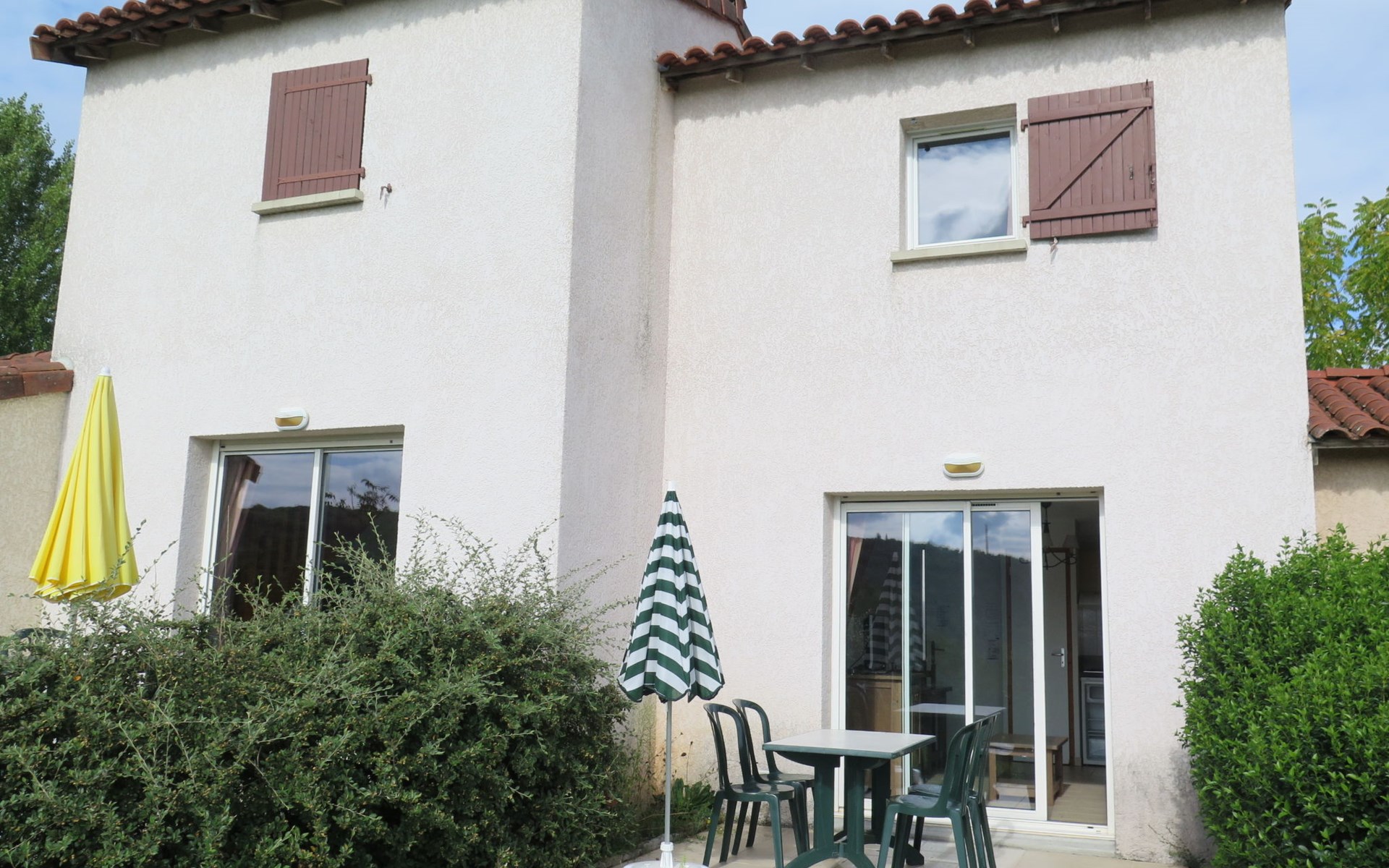 Resort "Domaine des Cazelles", 2 storeys. 100 houses in the residence. 1 km from the centre of Cajarc, on the outskirts, 25 km from the centre of Figeac, 50 km from the centre of Cahors, 2.5 km from the lake. For shared use: terraced garden with trees, natural garden, meadow, swimming pool heated (15 x 8 m, seasonal availability: 01.Jun. - 30.Sep.). Table tennis, boccia, barbecue, pool maintenance by the owner/gardener. In the complex: reception, lounge, storage room for bicycles, washing machine, tumble dryer (for shared use, extra). Bread roll service. Parking at 70 m. Grocery 1 km, supermarket 1 km, restaurant 1 km, bakery 1 km. Nearby attractions: Rocamadour 55 km, Villefranche-de-Rouergue 30 km, Gouffre de Padirac 60 km, St Cirq Lapopie 20 km. Hiking paths: Chemin de St. Jacques de Compostelle 2 km. Please note: car-free holiday complex. The photograph shows a typical example.