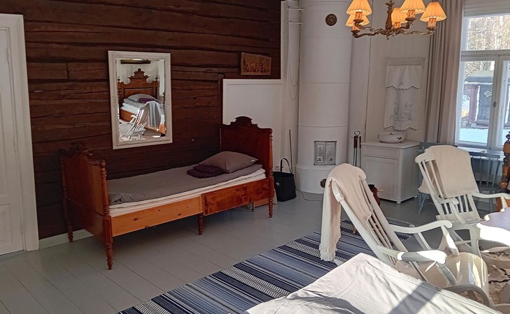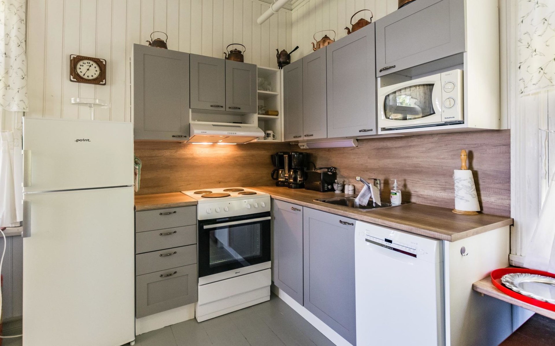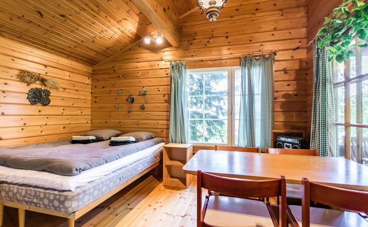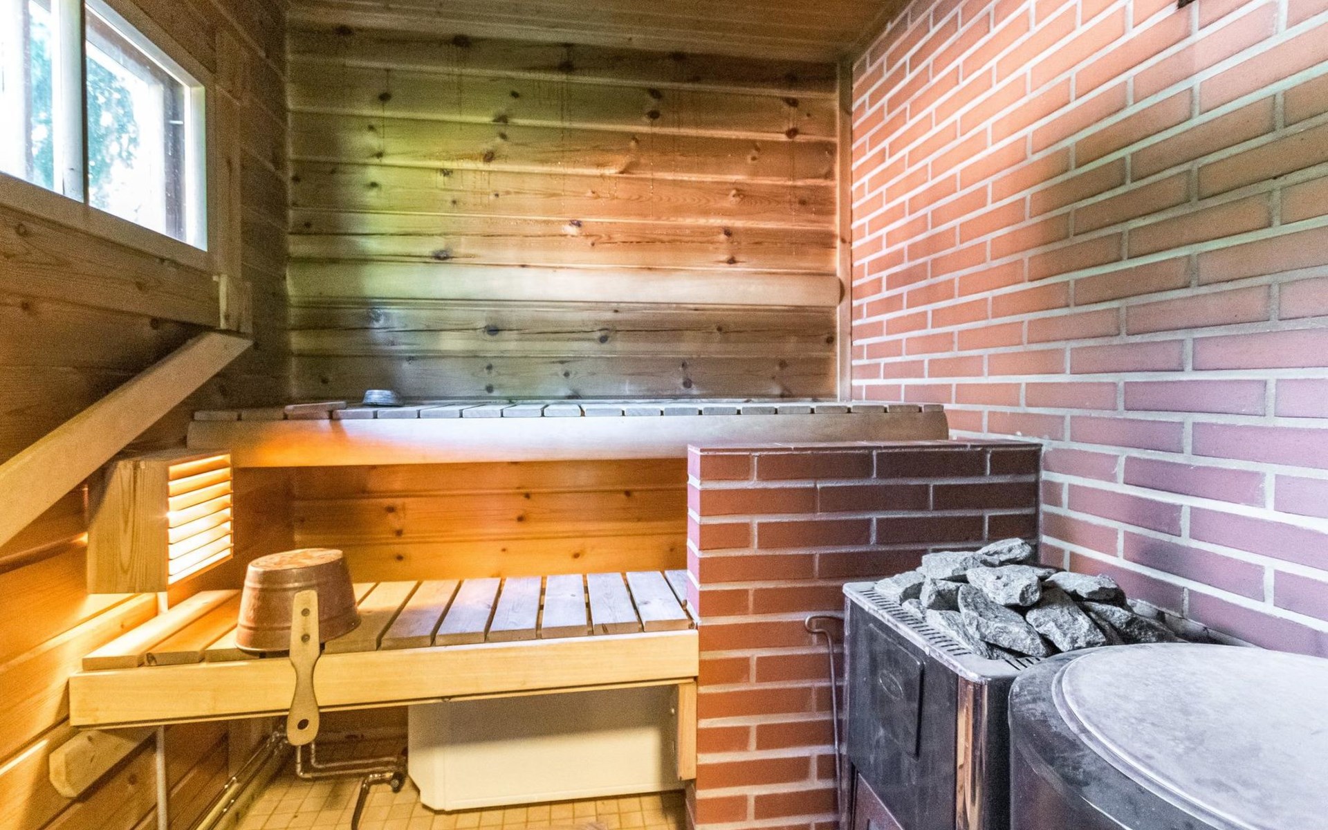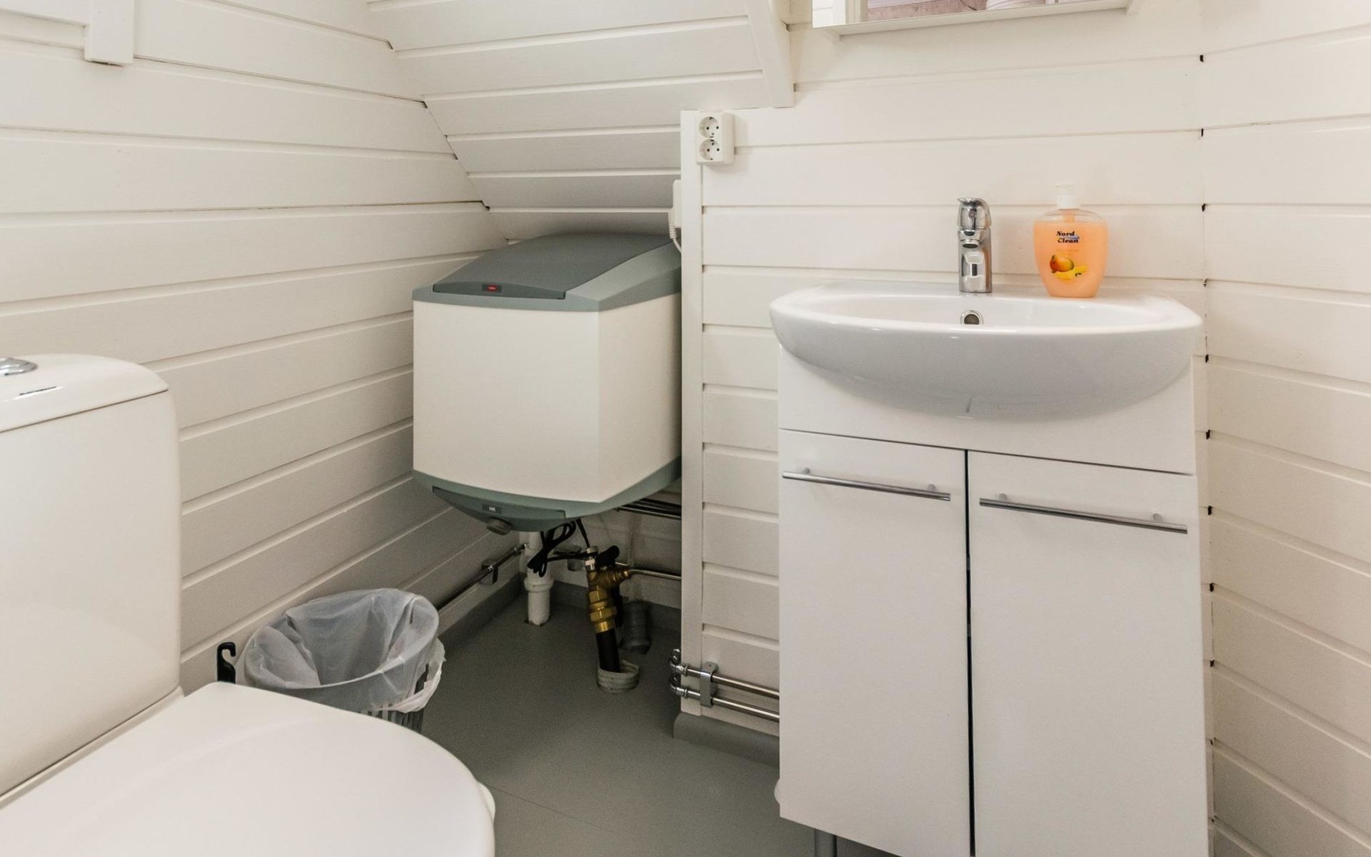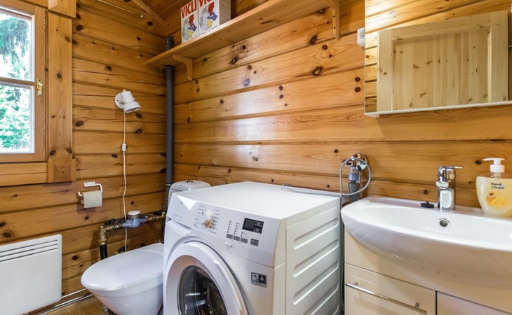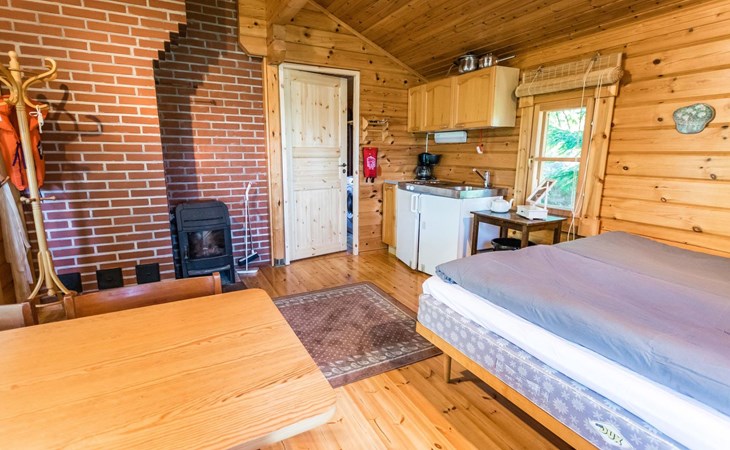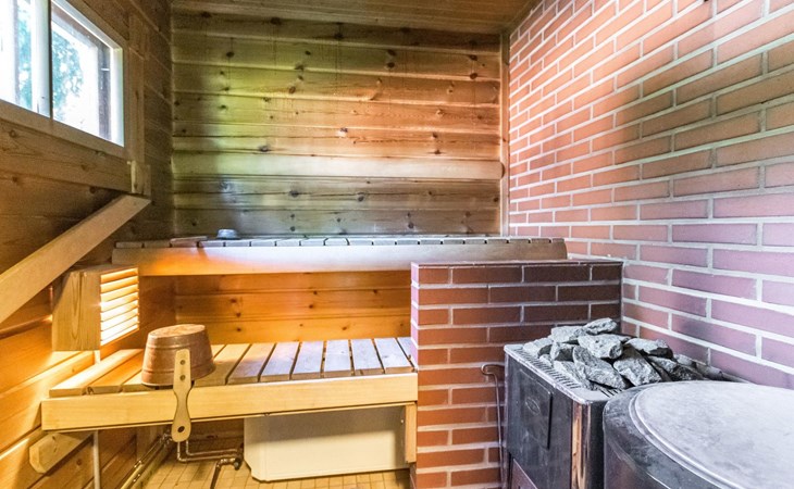 The sauna cabin has kitchenette, double bed and separate WC. Own entrance to the sauna. Shower cubicle in the washroom.