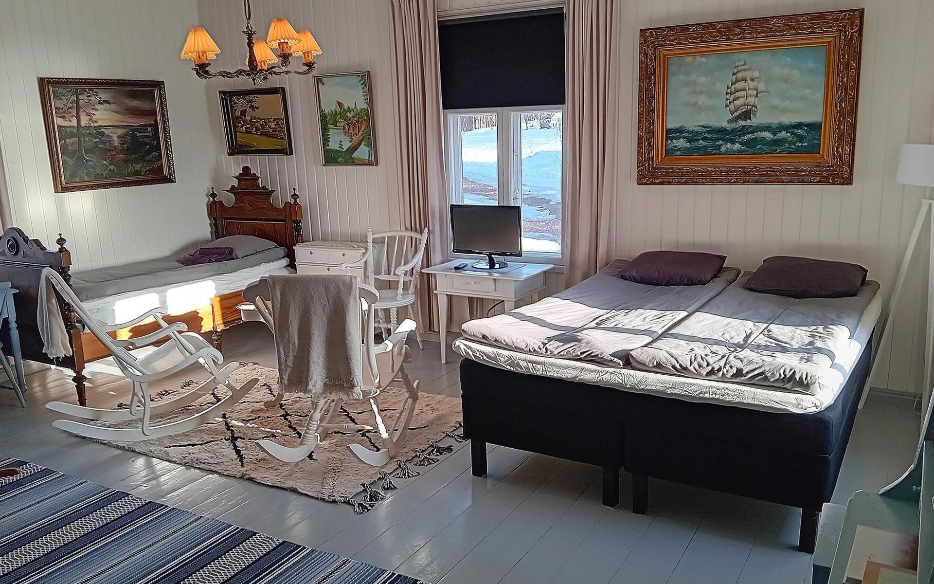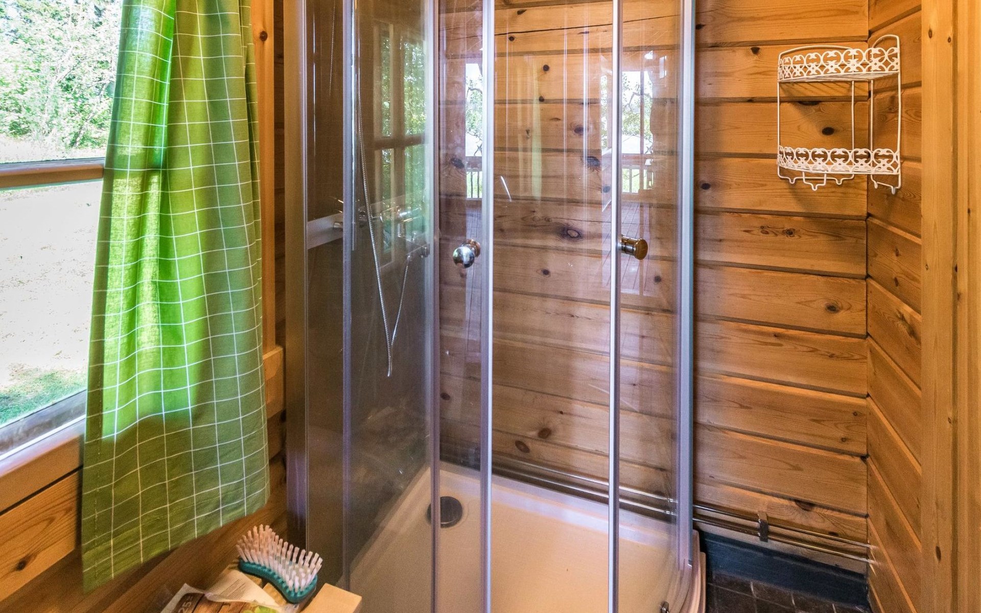 The cabin has living room/kitchen, air source heat pump, large bedroom with double bed and two separate beds, separate WC.