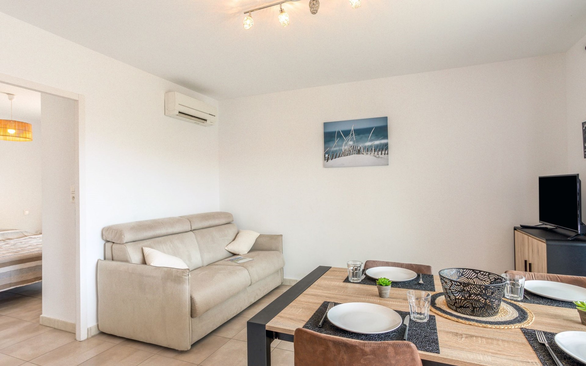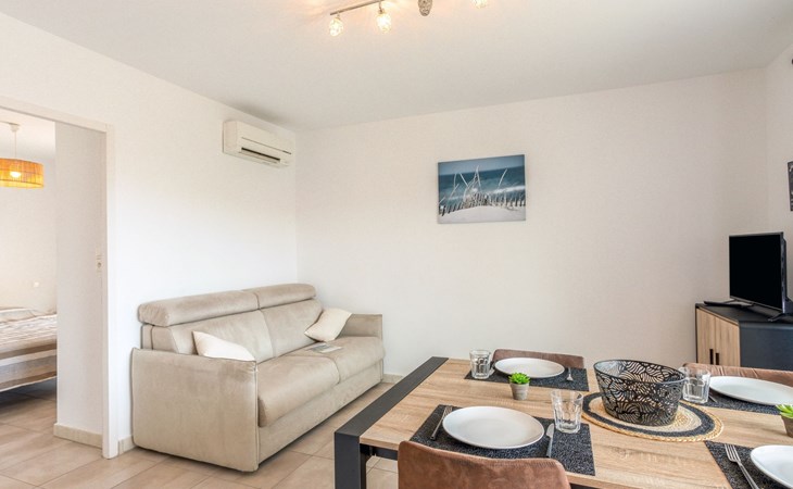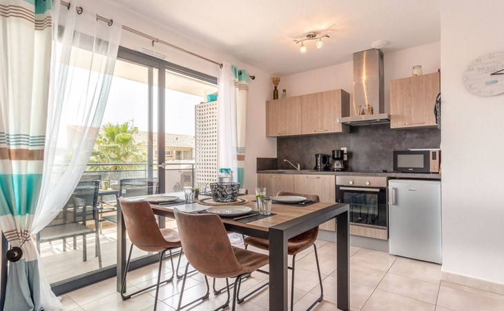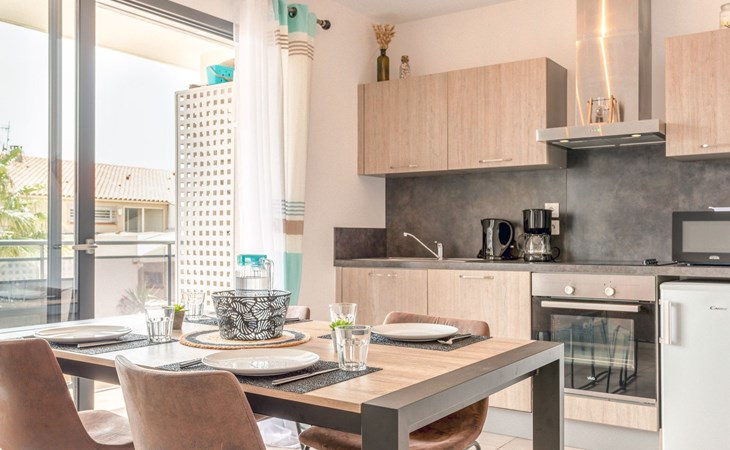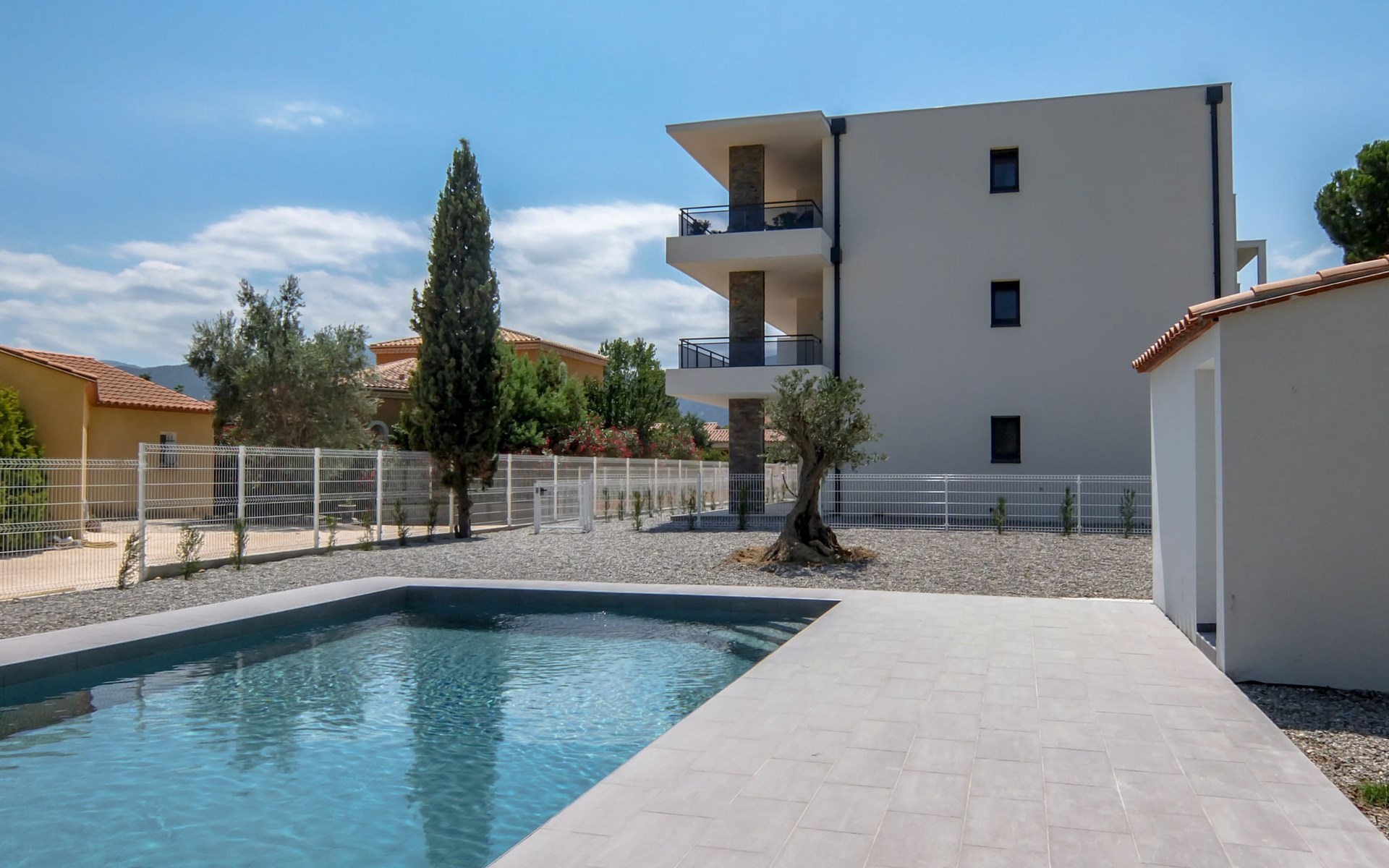 Small residence "Le Clos des Alberes", 2 storeys, built in 2017. 16 apartments in the residence. 4 km from the sea, 4 km from the beach. For shared use: swimming pool angular (9 x 5 m, depth 150 - 150 cm, seasonal availability: 01.Jun. - 30.Sep.). In the complex: lift, storage room for bicycles. Grocery 400 m, shopping centre 1 km, restaurant 1 km, bus stop 550 m, railway station "Argelès sur Mer" 5 km, sandy beach 4 km, diving center 5 km. Sports harbour 6.5 km, golf course (27 hole) 13 km, riding stable 2.5 km. Nearby attractions: Aqualand Saint-Cyprien 6.5 km. The keys‘ handover takes place by the agency Interhome in Saint-Cyprien, 10 km.