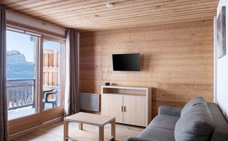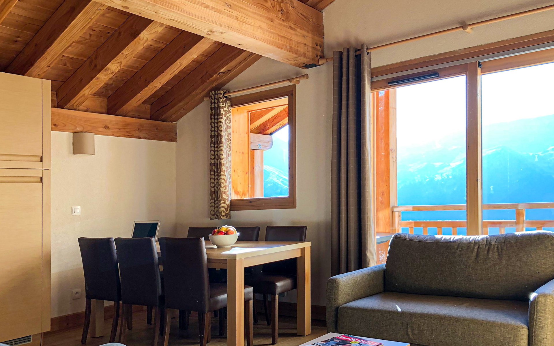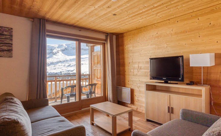 Apartment Marvel (T4) with 4 rooms can accommodate up to 8 people, with beautiful mountain views can be found in the charming ski resort of Flaine. The apartment has 3 bedrooms and 2 bathrooms, providing guests with a usable area of approximately 66m2.