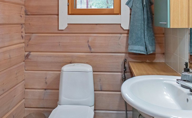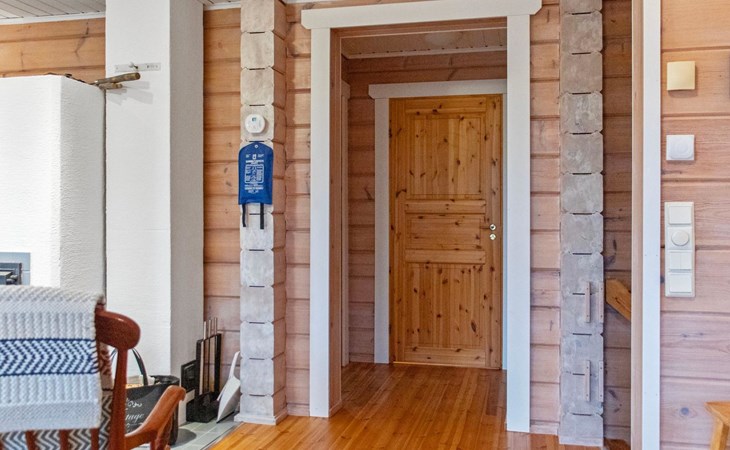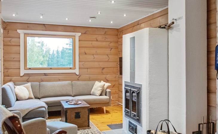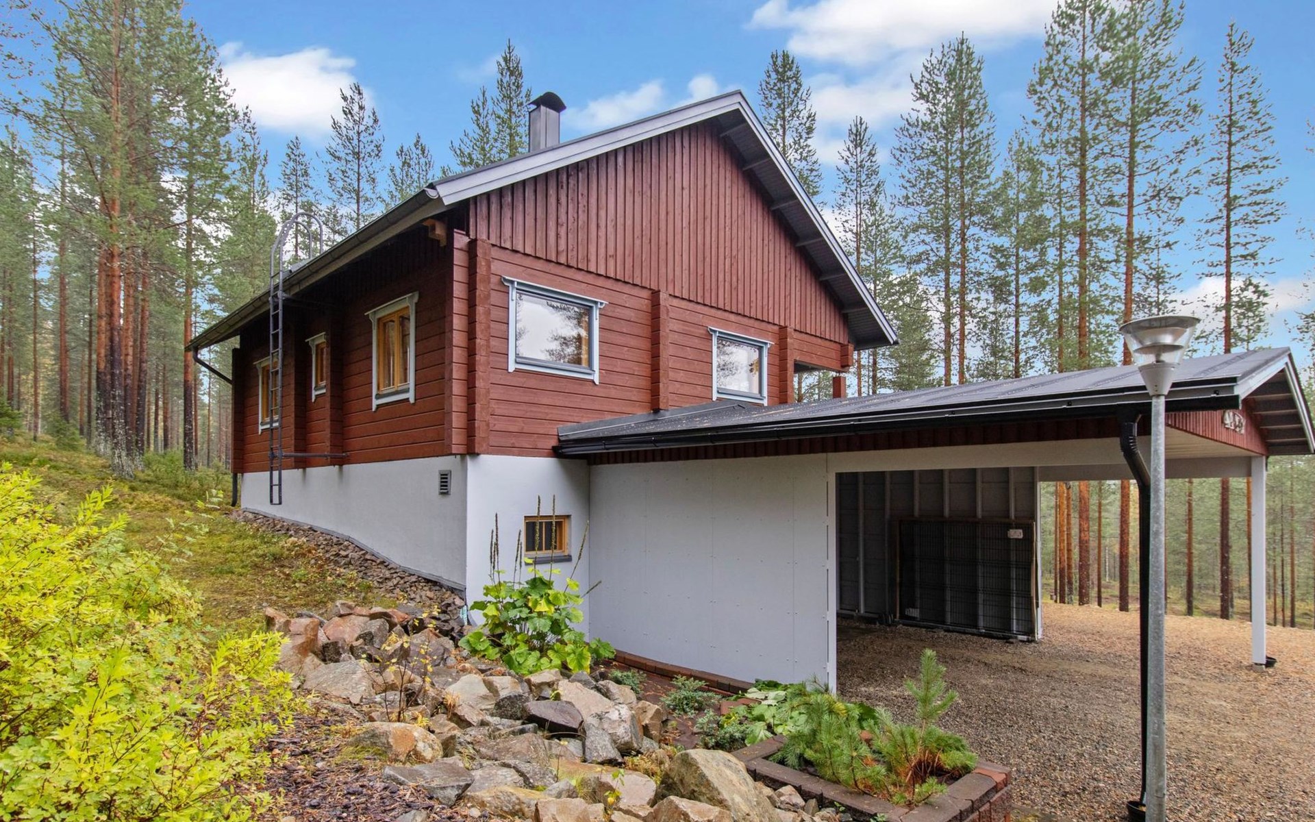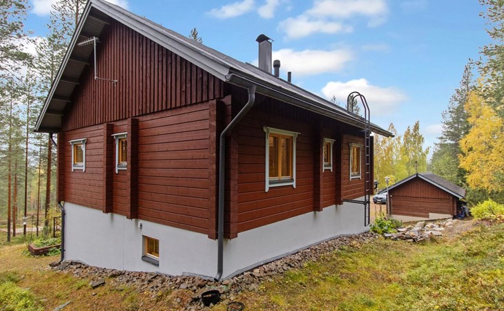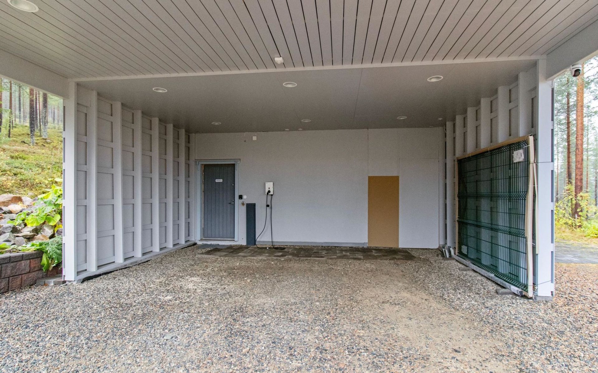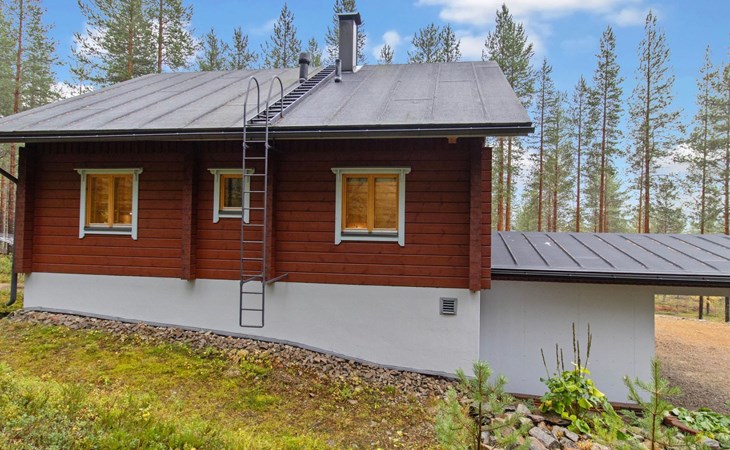 The 2007 built 102 m² cabin features a living room/kitchen, 3 bedrooms, a sleeping alcove, a washroom with a WC, a sauna, utility room, a separate WC, as well as upper and lower terraces. The sauna is equipped with a ready-to-use electric stove. Additionally, there is a woodshed and a carport for two cars, along with an electric car charging point.
