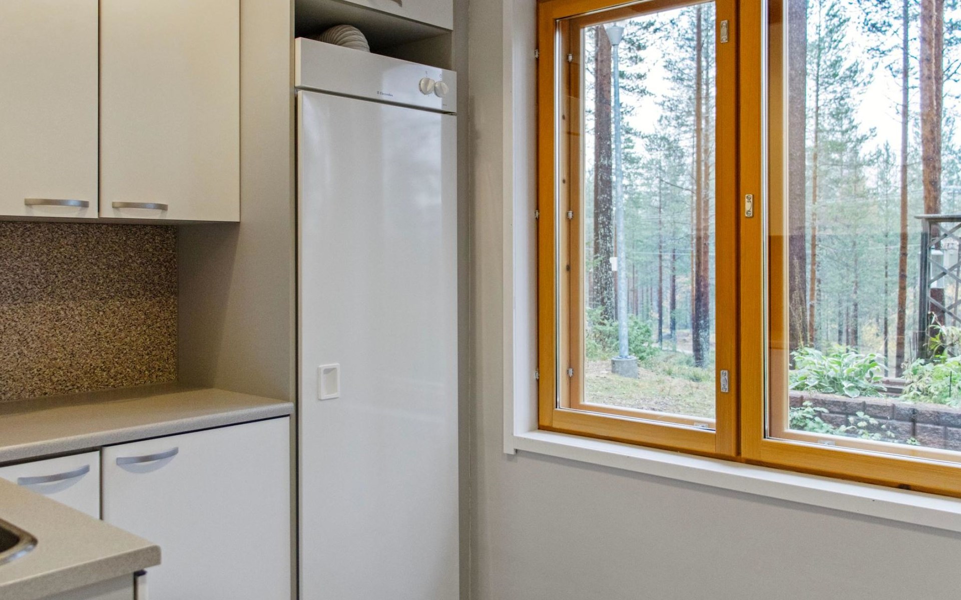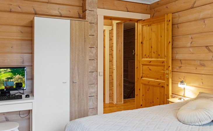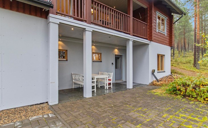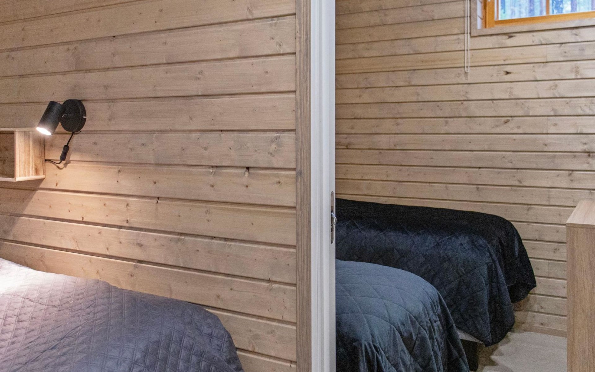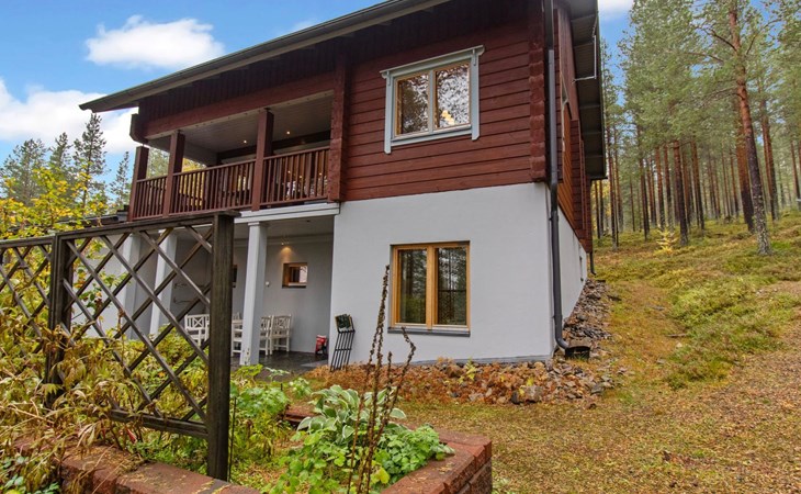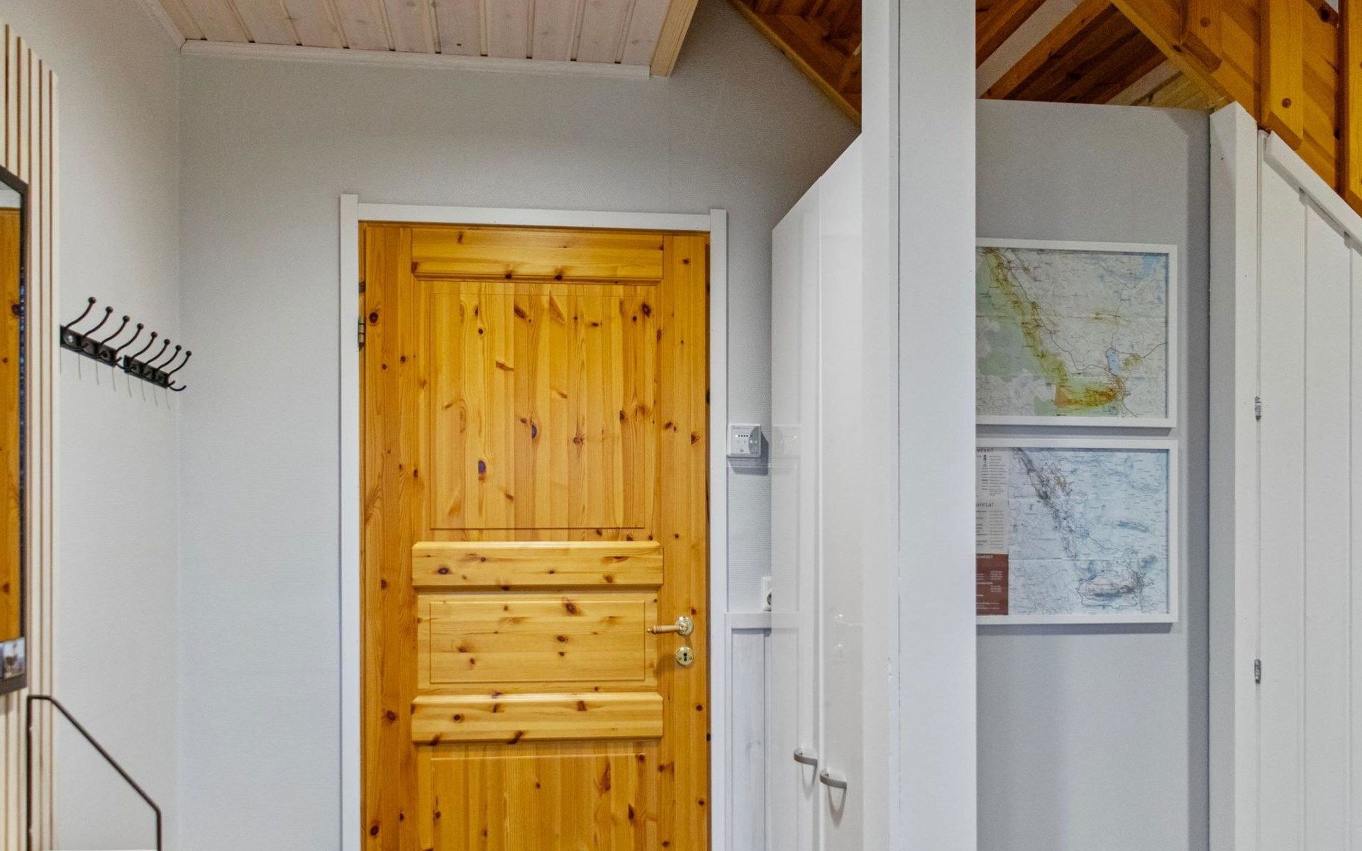 The 2007 built 102 m² cabin features a living room/kitchen, 3 bedrooms, a sleeping alcove, a washroom with a WC, a sauna, utility room, a separate WC, as well as upper and lower terraces. The sauna is equipped with a ready-to-use electric stove. Additionally, there is a woodshed and a carport for two cars, along with an electric car charging point.