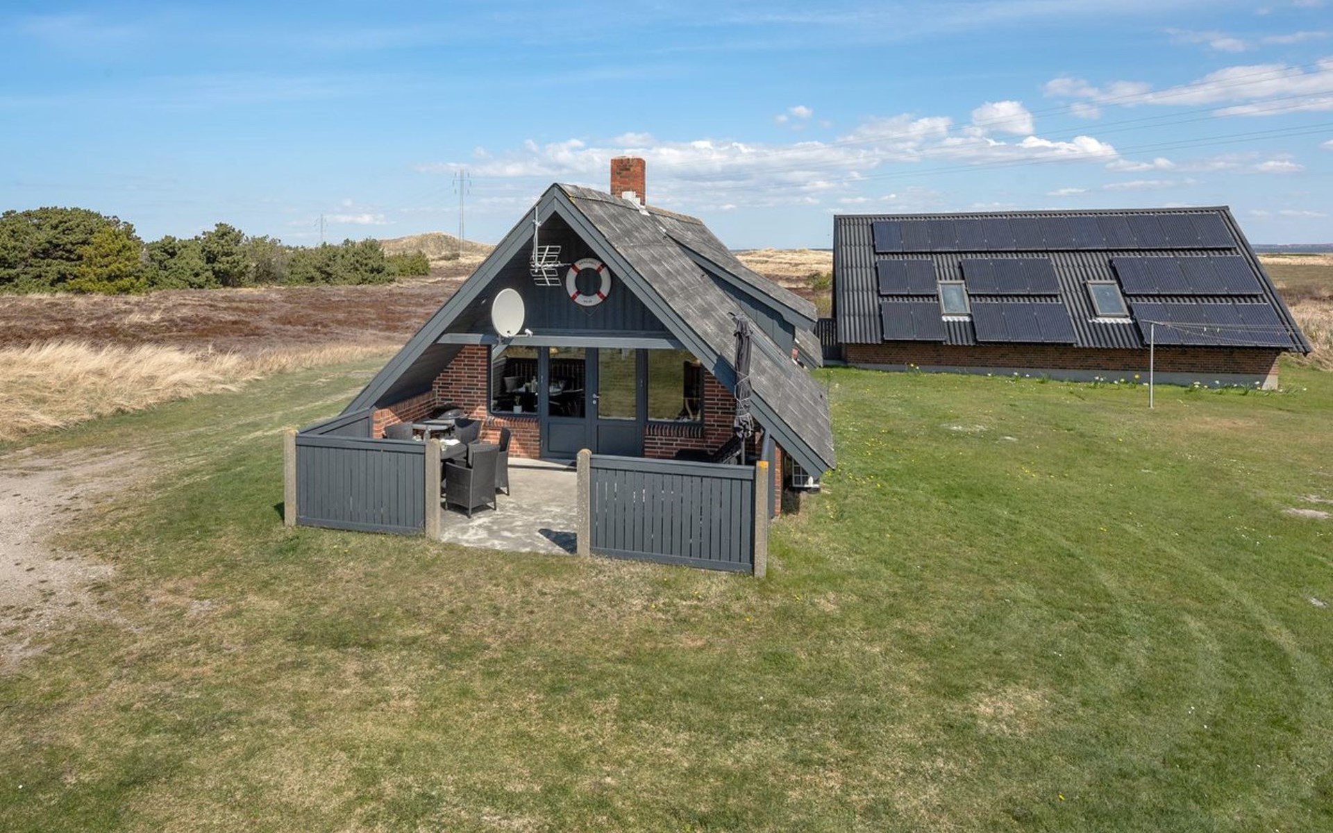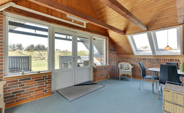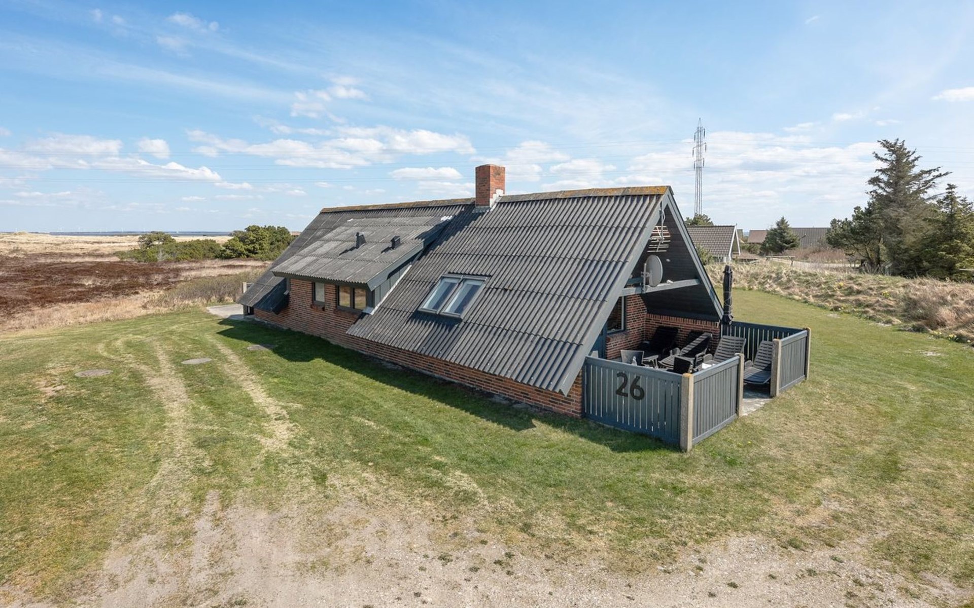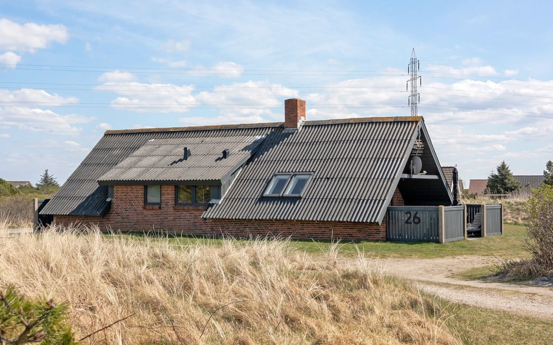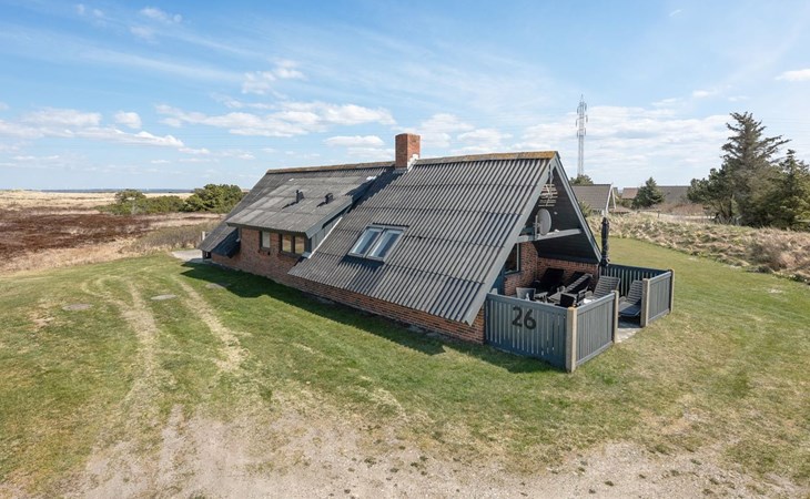 Single-family house, built in 1981. 800 m from the sea. Private: natural state property 2'000 m2. Terrace (15 m2), children's playground (swing). In the house: sauna, washing machine. Parking at the house. E-charging station. Grocery 5.5 km. Golf course 6 km. The owner does not accept any youth groups.