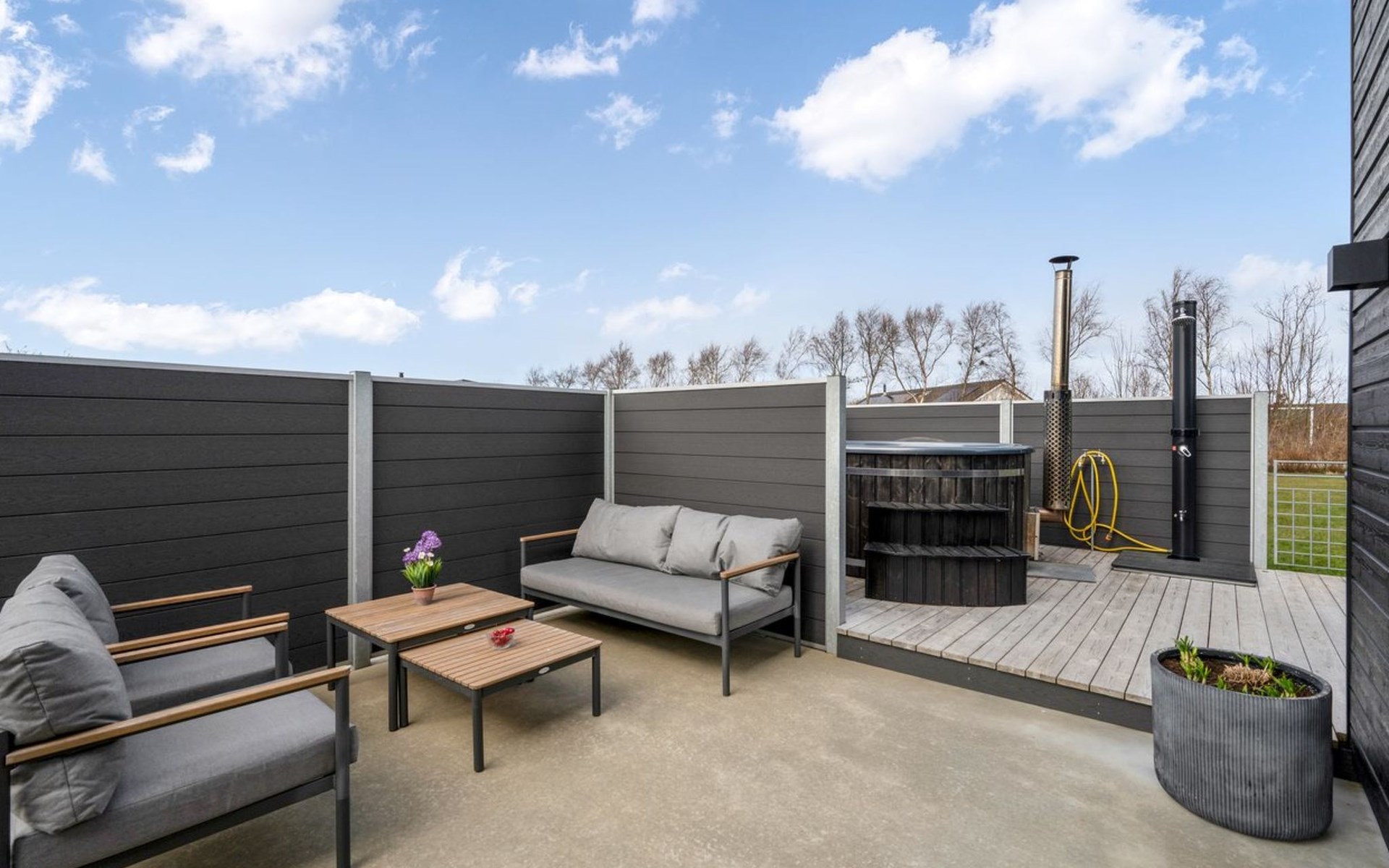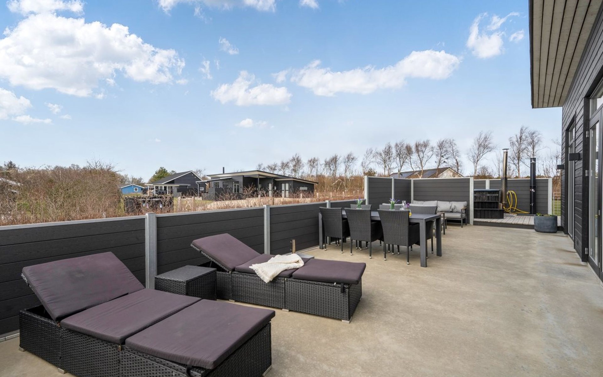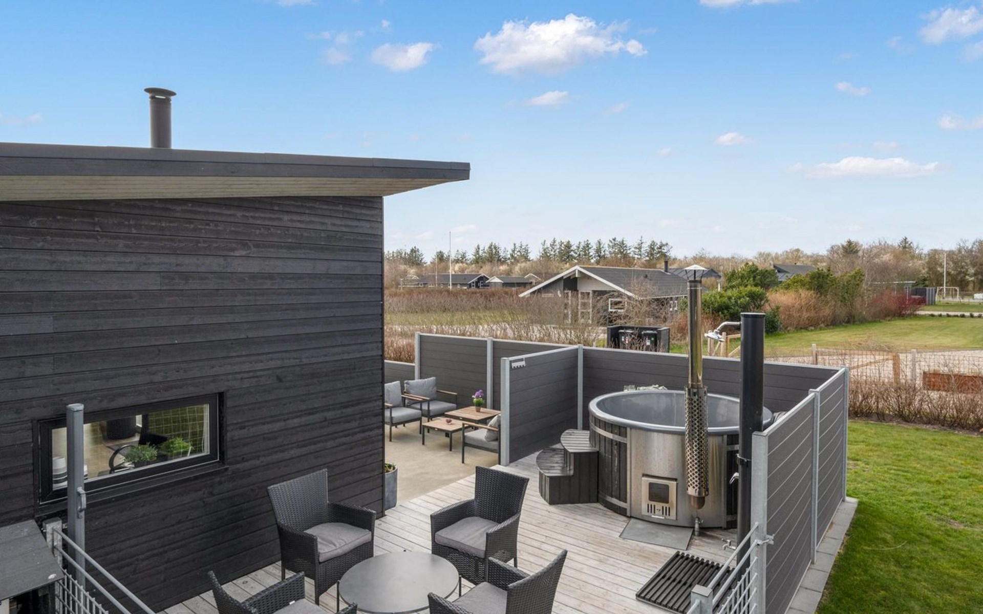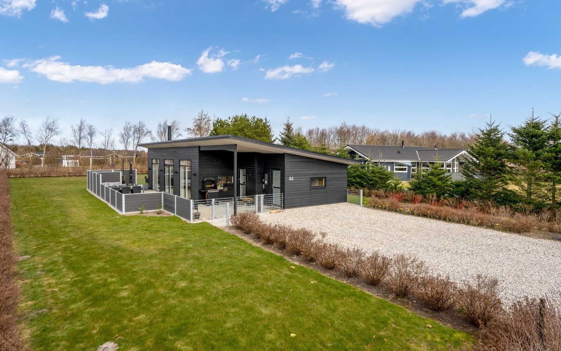 Single-family house, built in 2020. For shared use: garden. Private: natural state property 1'202 m2, garden (fenced). Outdoor shower, terrace (50 m2). In the house: washing machine, tumble dryer. Parking at the house. Grocery 1.1 km. The owner does not accept any youth groups.