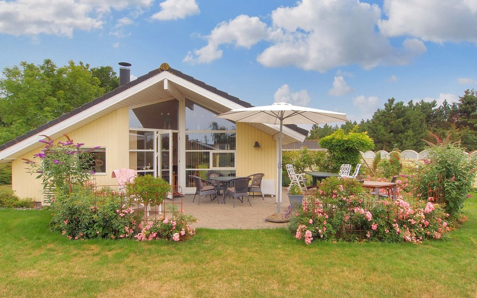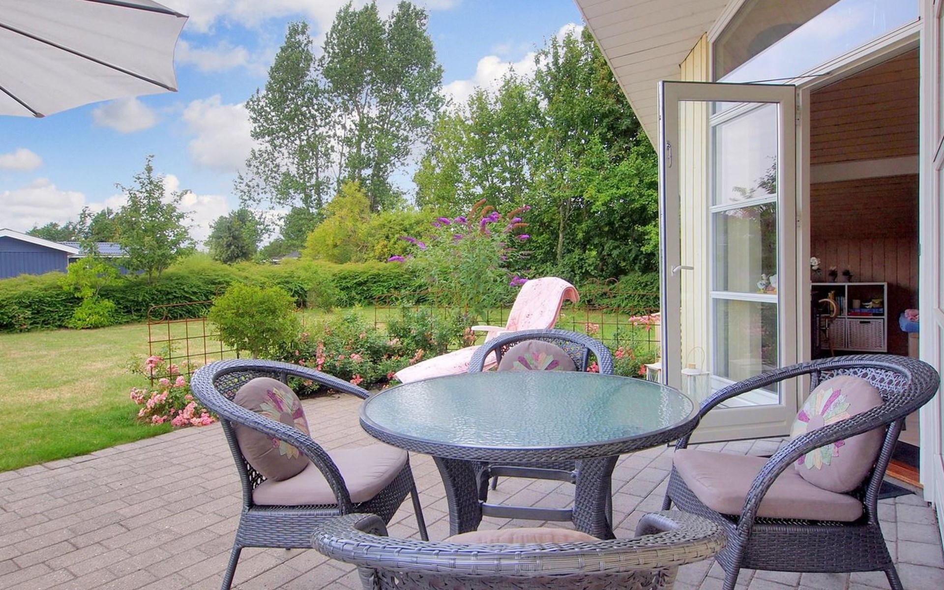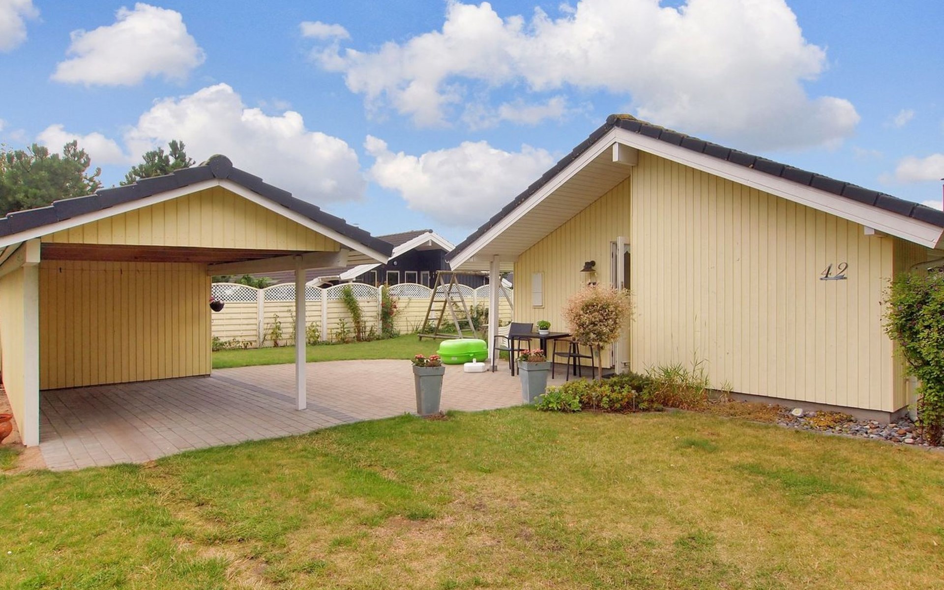 Single-family house, built in 2001. 900 m from the sea. Private: property 901 m2, well-kept garden. Terrace (12 m2). In the house: washing machine, tumble dryer. Carport. Grocery 600 m. The owner does not accept any youth groups.