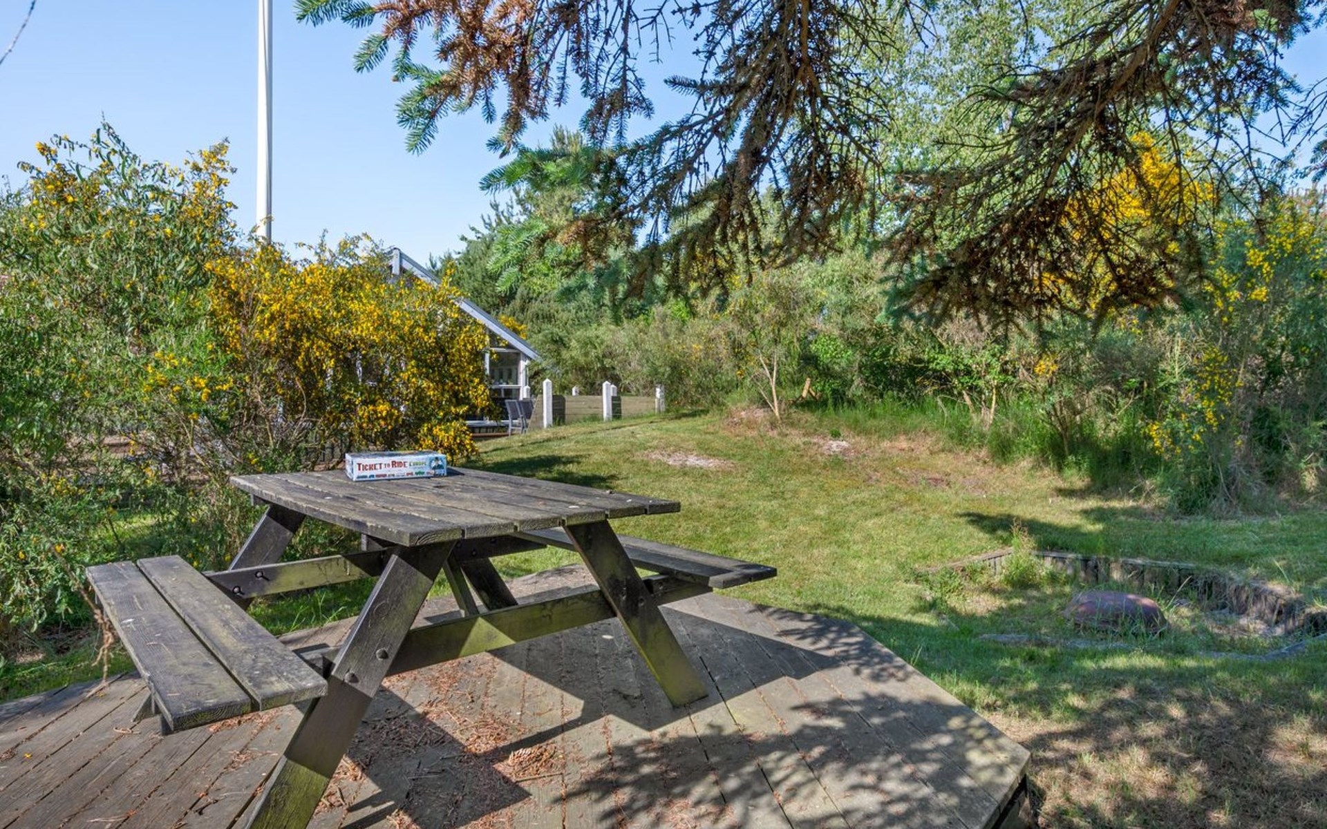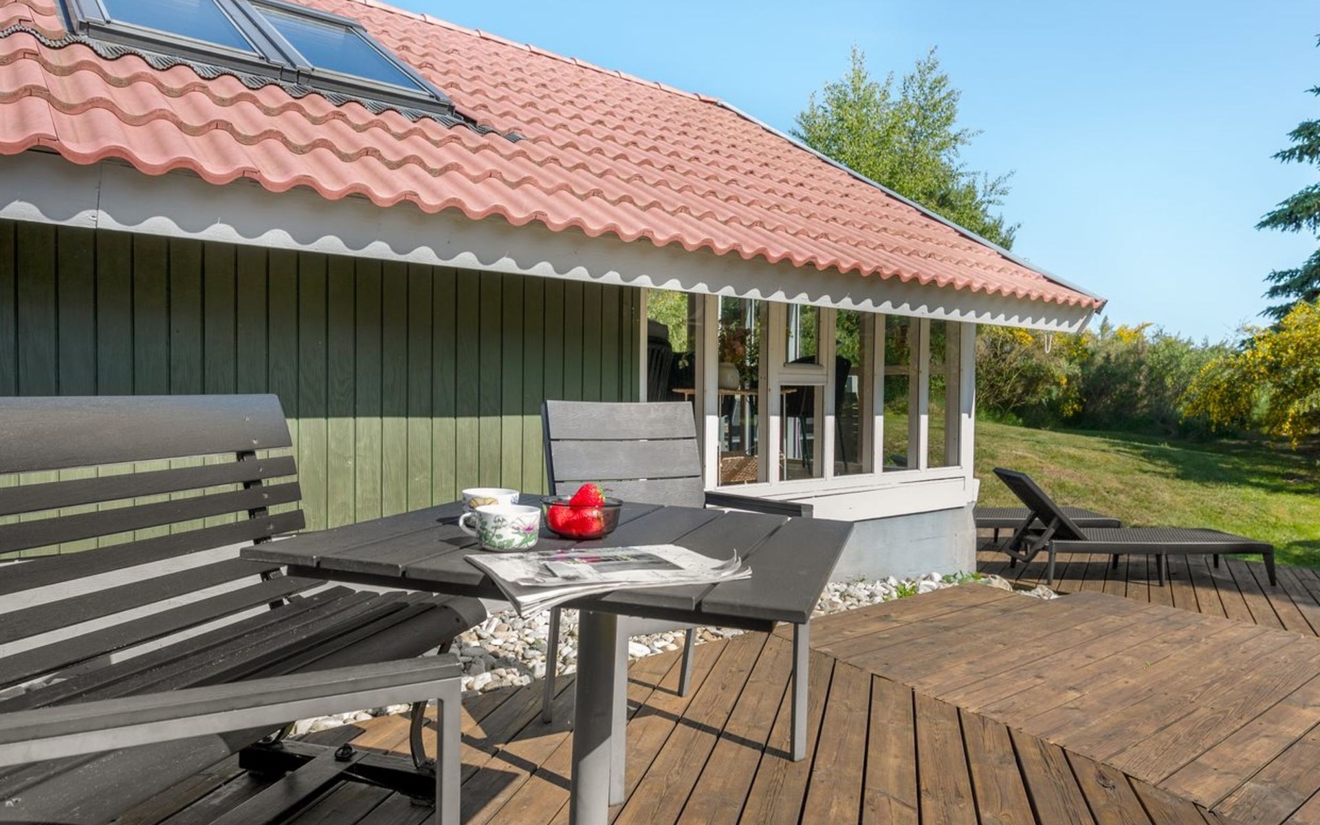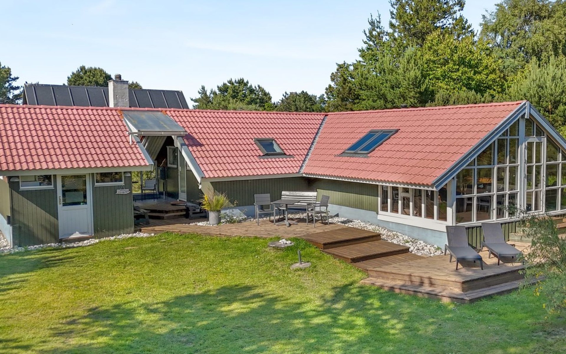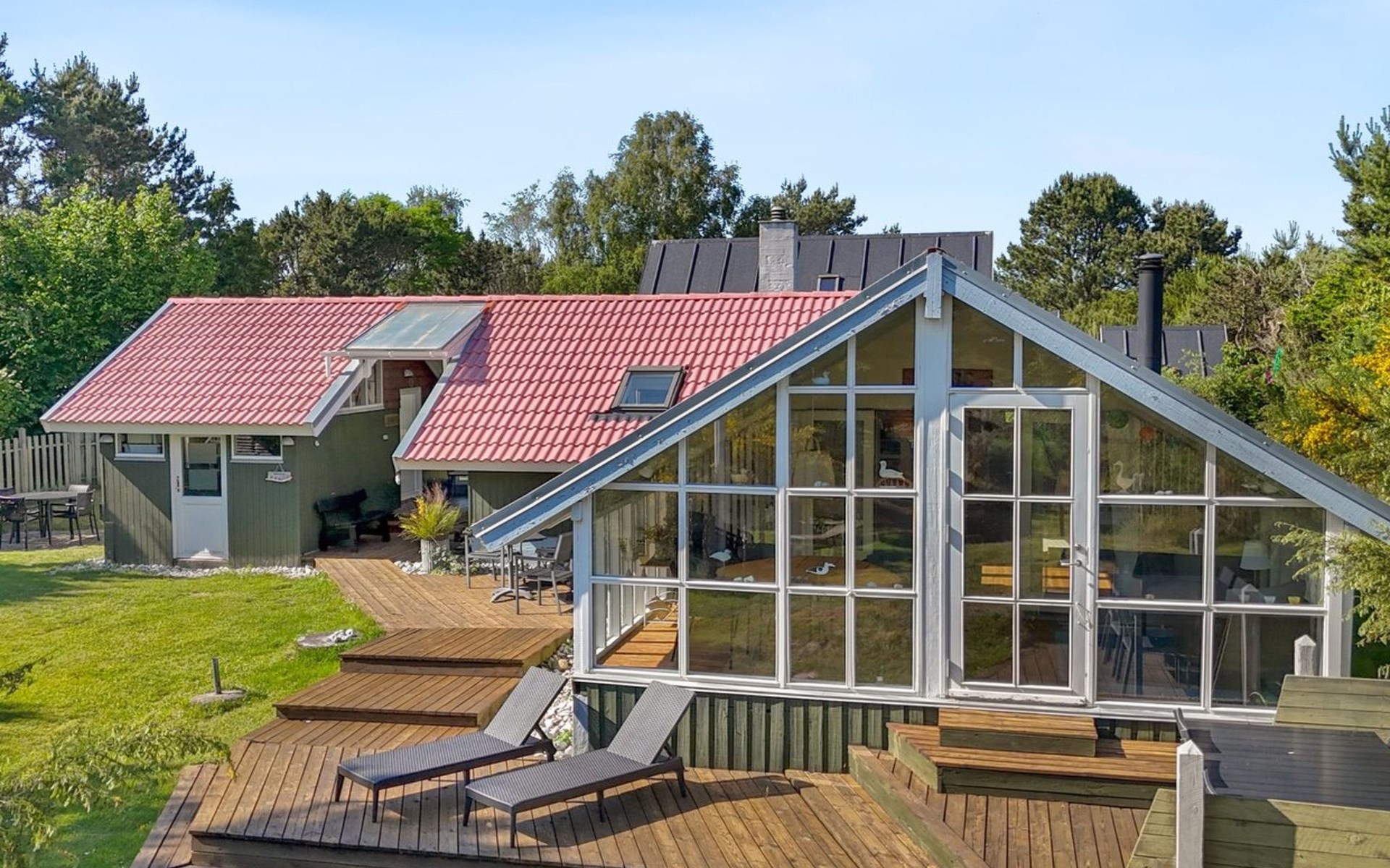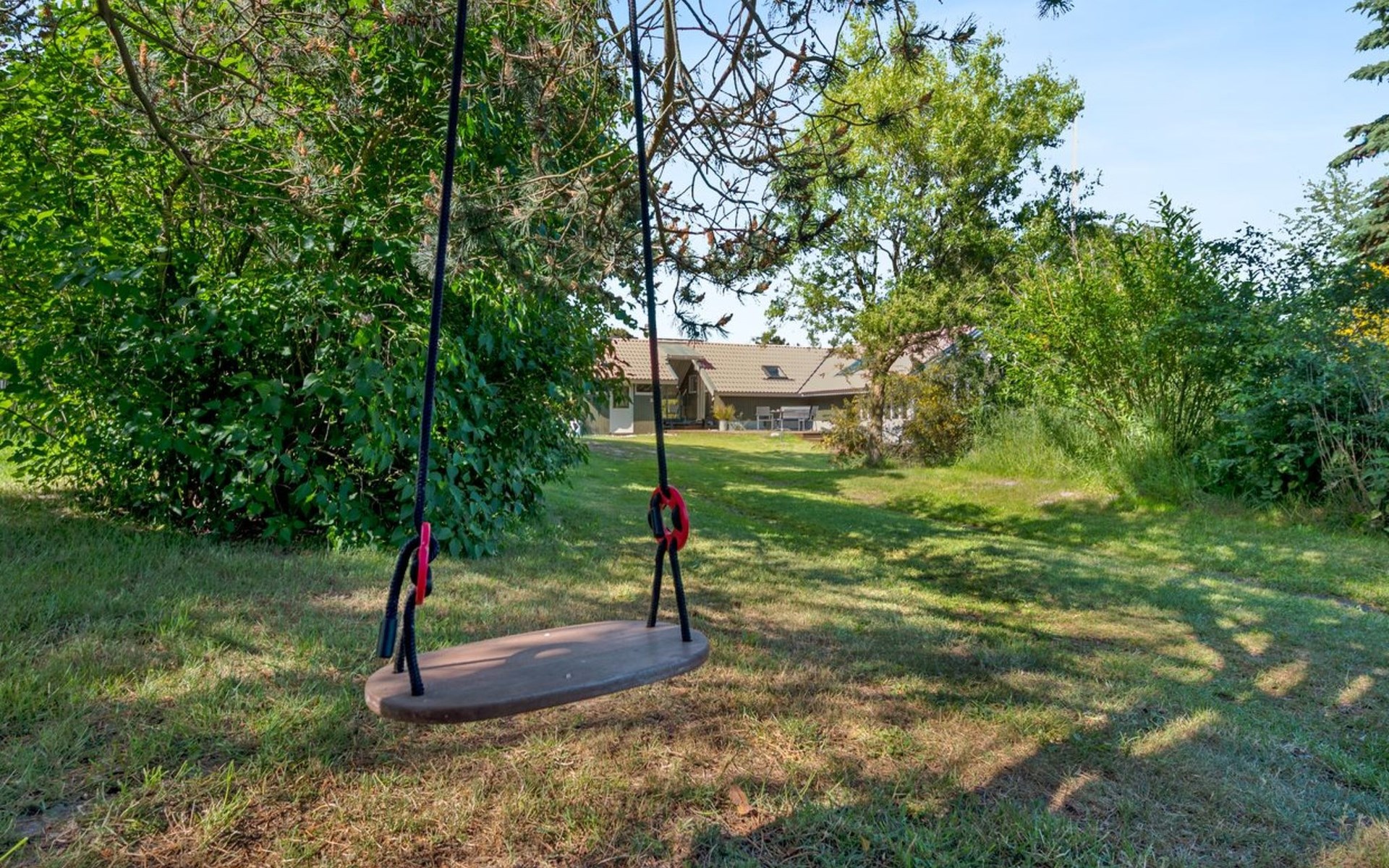 Single-family house, built in 1984. 400 m from the sea. Private: natural state property 1'200 m2. Barbecue, children's playground (swing). In the house: washing machine. Parking at the house. E-charging station. Grocery 3 km. The owner does not accept any youth groups.