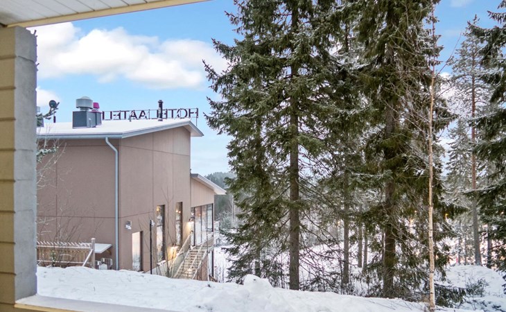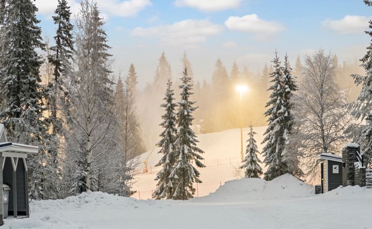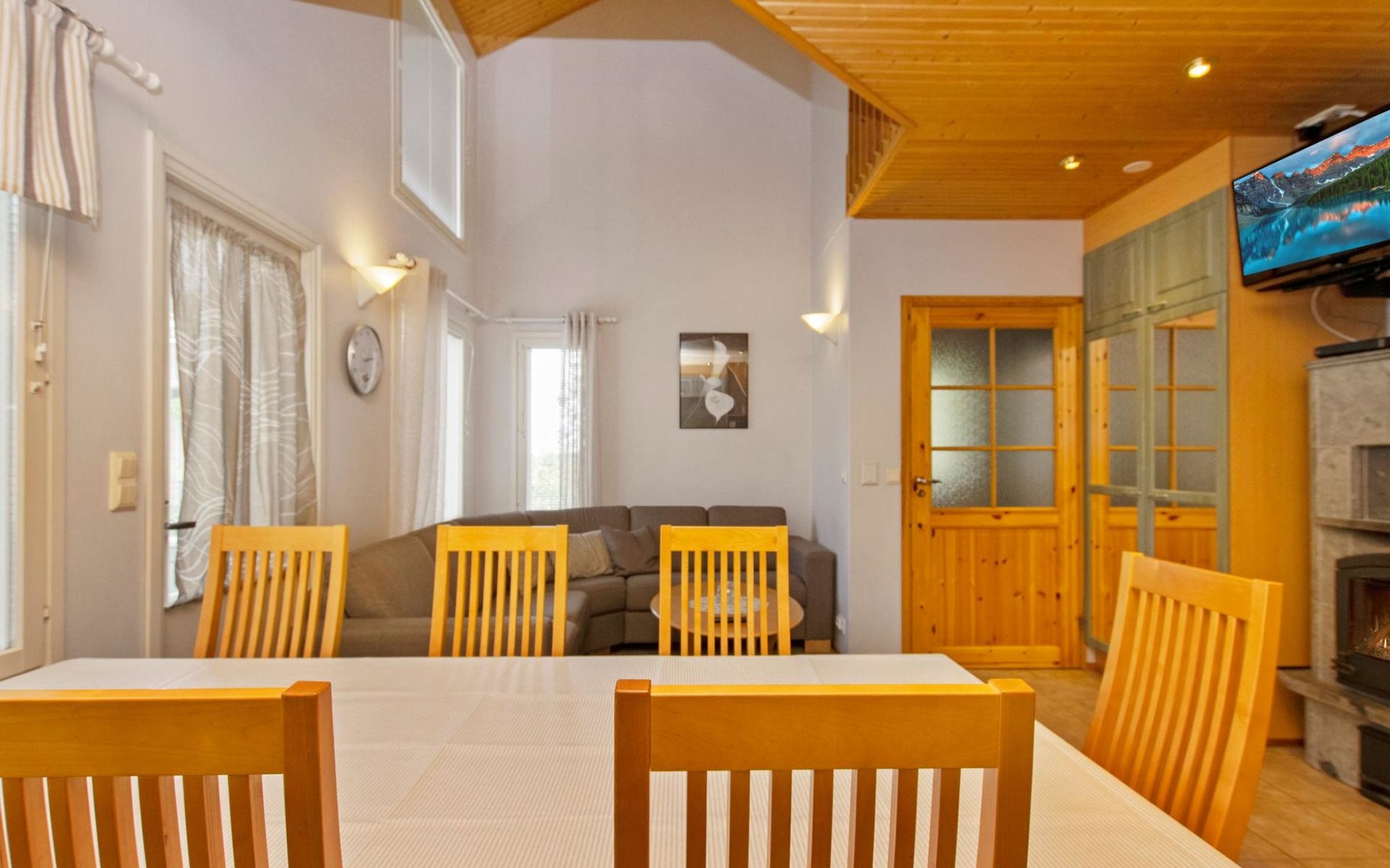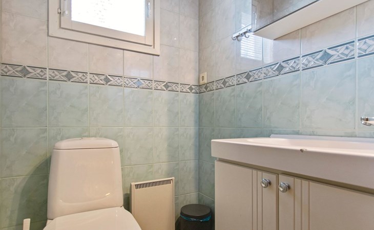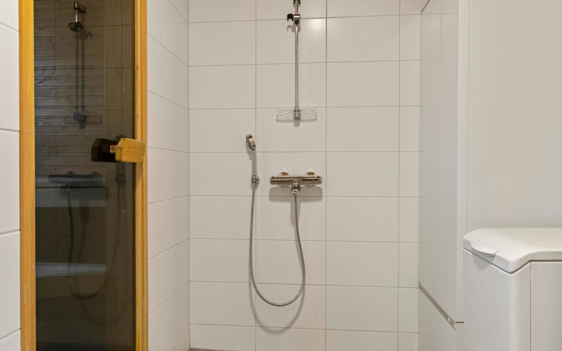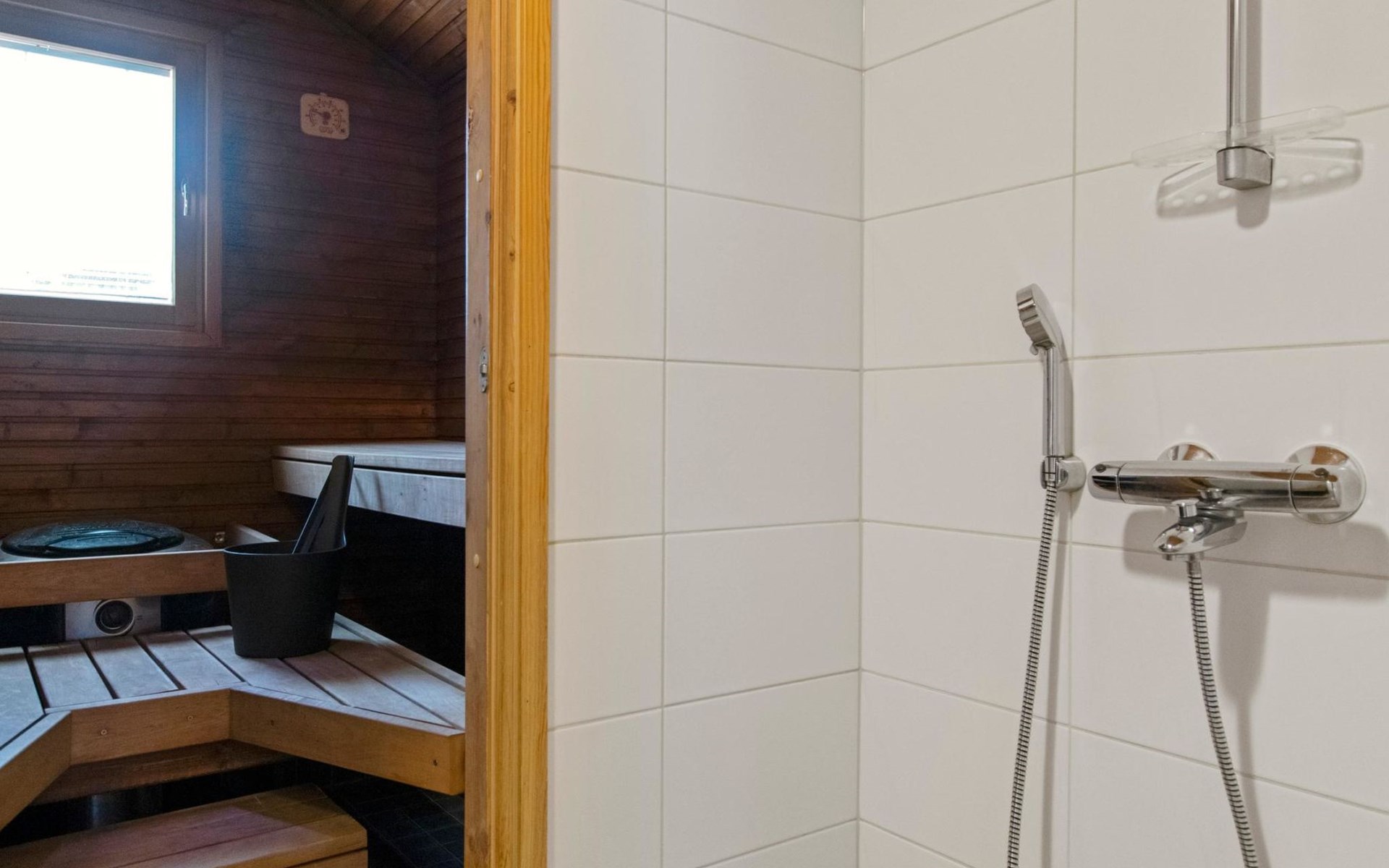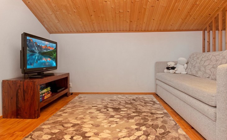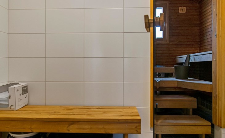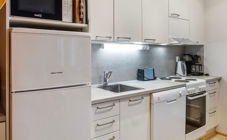 Living area is 72,5 m². On the ground floor there is combined living room & kitchen and one bedroom with twin bed. Upstairs there are two bedrooms, both with separate beds for two. Open loft with sofabed for 1-2 persons, toilet. Sauna (electric heating), washroom, shower and separate toilet.