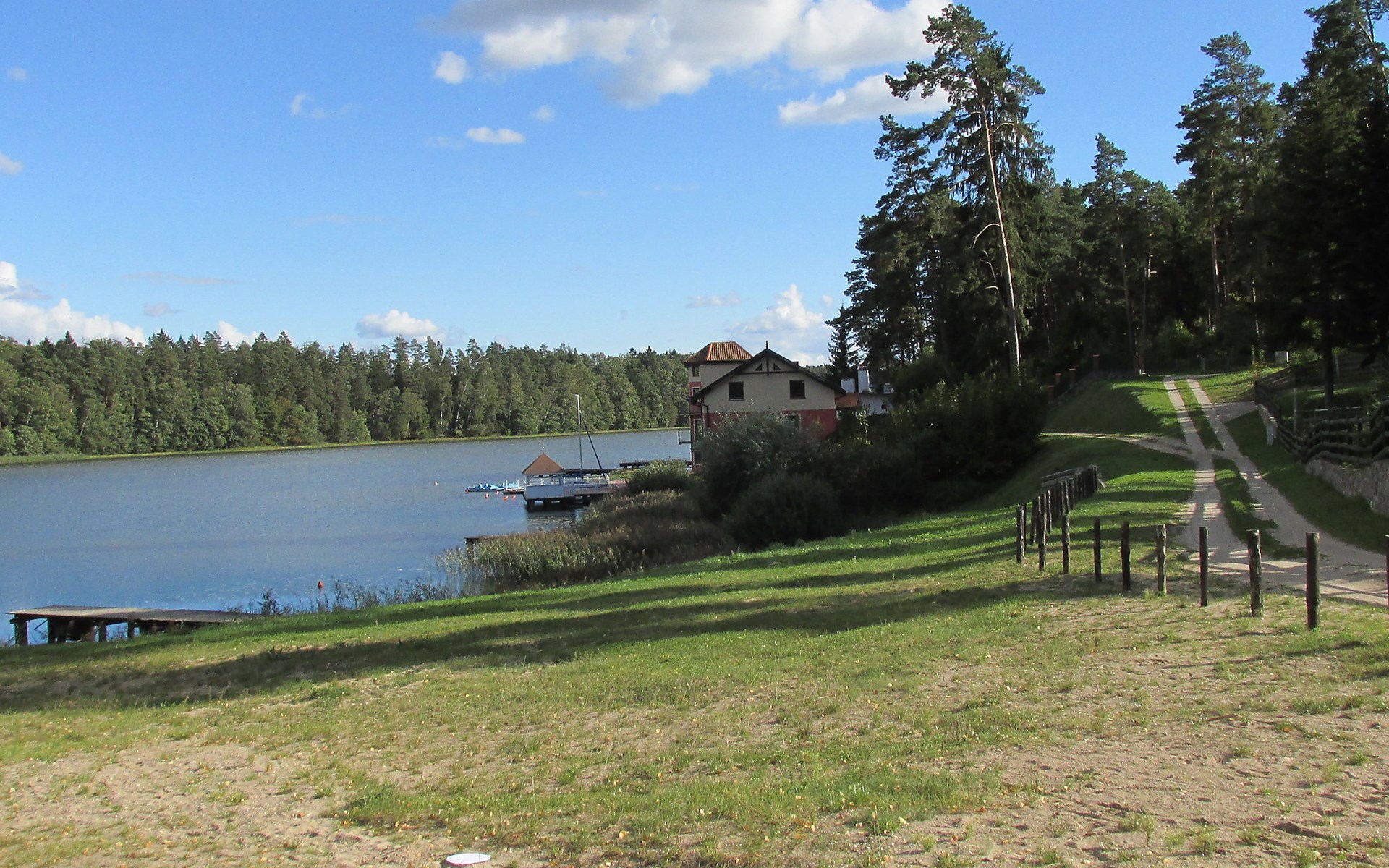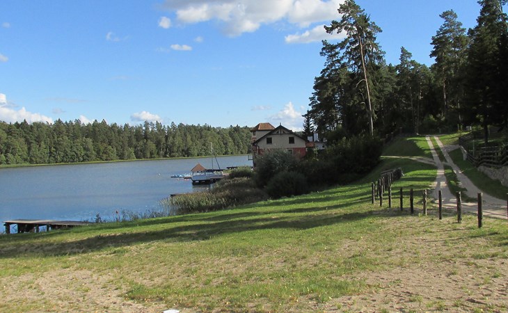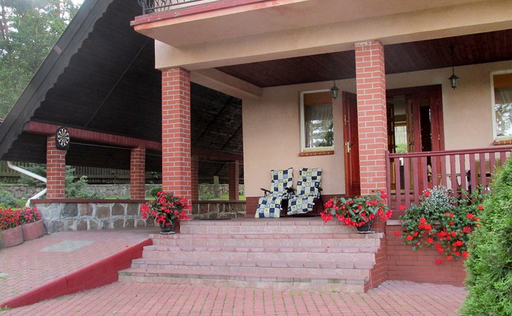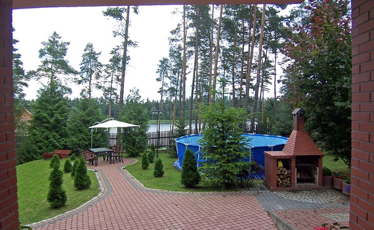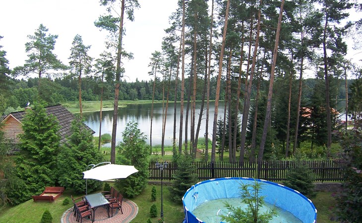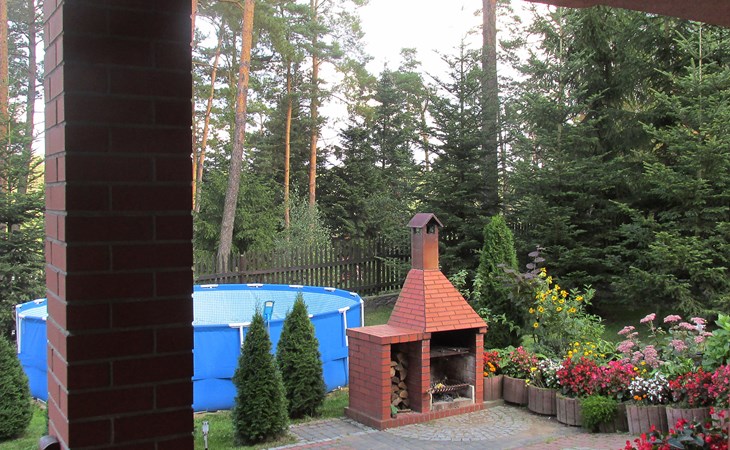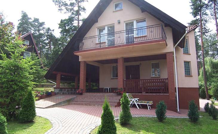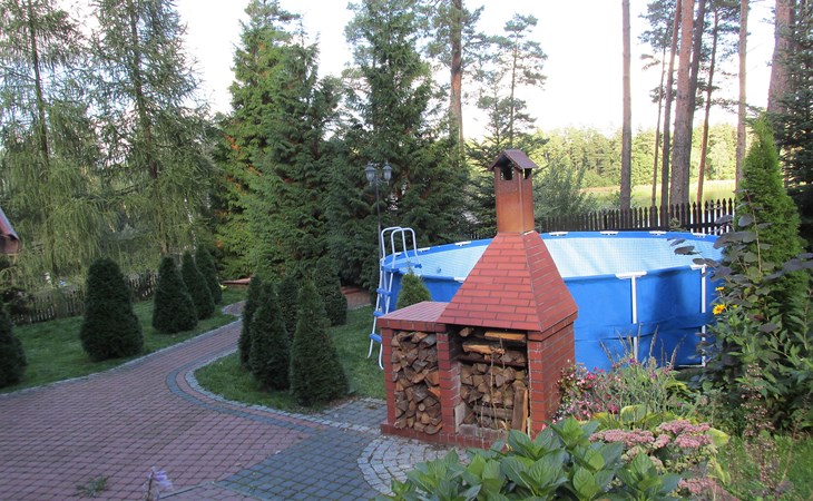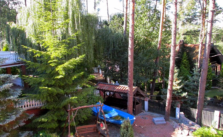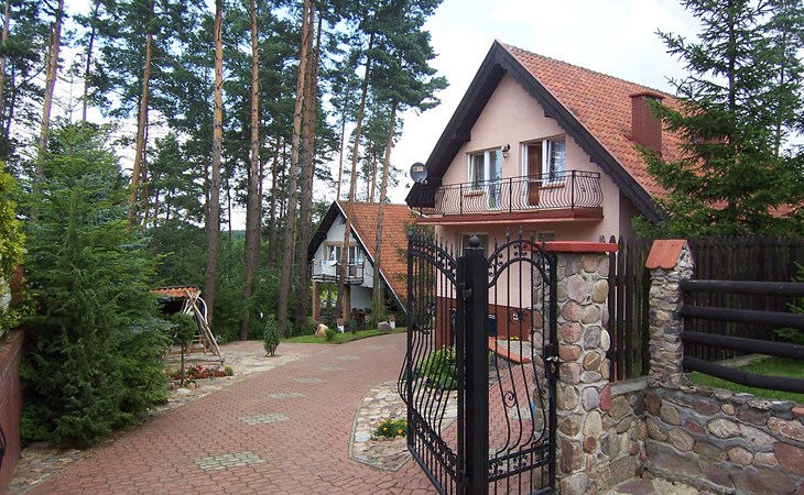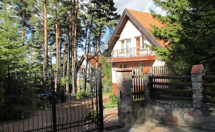 Mielno 13 km from Grunwald: Single-family house "Mielno 2". 50 m from the lake, 250 m from the beach, in the countryside. Private: property 900 m2 (fenced), garden. Garden furniture, barbecue, children's playground (sandbox). In the house: sauna, washing machine, heating to be paid on the spot, bicycles available (extra). Available: boat. Parking at the house, single garage. Shop 500 m, bar, café 50 m, bus stop 150 m. Cycle lane 300 m. Lake with sandy and grassy beach 100 m. Playground for football and volleyball 100 m. 4 bikes. Beautiful forest areas. Every year, from July 10 to July 15, a great staging of the Battle of Grunwald takes place, 13 km. The PL1411.100.1 facility is located 200 m from the Mielno 2 house (PL1411.102.1).