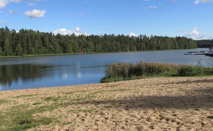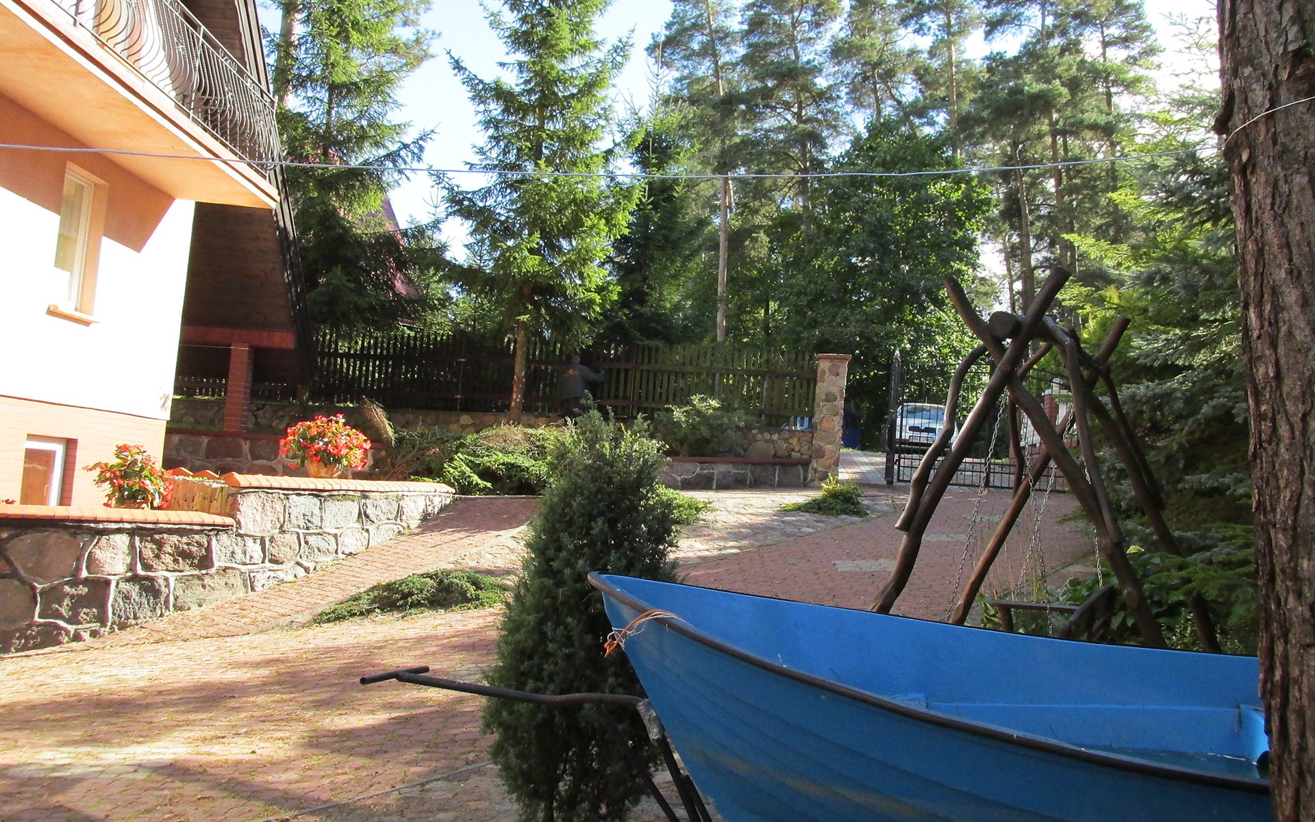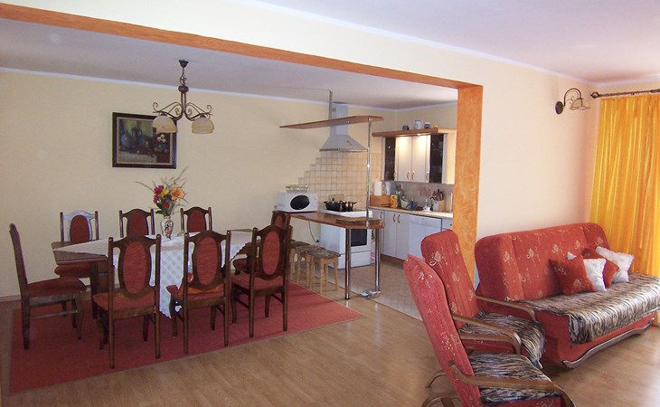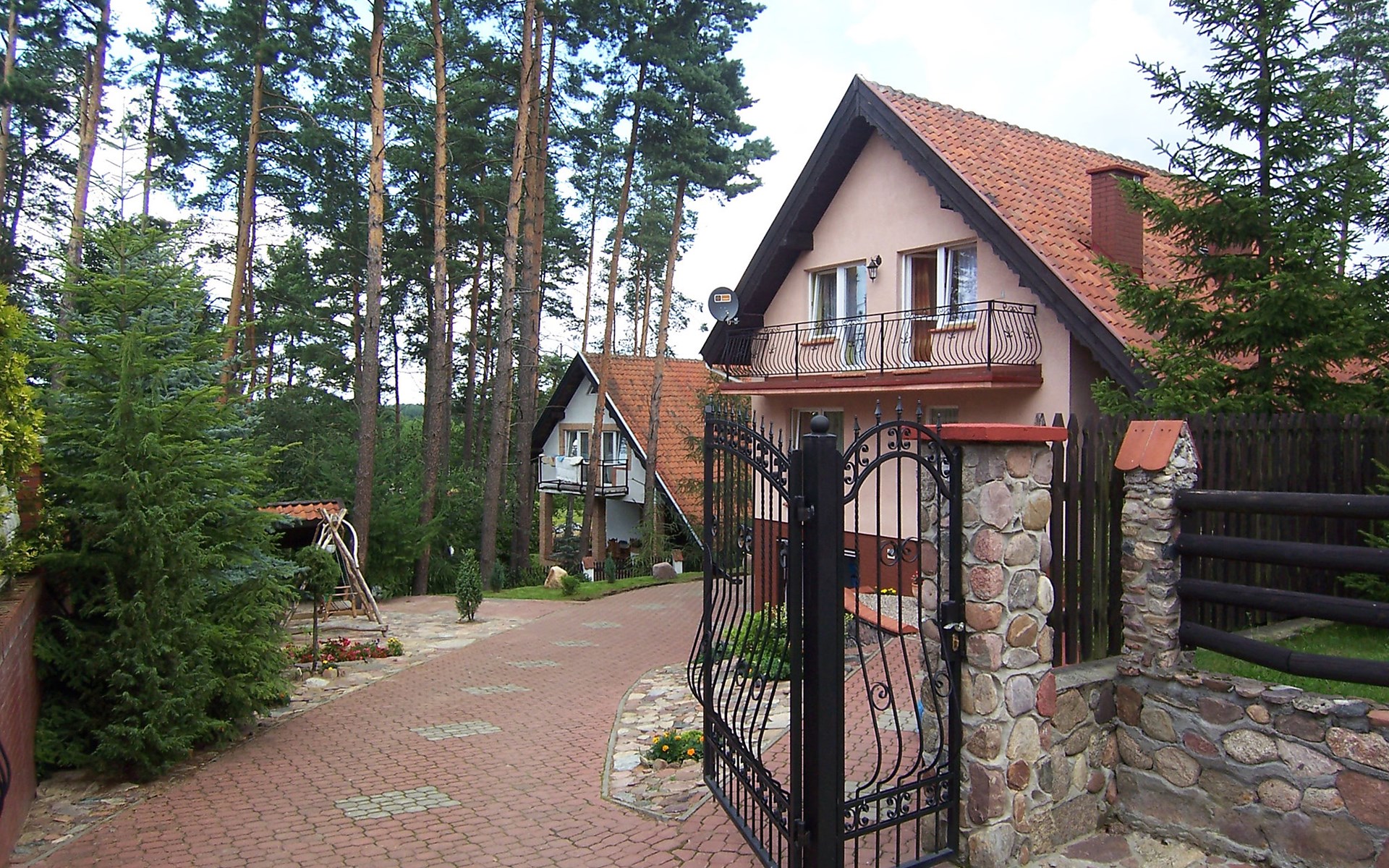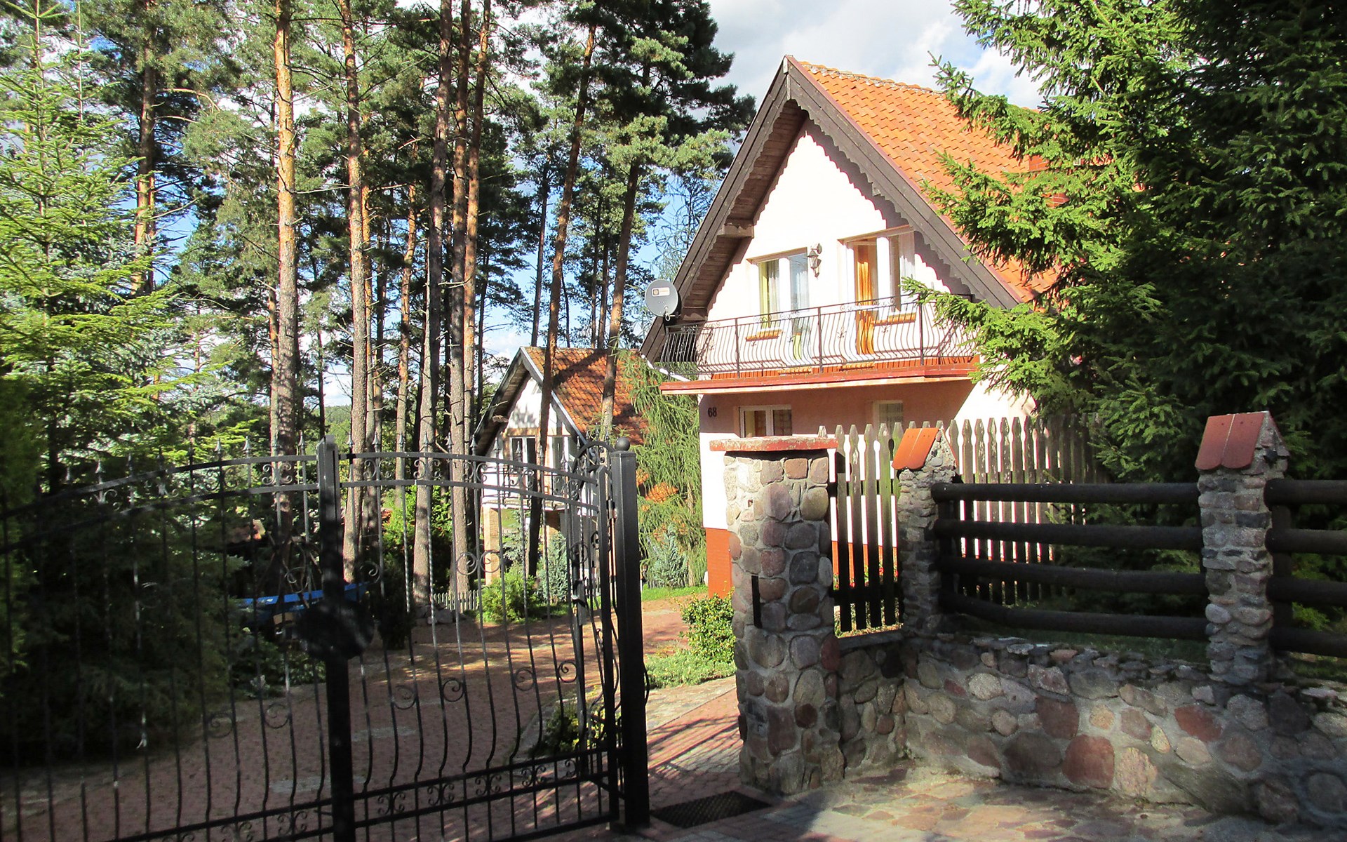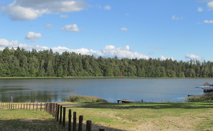 Mielno 13 km from Grunwald: Single-family house "Mielno 2". 50 m from the lake, 250 m from the beach, in the countryside. Private: property 900 m2 (fenced), garden. Garden furniture, barbecue, children's playground (sandbox). In the house: sauna, washing machine, heating to be paid on the spot, bicycles available (extra). Available: boat. Parking at the house, single garage. Shop 500 m, bar, café 50 m, bus stop 150 m. Cycle lane 300 m. Lake with sandy and grassy beach 100 m. Playground for football and volleyball 100 m. 4 bikes. Beautiful forest areas. Every year, from July 10 to July 15, a great staging of the Battle of Grunwald takes place, 13 km. The PL1411.100.1 facility is located 200 m from the Mielno 2 house (PL1411.102.1).