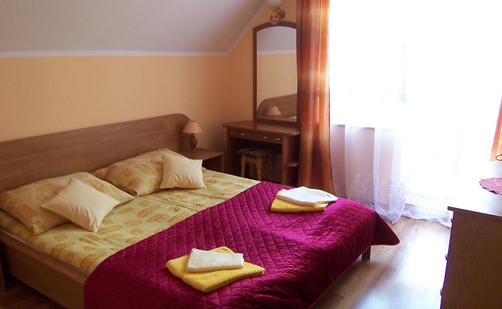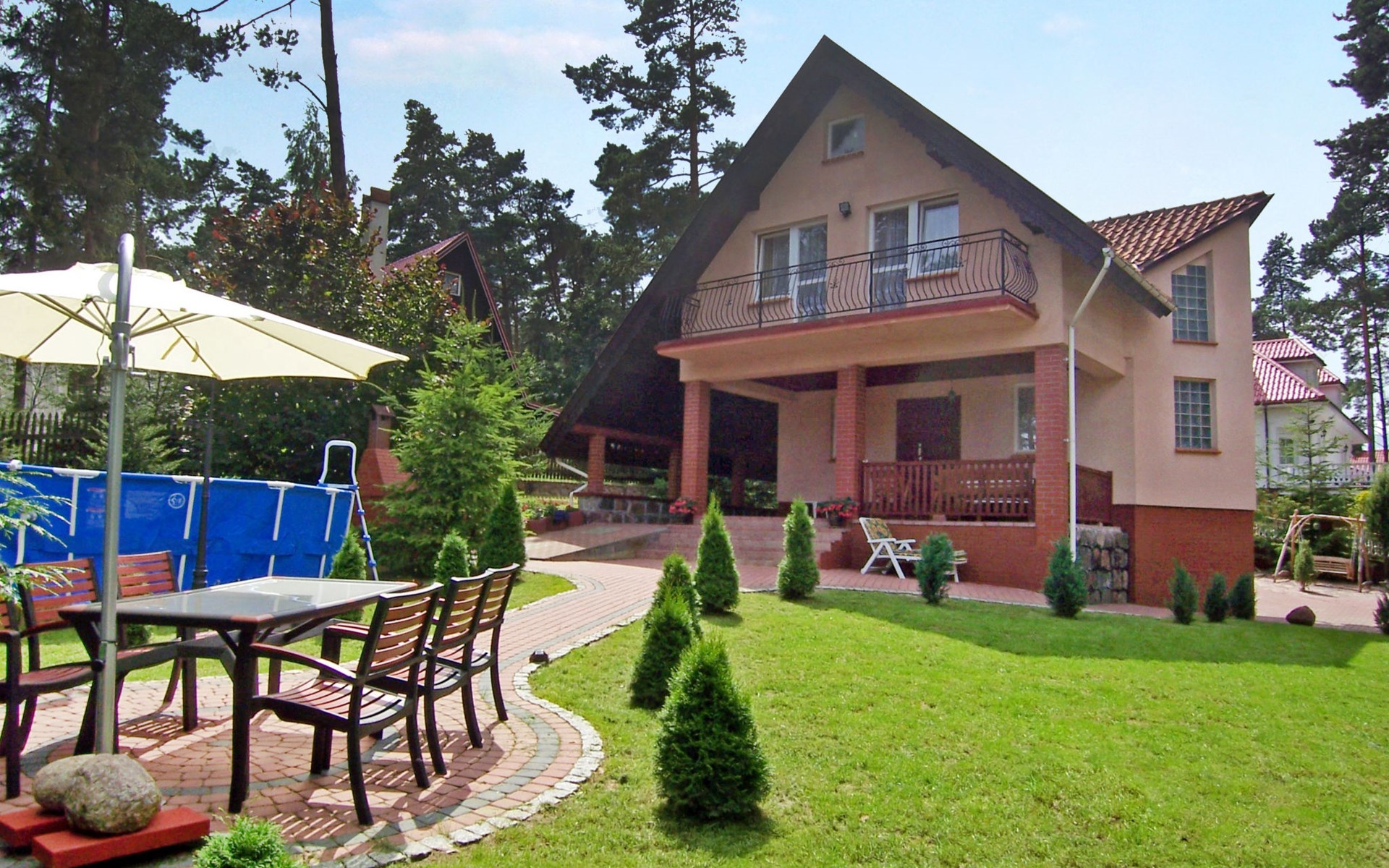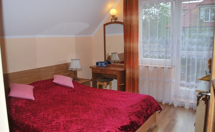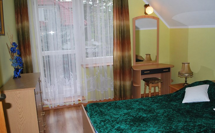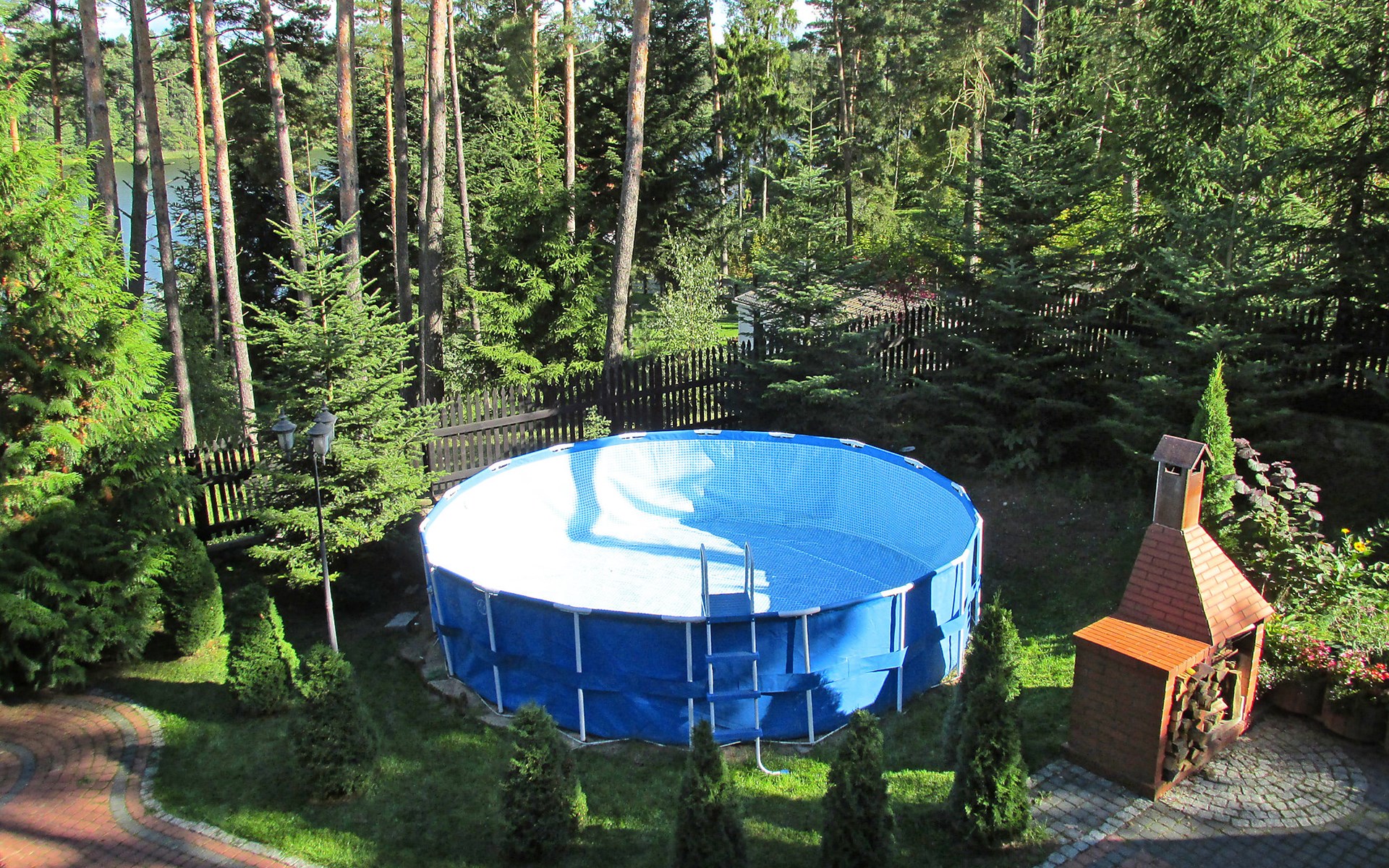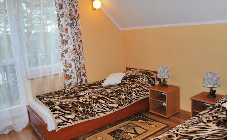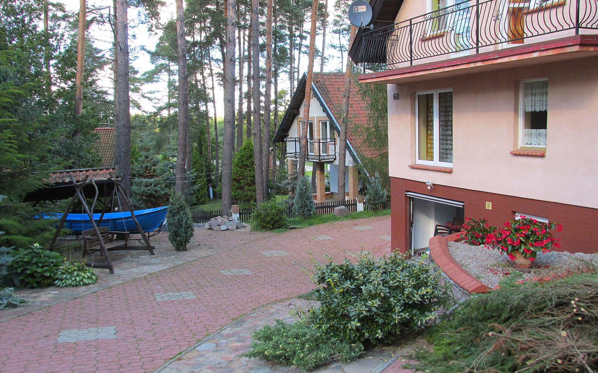 Mielno 13 km from Grunwald: Single-family house "Mielno 2". 50 m from the lake, 250 m from the beach, in the countryside. Private: property 900 m2 (fenced), garden. Garden furniture, barbecue, children's playground (sandbox). In the house: sauna, washing machine, heating to be paid on the spot, bicycles available (extra). Available: boat. Parking at the house, single garage. Shop 500 m, bar, café 50 m, bus stop 150 m. Cycle lane 300 m. Lake with sandy and grassy beach 100 m. Playground for football and volleyball 100 m. 4 bikes. Beautiful forest areas. Every year, from July 10 to July 15, a great staging of the Battle of Grunwald takes place, 13 km. The PL1411.100.1 facility is located 200 m from the Mielno 2 house (PL1411.102.1).
