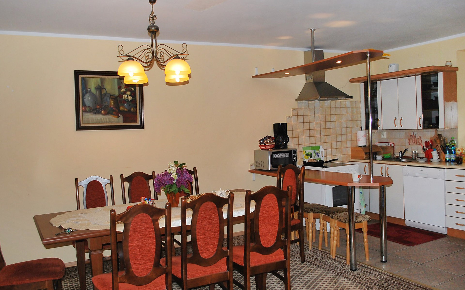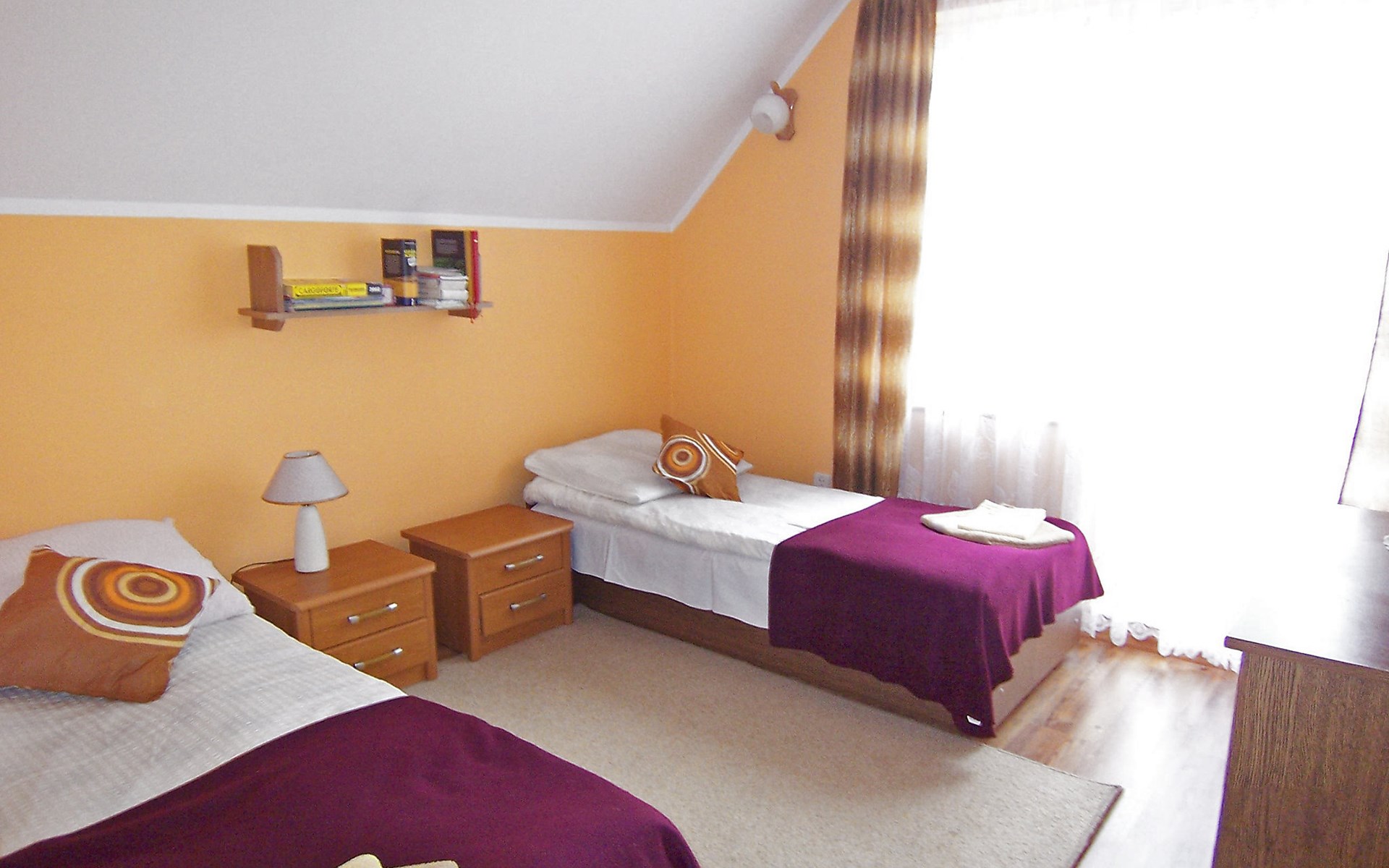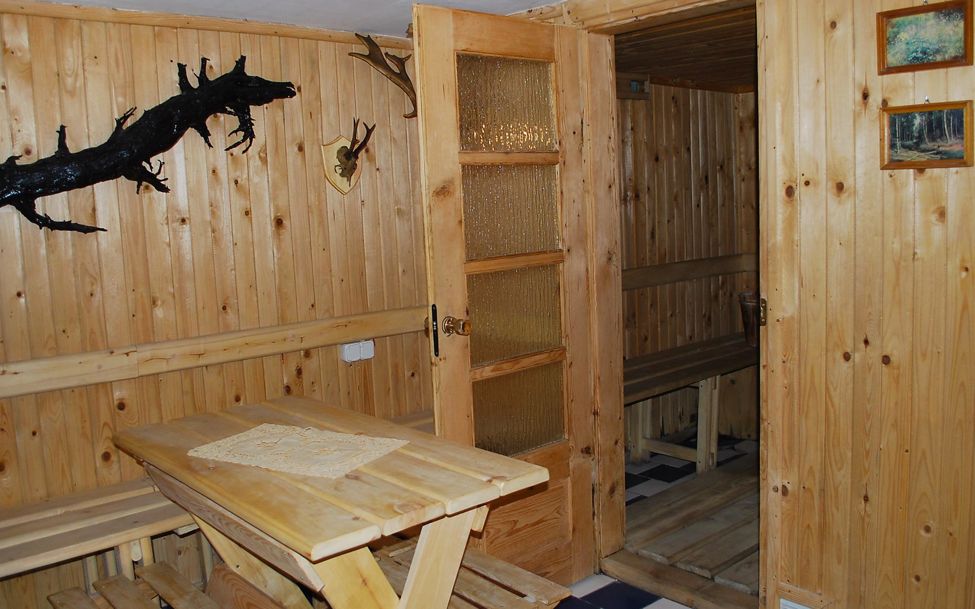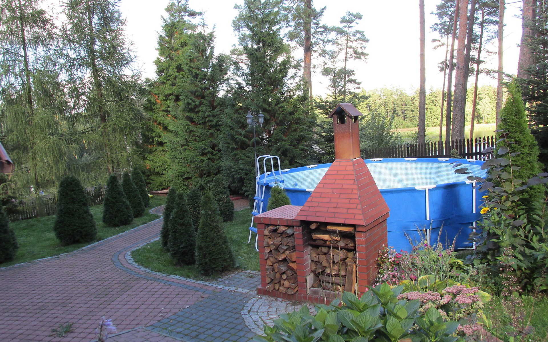 Mielno 13 km from Grunwald: Single-family house "Mielno 2". 50 m from the lake, 250 m from the beach, in the countryside. Private: property 900 m2 (fenced), garden. Garden furniture, barbecue, children's playground (sandbox). In the house: sauna, washing machine, heating to be paid on the spot, bicycles available (extra). Available: boat. Parking at the house, single garage. Shop 500 m, bar, café 50 m, bus stop 150 m. Cycle lane 300 m. Lake with sandy and grassy beach 100 m. Playground for football and volleyball 100 m. 4 bikes. Beautiful forest areas. Every year, from July 10 to July 15, a great staging of the Battle of Grunwald takes place, 13 km. The PL1411.100.1 facility is located 200 m from the Mielno 2 house (PL1411.102.1).