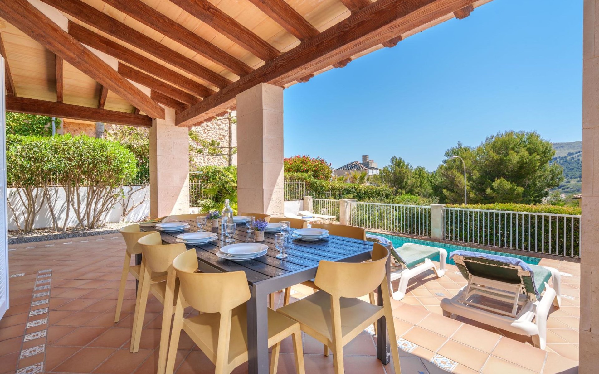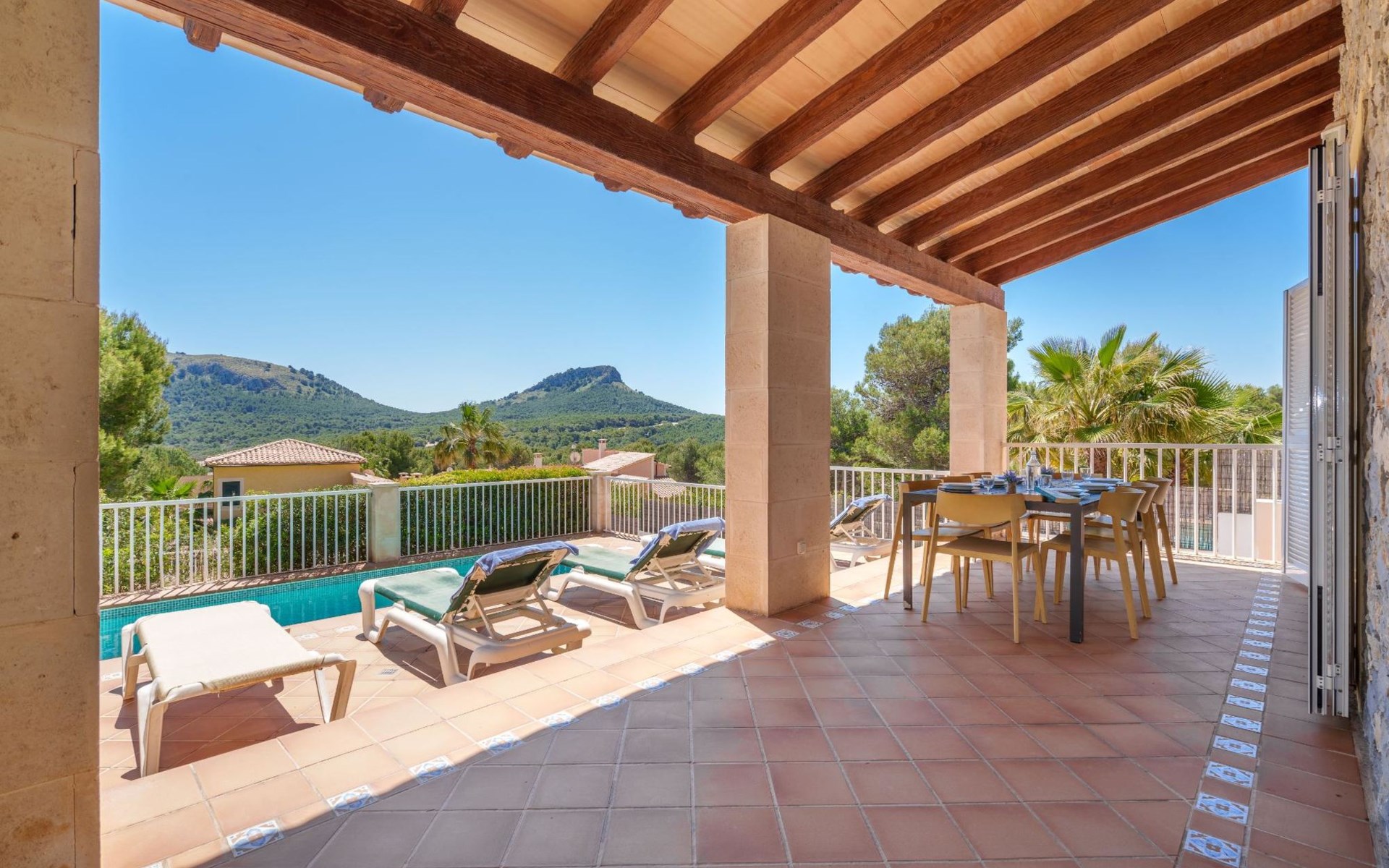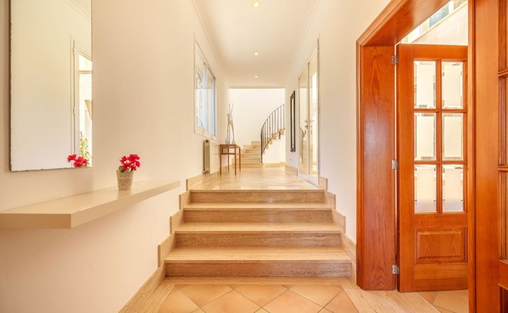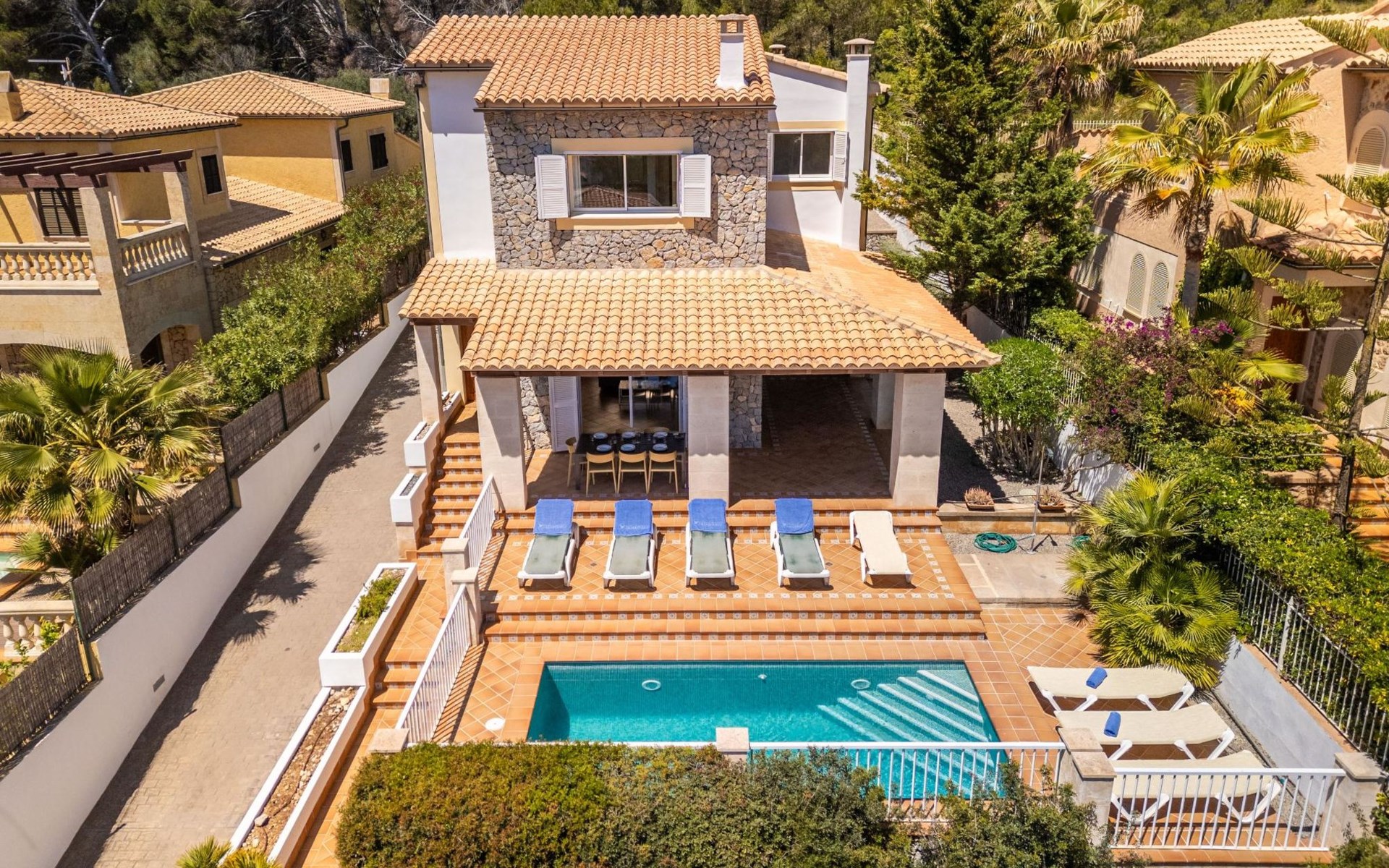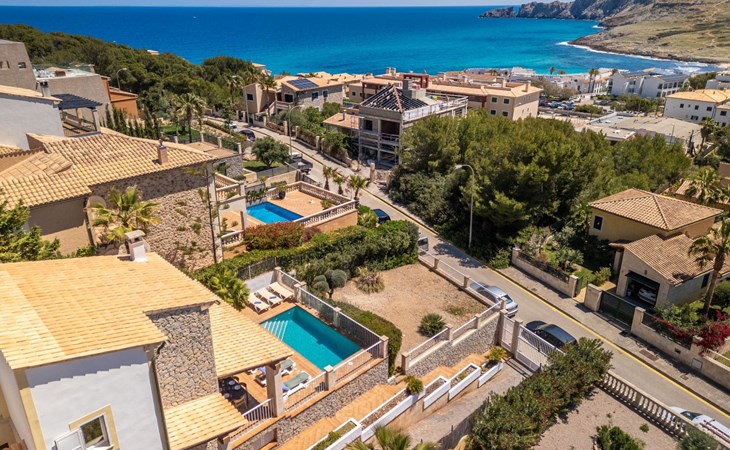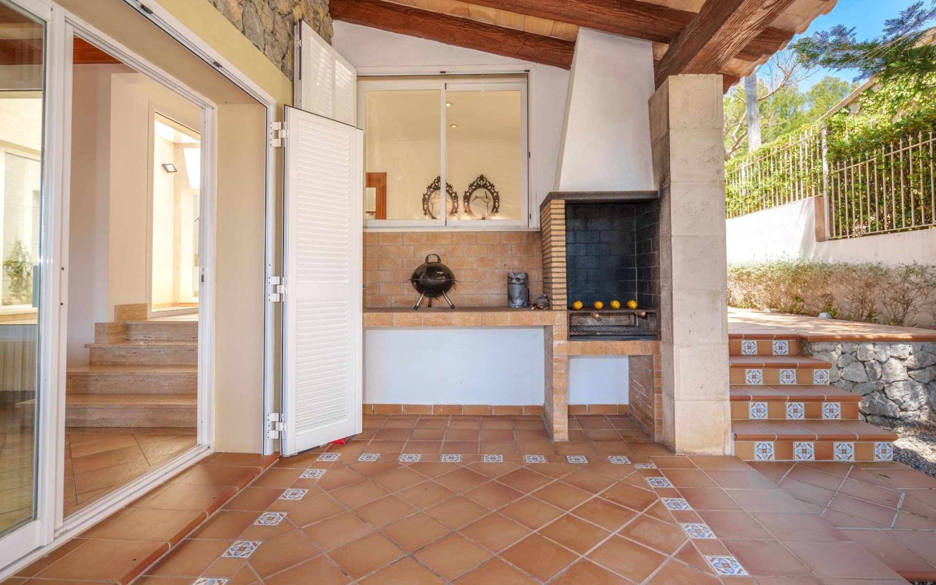 Cala Mesquida 7 km from Capdepera: Modern, comfortable house "Cala Mesquida", 2 storeys, detached. 6 km from the centre of Capdepera, 8 km from the centre of Cala Ratjada, 32 km from the centre of Manacor, on a slope, in the residential district, 100 m from the edge of the forest, 500 m from the sea, 600 m from the beach. Private: natural state property 600 m2 (fenced), terraced garden, swimming pool (6 x 3 m, seasonal availability: 01.Jan. - 31.Dec.). Outdoor shower, pool maintenance by the owner/gardener. Stepped path to the house. Single garage. Shop 350 m, grocery 400 m, supermarket 6 km, restaurant 350 m, bar 200 m, bakery 400 m, café 350 m, pedestrian zone 150 m, bicycle rental 200 m, bus stop "Cala Mesquida" 700 m, railway station "Manacor" 33 km, sandy beach "Cala Mesquida" 500 m. Sports harbour 8 km, marina 8 km, golf course (18 hole) 9 km, surf school, sailing school 500 m, tennis 4 km, riding stable 5 km, walking paths from the house 2 km, cycle lane 1 km. Hiking paths: Talaia de Son Jaumell, Cala Torta 200 m. Please note: car recommended. Groups of teenagers on request only. The owner does not accept any youth groups.