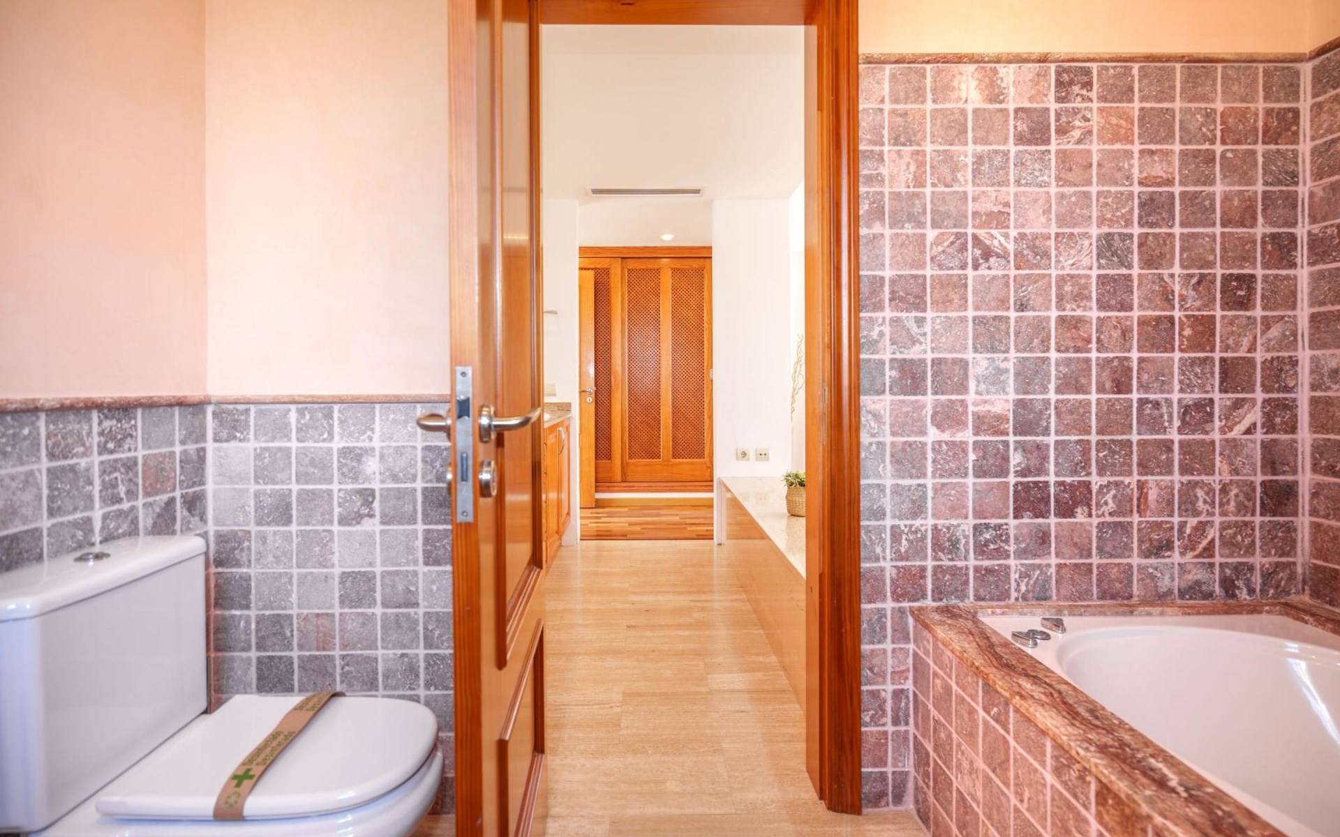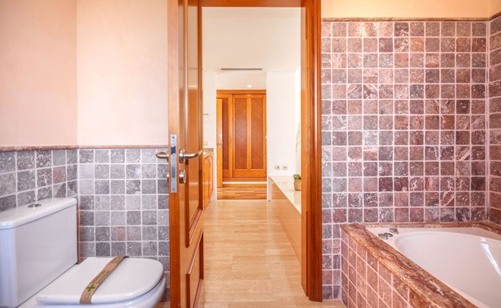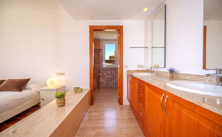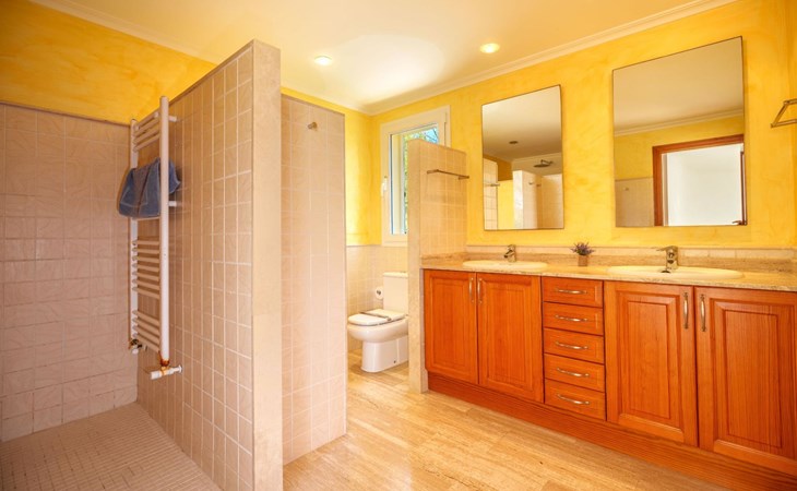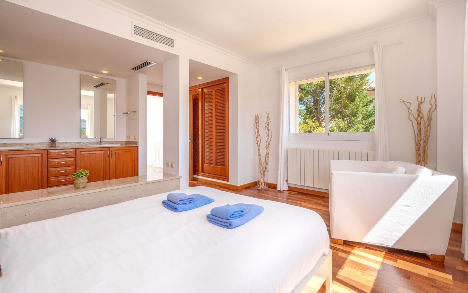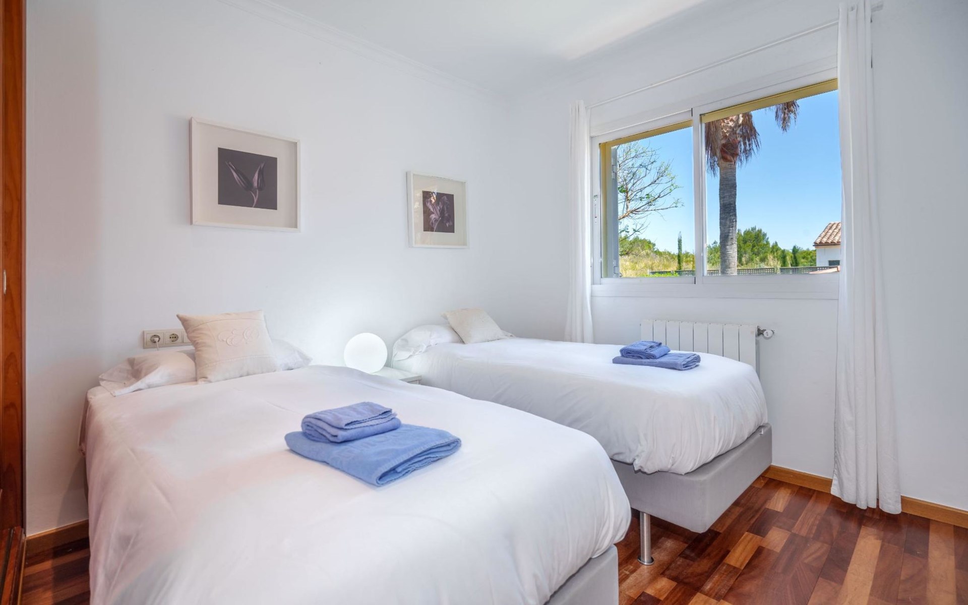 Cala Mesquida 7 km from Capdepera: Modern, comfortable house "Cala Mesquida", 2 storeys, detached. 6 km from the centre of Capdepera, 8 km from the centre of Cala Ratjada, 32 km from the centre of Manacor, on a slope, in the residential district, 100 m from the edge of the forest, 500 m from the sea, 600 m from the beach. Private: natural state property 600 m2 (fenced), terraced garden, swimming pool (6 x 3 m, seasonal availability: 01.Jan. - 31.Dec.). Outdoor shower, pool maintenance by the owner/gardener. Stepped path to the house. Single garage. Shop 350 m, grocery 400 m, supermarket 6 km, restaurant 350 m, bar 200 m, bakery 400 m, café 350 m, pedestrian zone 150 m, bicycle rental 200 m, bus stop "Cala Mesquida" 700 m, railway station "Manacor" 33 km, sandy beach "Cala Mesquida" 500 m. Sports harbour 8 km, marina 8 km, golf course (18 hole) 9 km, surf school, sailing school 500 m, tennis 4 km, riding stable 5 km, walking paths from the house 2 km, cycle lane 1 km. Hiking paths: Talaia de Son Jaumell, Cala Torta 200 m. Please note: car recommended. Groups of teenagers on request only. The owner does not accept any youth groups.