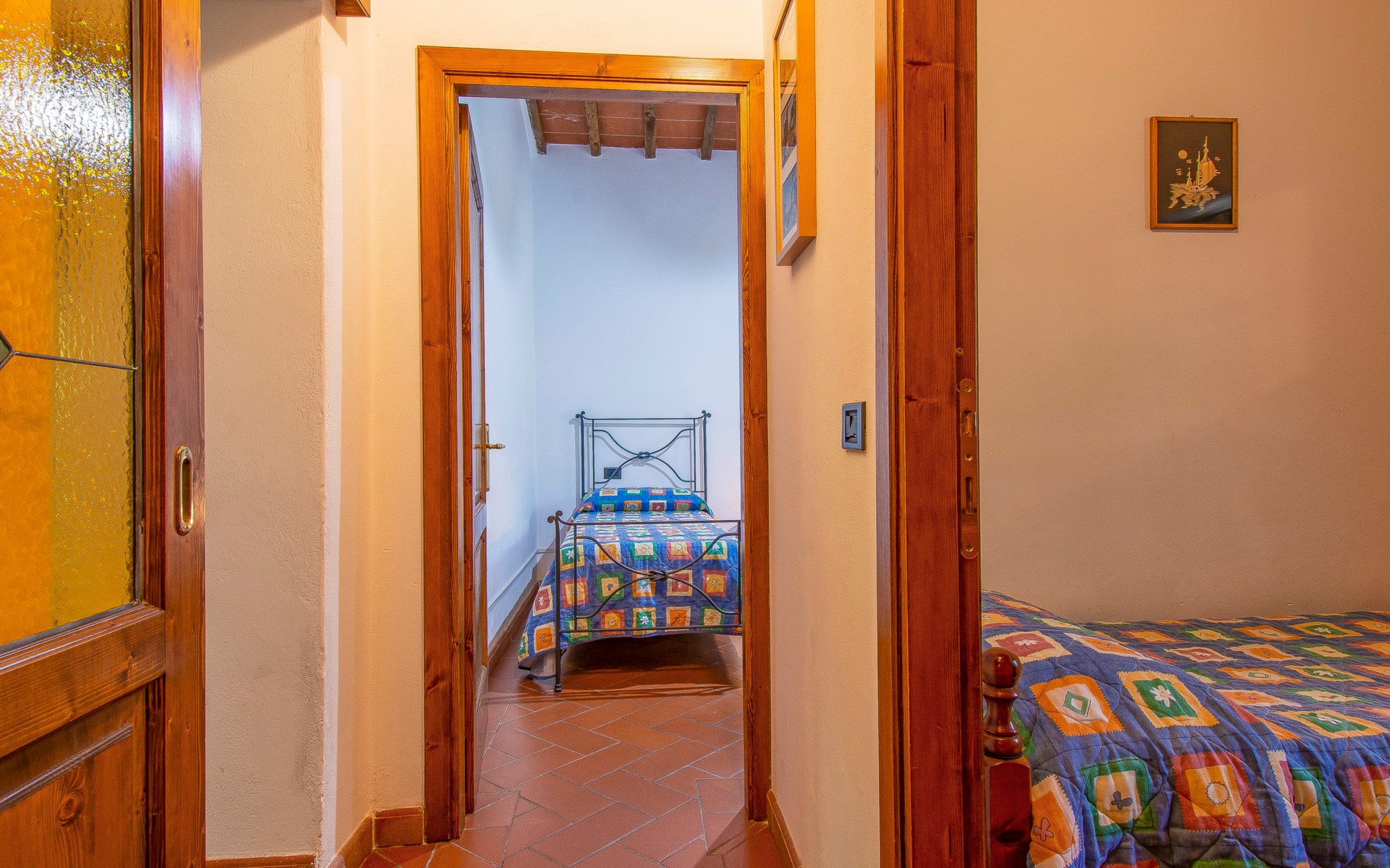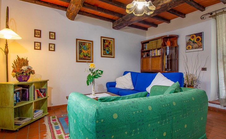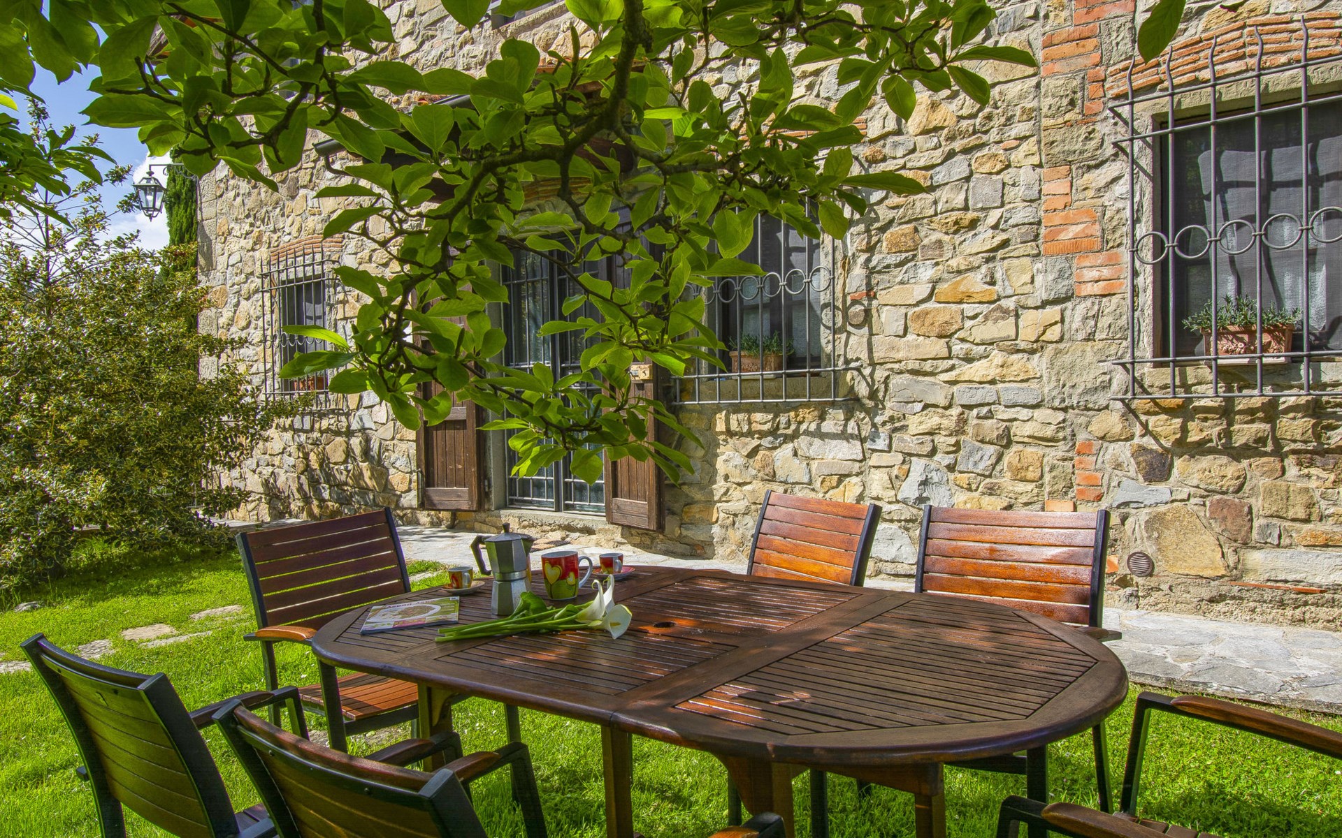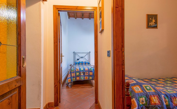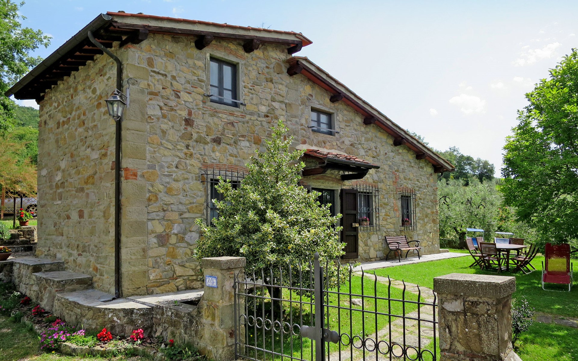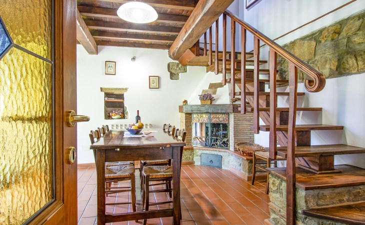 Large working farm "Il Casellino", 460 m a.s.l., 2 storeys, surrounded by trees. 4 apartments in the property. Property composed of main house and outbuilding 5 km from the centre of Loro Ciuffenna, in a secluded, quiet position, in the countryside. For shared use: property 200 ha, garden (not fenced) with lawn and trees, swimming pool kidney-shaped (8 x 4 m, seasonal availability: 01.May. - 25.Sep.). Outdoor shower, barbecue. In the house: washing machine (for shared use, extra). 600 m long steep, narrow motor access. Roofed, parking on the premises. Shop 5 km, supermarket 12 km, bus stop 2 km, railway station "Montevarchi" 15 km. Walking paths from the house 50 m. Nearby attractions: Firenze 60 km, Arezzo 40 km, Siena 60 km. Please note: car recommended. Local sale of farm products. The owner lives on the same property.