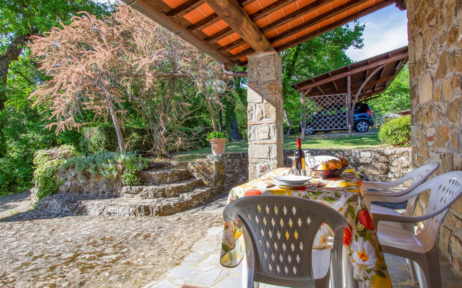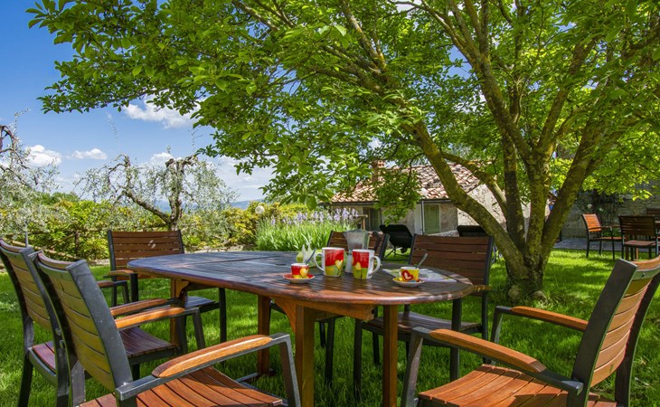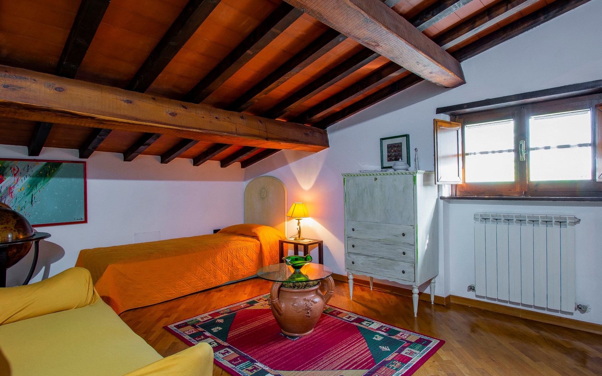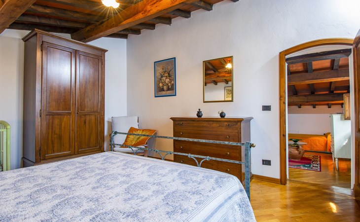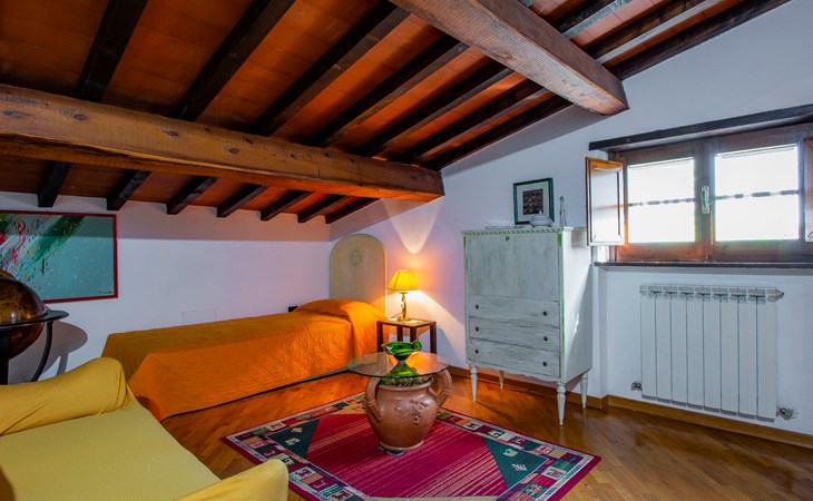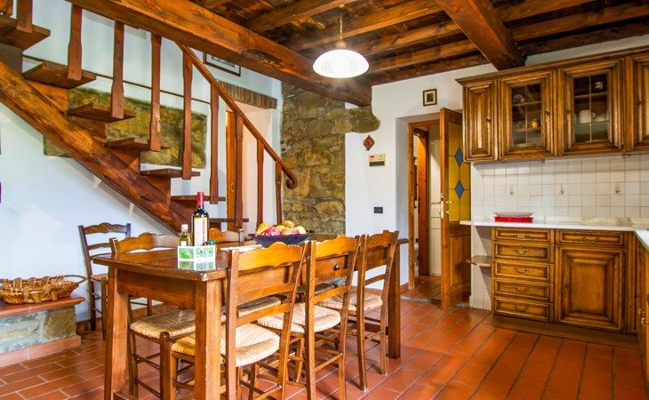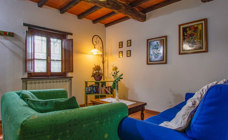 Large working farm "Il Casellino", 460 m a.s.l., 2 storeys, surrounded by trees. 4 apartments in the property. Property composed of main house and outbuilding 5 km from the centre of Loro Ciuffenna, in a secluded, quiet position, in the countryside. For shared use: property 200 ha, garden (not fenced) with lawn and trees, swimming pool kidney-shaped (8 x 4 m, seasonal availability: 01.May. - 25.Sep.). Outdoor shower, barbecue. In the house: washing machine (for shared use, extra). 600 m long steep, narrow motor access. Roofed, parking on the premises. Shop 5 km, supermarket 12 km, bus stop 2 km, railway station "Montevarchi" 15 km. Walking paths from the house 50 m. Nearby attractions: Firenze 60 km, Arezzo 40 km, Siena 60 km. Please note: car recommended. Local sale of farm products. The owner lives on the same property.