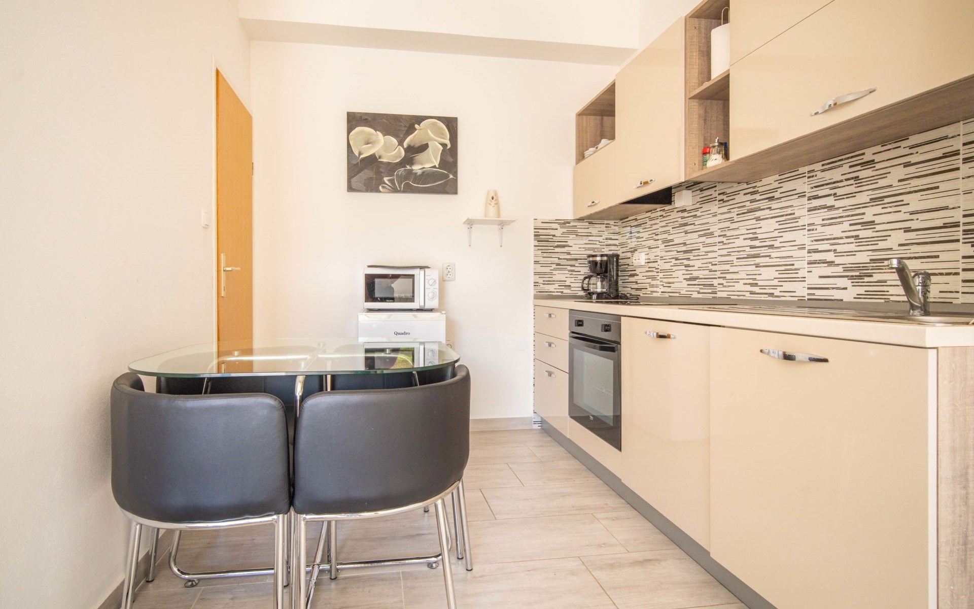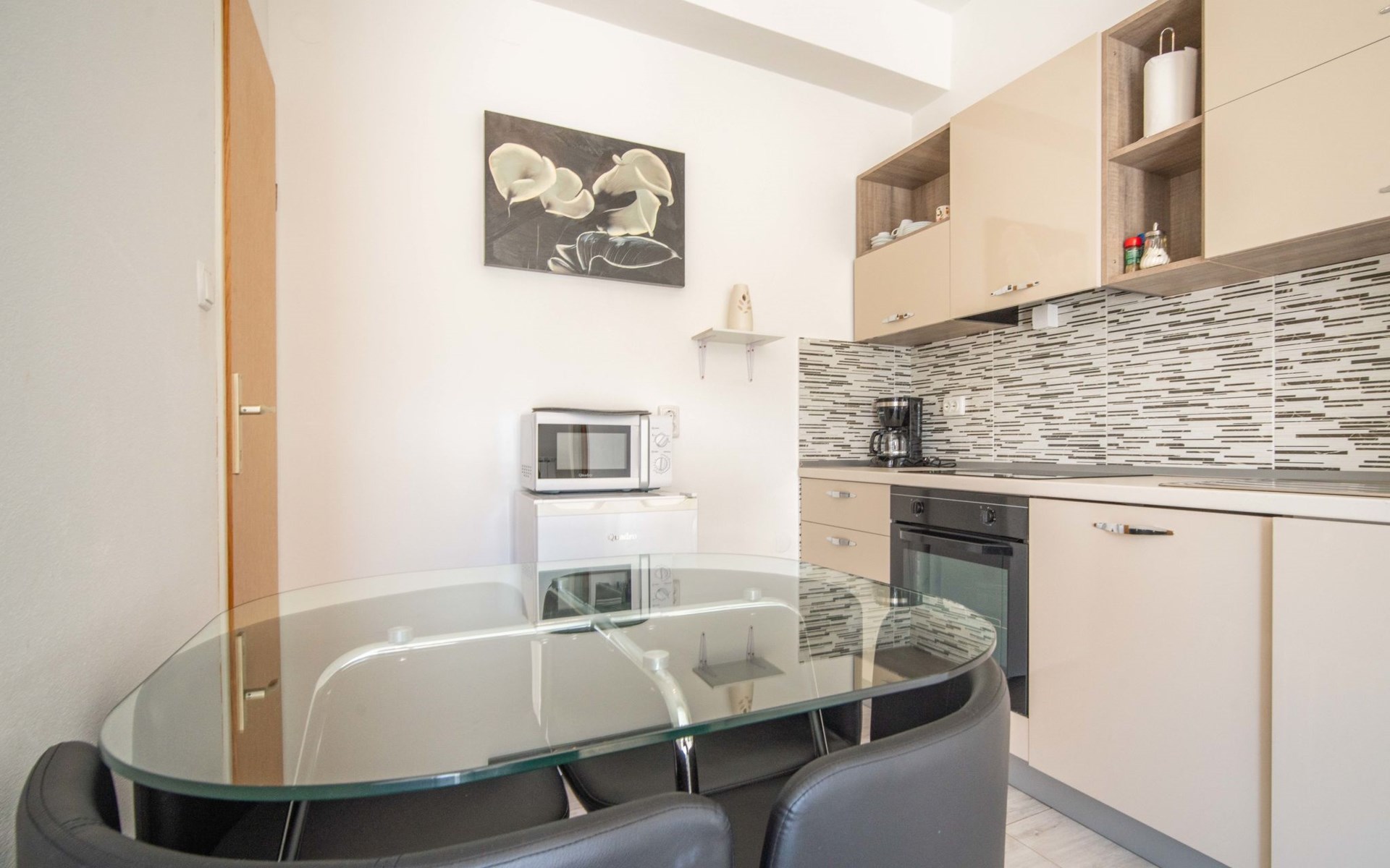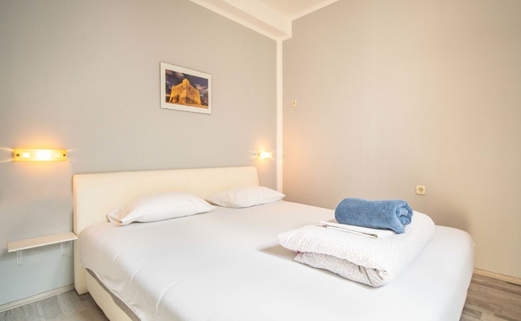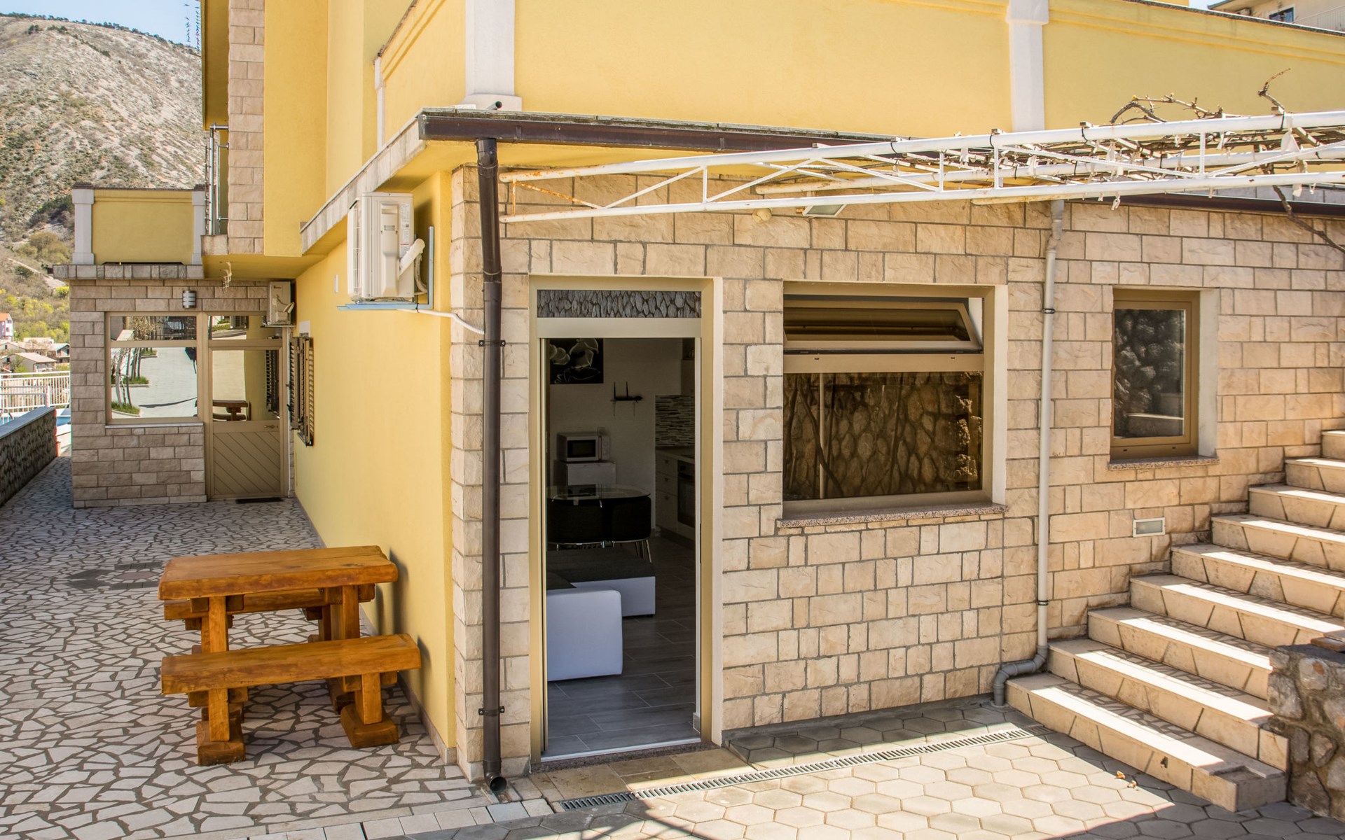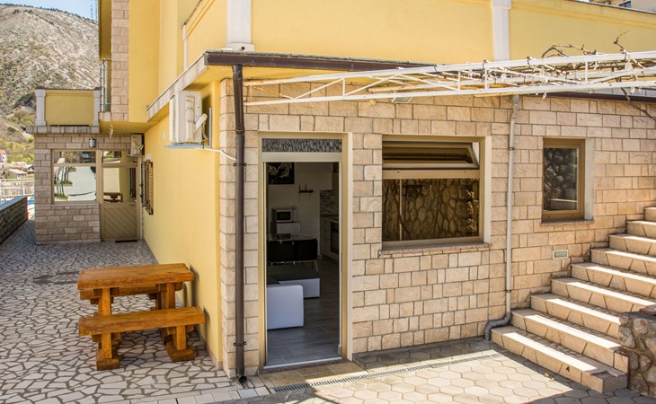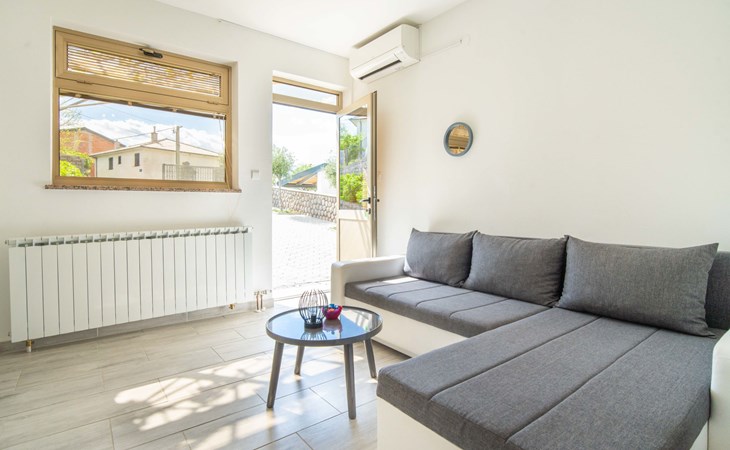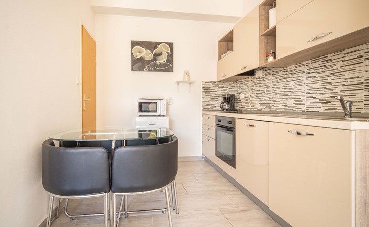 Apartment house "Miškulin". 1.4 km from the centre of Senj, in a sunny, elevated position, 500 m from the sea, 500 m from the beach, in a cul-de-sac. For shared use: property 700 m2, swimming pool (26 m2, depth 135 cm, seasonal availability: 11.May. - 28.Sep.). Unconventional pool shape. Shower/WC in the pool area, terrace (50 m2), garden furniture, barbecue house, children's playground (slide, swing). In the house: internet access, washing machine (for shared use, extra). Parking at the house on the premises. Shop 250 m, supermarket 2 km, restaurant 1.5 km, bus stop 1.3 km, pebble beach 500 m, public bathing area 2.3 km, concrete beach 2.3 km.