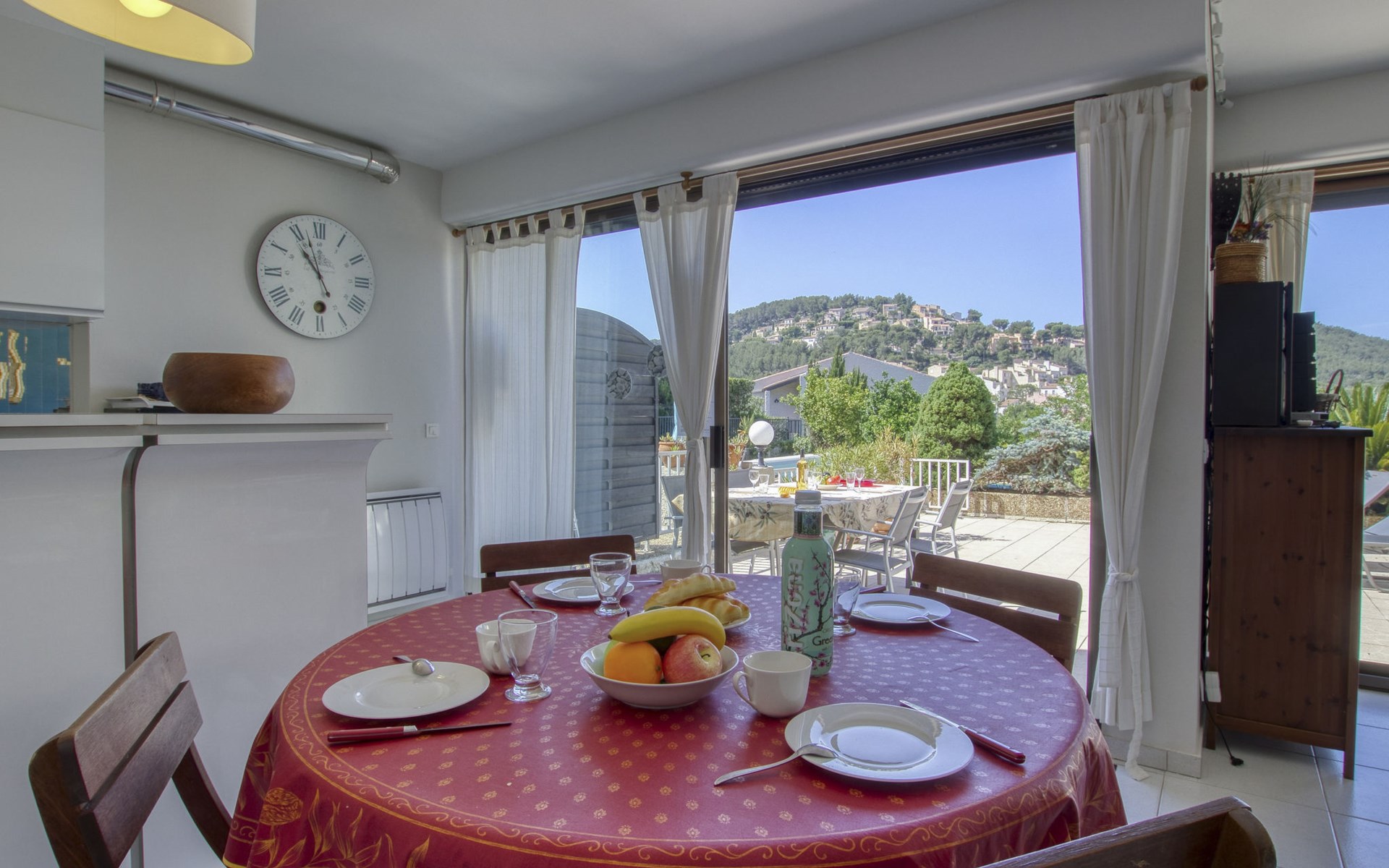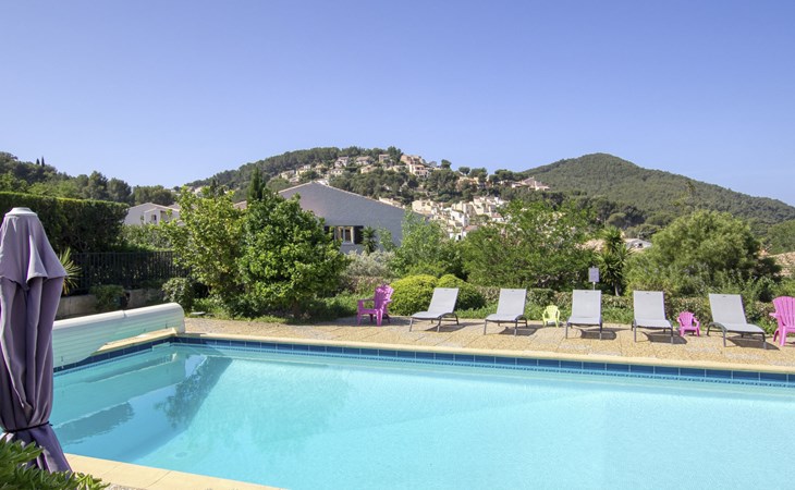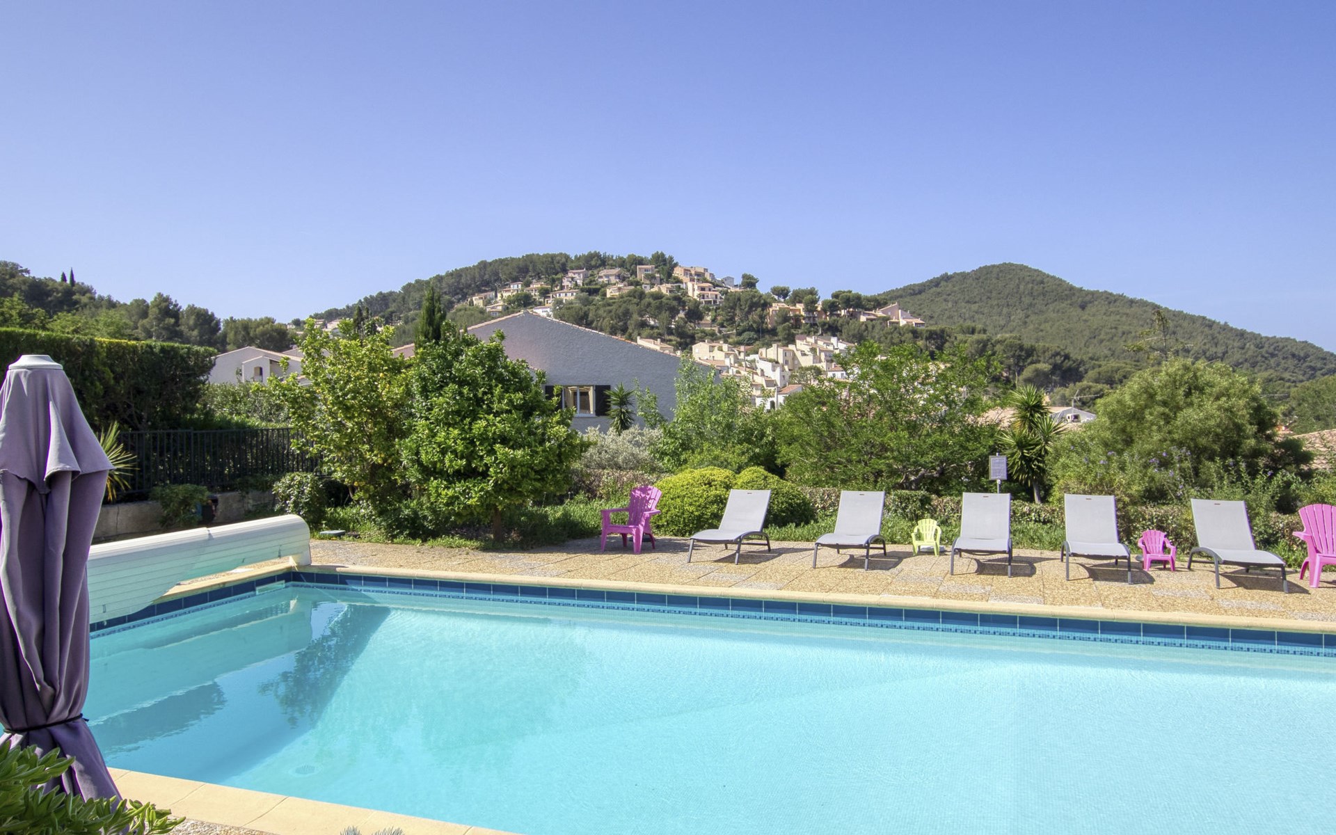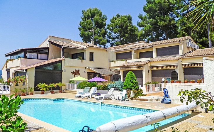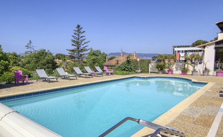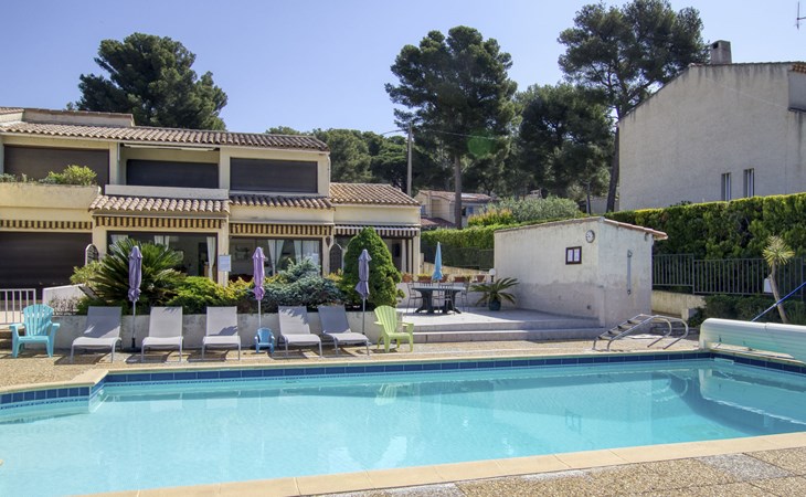 The "La Madrague d'Azur" residence is a house divided into 6 apartments, situated in a residential area in enclosed treelined, flowered grounds of 2000 m2. Apartment block "La Madrague d'Azur". On the outskirts, 2 km from the centre of Saint Cyr sur Mer, 200 m from the sea. For shared use: swimming pool angular (13 x 6 m, depth 100 - 250 cm, seasonal availability: 15.May. - 22.Oct.) with alarm system. Shop, grocery 200 m, bus stop "Le Viguier" 1.8 km, railway station "Saint Cyr les Lecques-La Cadière" 2.7 km, sandy beach 200 m, shingle beach 300 m. Golf course (18 hole) 8 km, tennis 4 km. Nearby attractions: Aqualand 3 km. Hiking paths: Sainte Baume, Sainte Victoire, Calanques Port-Cros, Porquerolles, Ile verte, Embiez, Figuerolles, Cassis. Please note: residence with electric gates. The photograph shows a typical example. Additional accommodations can be booked. Each apartment is equipped with electric shutters. Swimming pool opening hours: - from May 15th to 31st: from 11h to 18h - June: from 10h to 19h - July / August: from 10h to 20h - September: from 10h to 19h -from the 1st to the 22nd of October: from 11h to 18h.