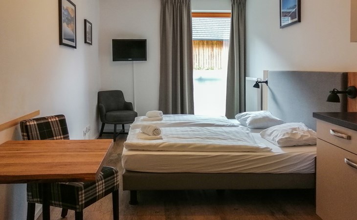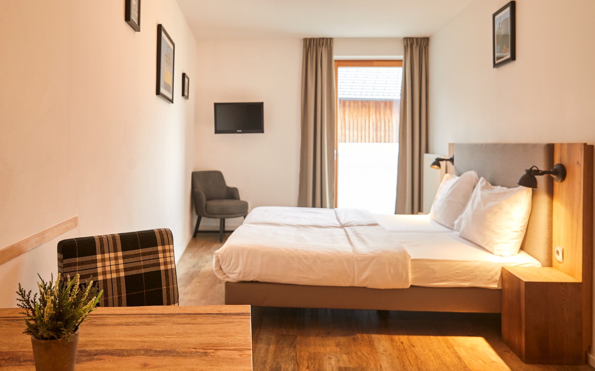 Enjoy a stay in this comfortable hotel room, located on the first floor of the main building of Dormio Resort Obertraun. The main building includes the restaurant, bar, wellness area and a covered swimming pool.