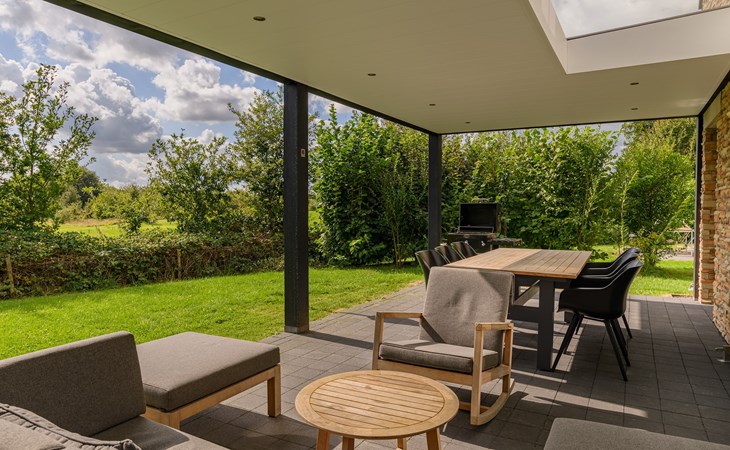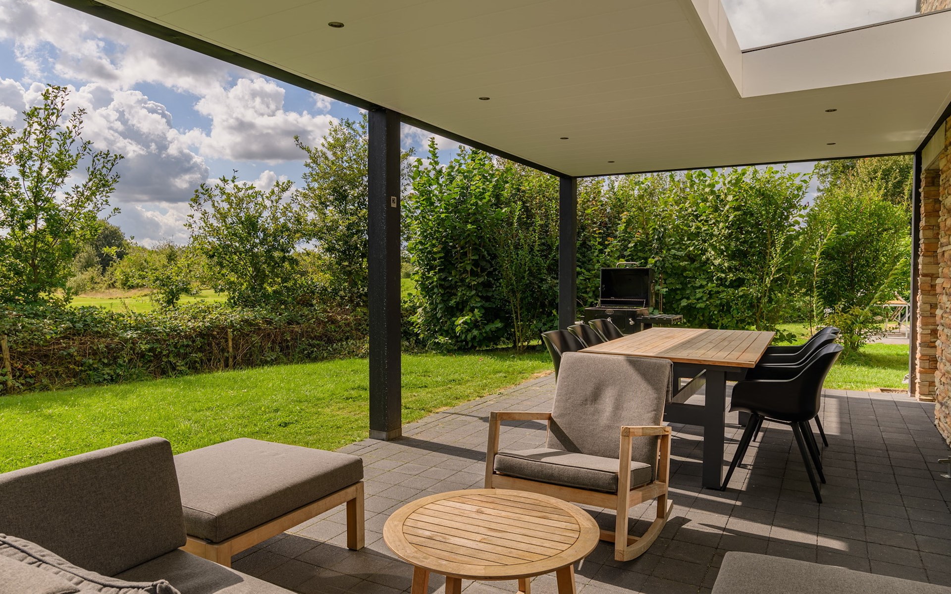 From the lounge, there is access to the large veranda with a dining set, comfortable lounge set, heater and a barbecue. Perfect for sitting outside all year round!