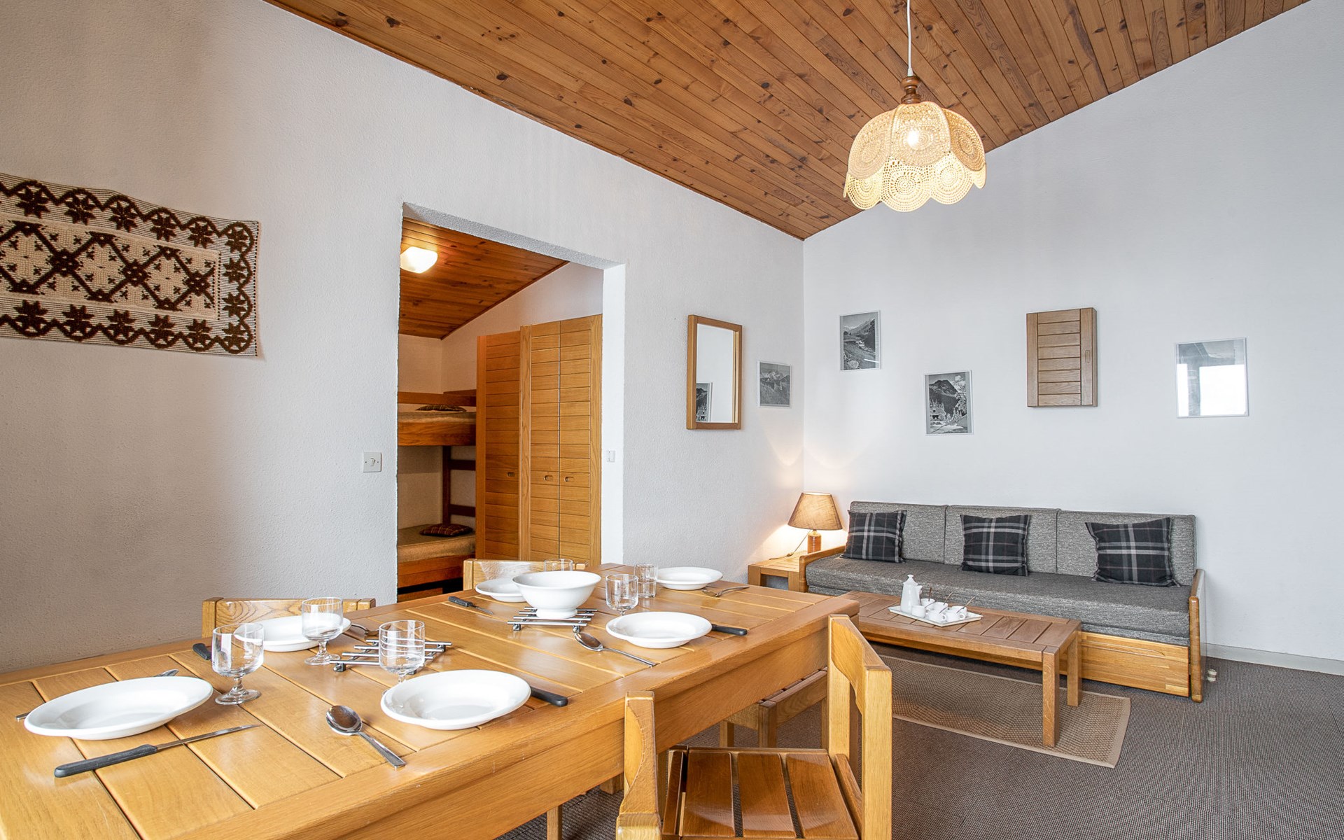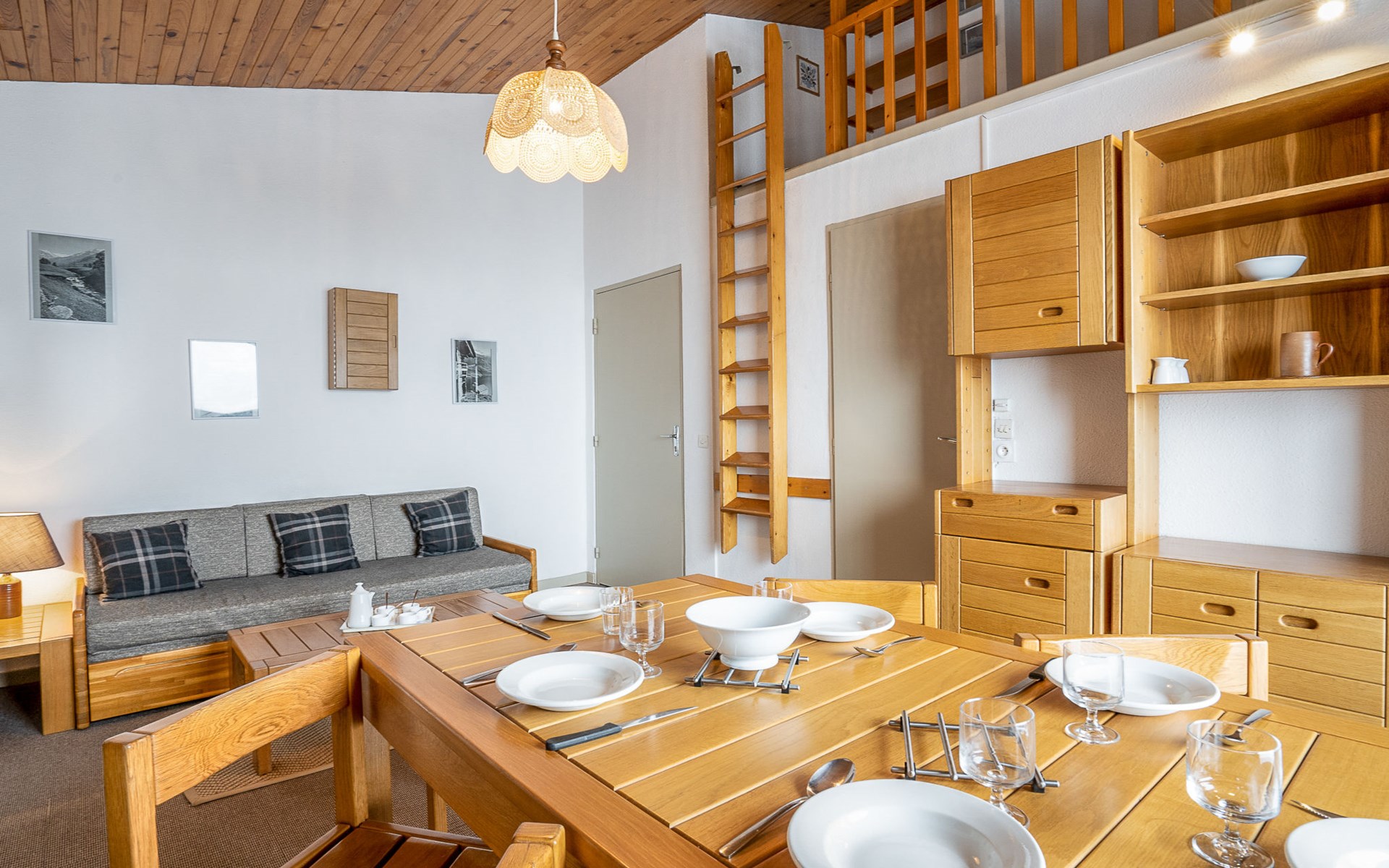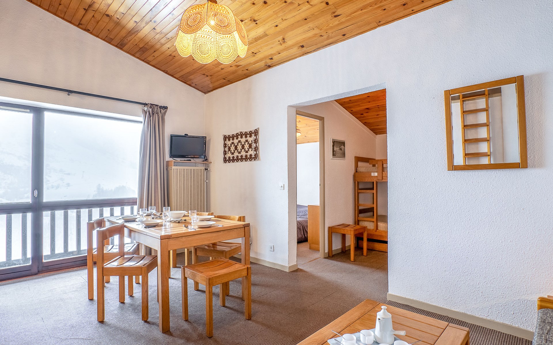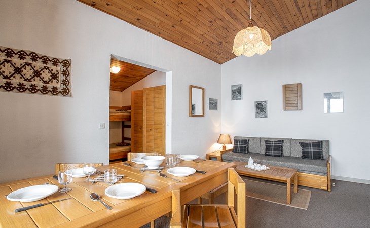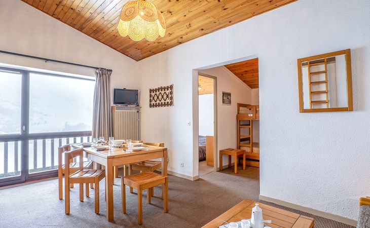 Residence "Le Jettay", 5 storeys. 500 m from the centre of La Croisette, directly by the skiing area. In the complex: storage room for skis, central heating system. Public parking. Grocery, supermarket 200 m, shopping centre 500 m, bus stop "Les Fontanettes Haut" 500 m. Sports centre 500 m, skisport facilities 50 m, slopes 10 m, ski school 500 m. Well-known ski regions can easily be reached: 3 Vallées. Please note: no lift. The photograph shows a typical example. Additional accommodations can be booked. The residence "Le JETAY" is linked to the resort centre (ski school, all shops, tourist office) by stairs. Eagle and jackdaws without elevator entrance.