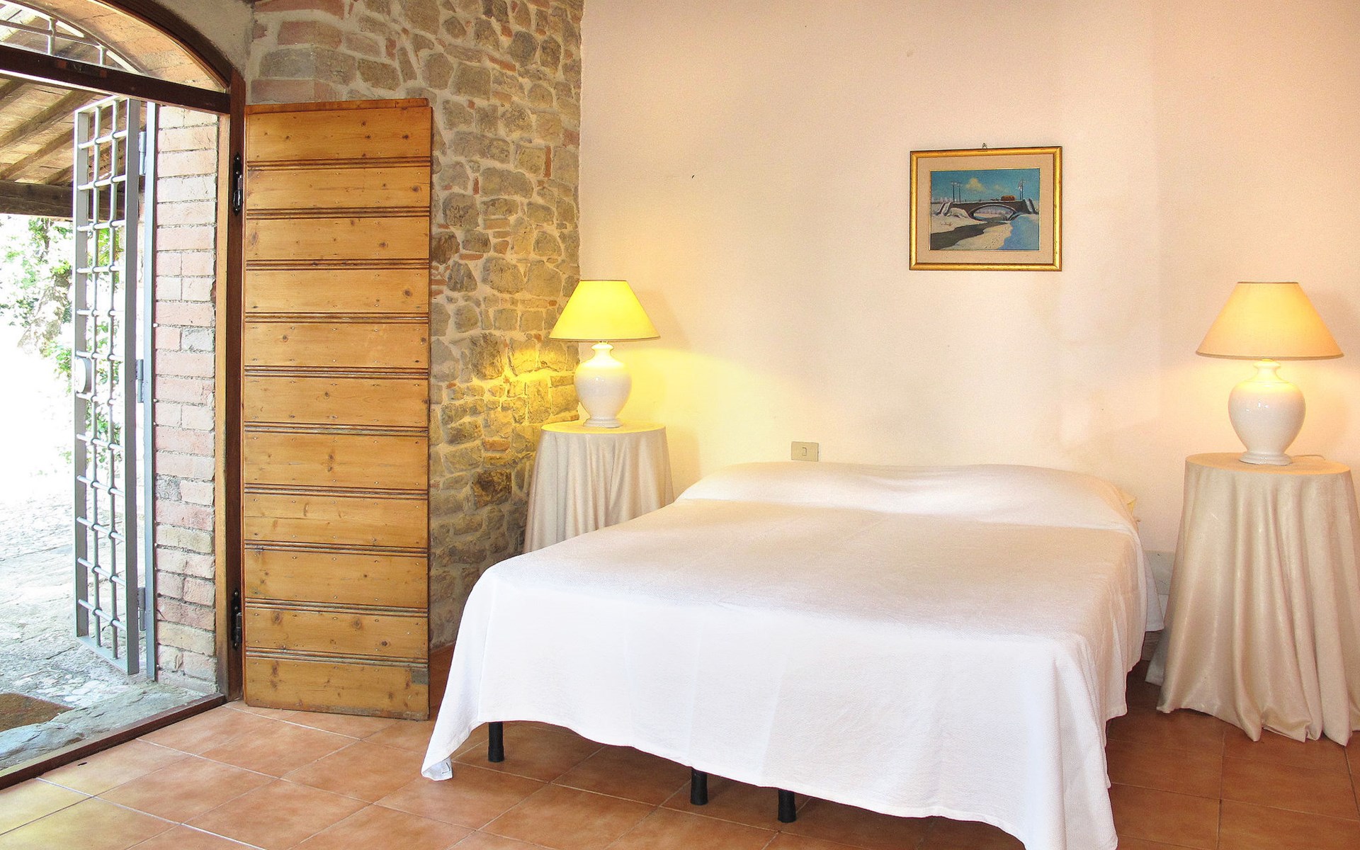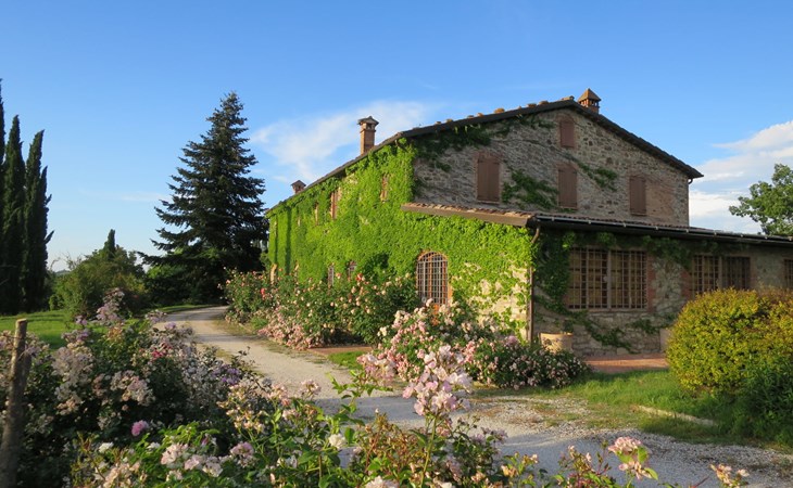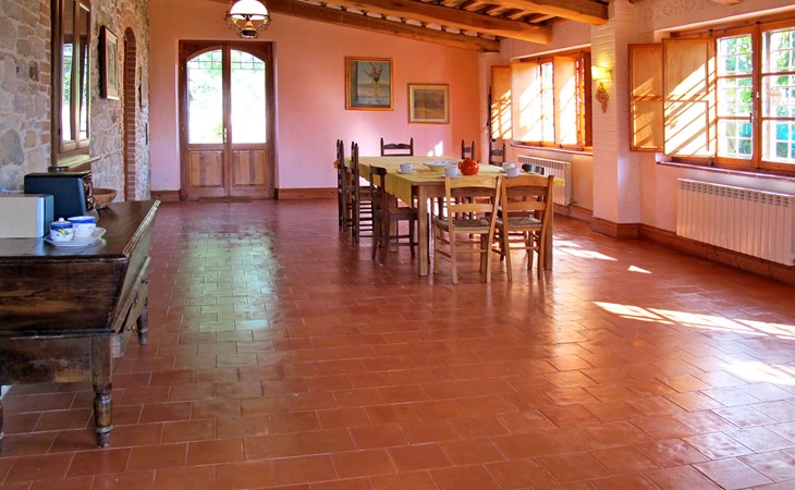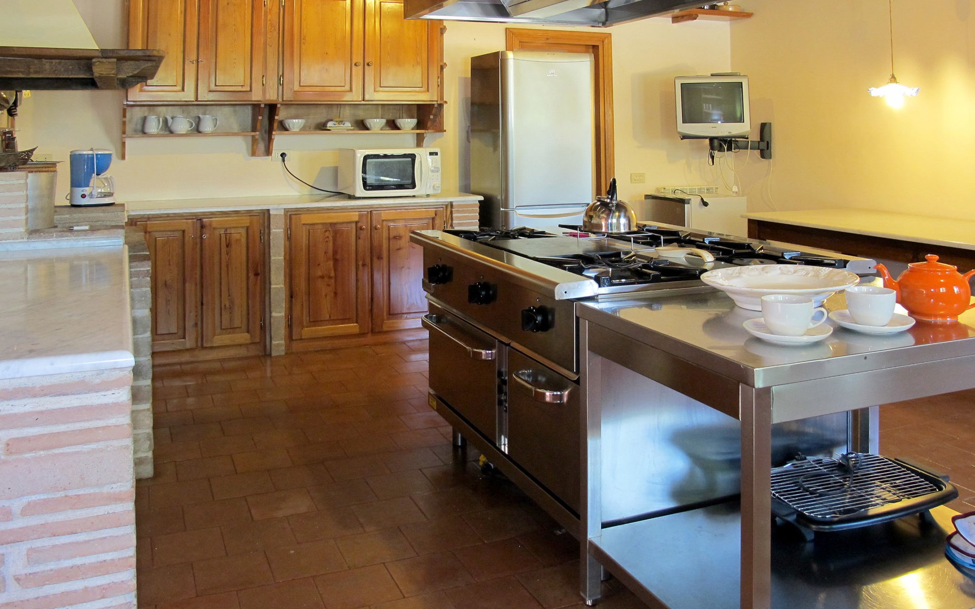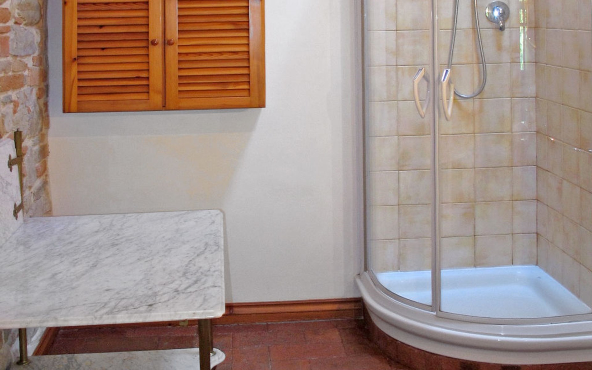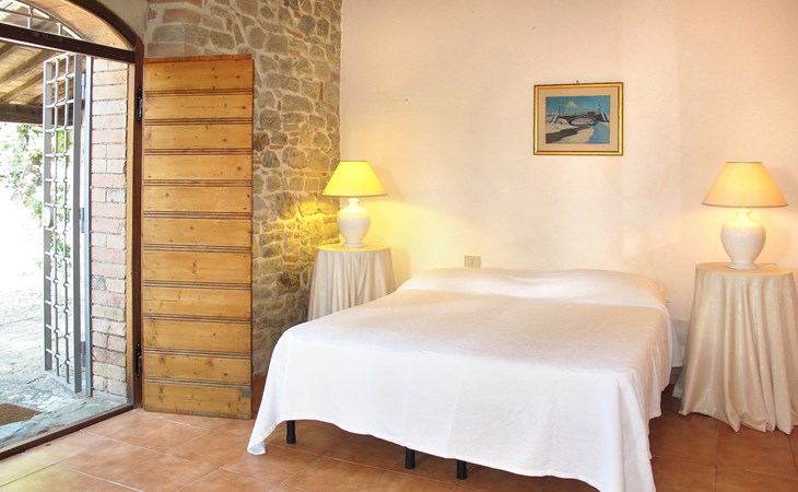 Beautiful country house "Casa Ingrid", detached, surrounded by fields. 15 km from the centre of Marsciano, 4 km from the centre of San Venanzo, 48 km from the centre of Perugia, in the countryside. Private: property 2 ha with lawn and wildlife garden, lawn for sunbathing, swimming pool (14 x 7 m, depth 120 - 250 cm, seasonal availability: 01.Jan. - 31.Dec.). Outdoor shower, pool maintenance by the owner/gardener. In the house: sauna (extra). Fitness room. 2.2 km long motor access (via unmade road). Parking on the premises. Shop 4 km. Local sale of farm products. Pool with mobile roofing (roofed until end of May/beginning of September, otherwise open), the roofing may only be operated by the owner.