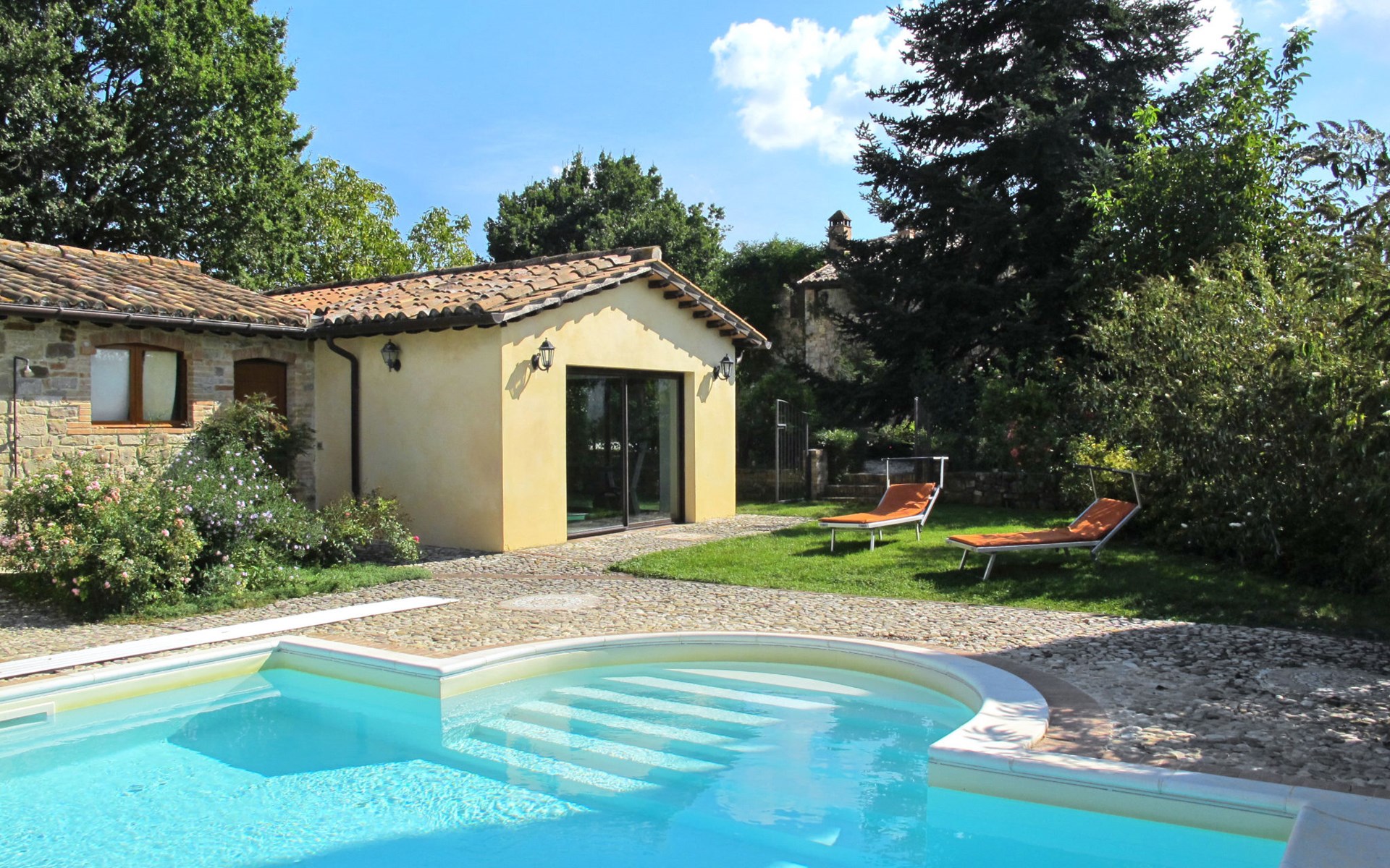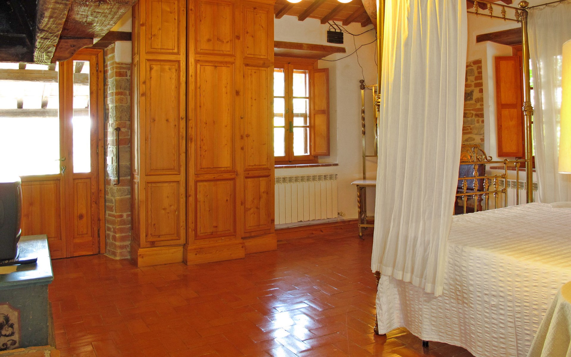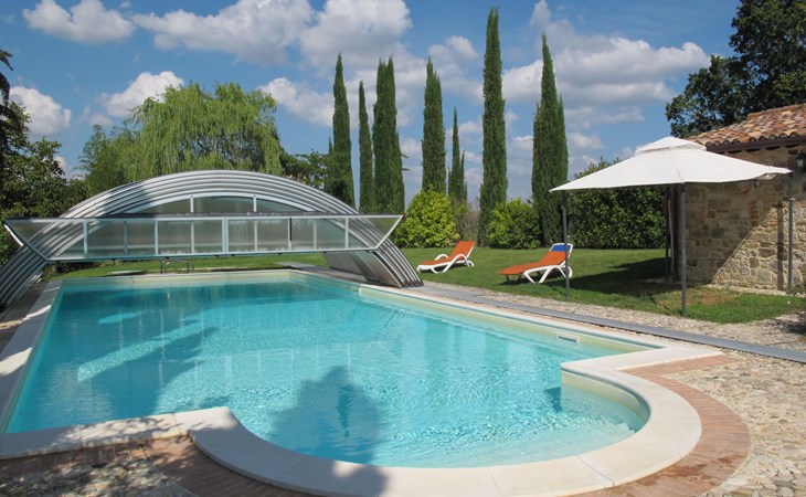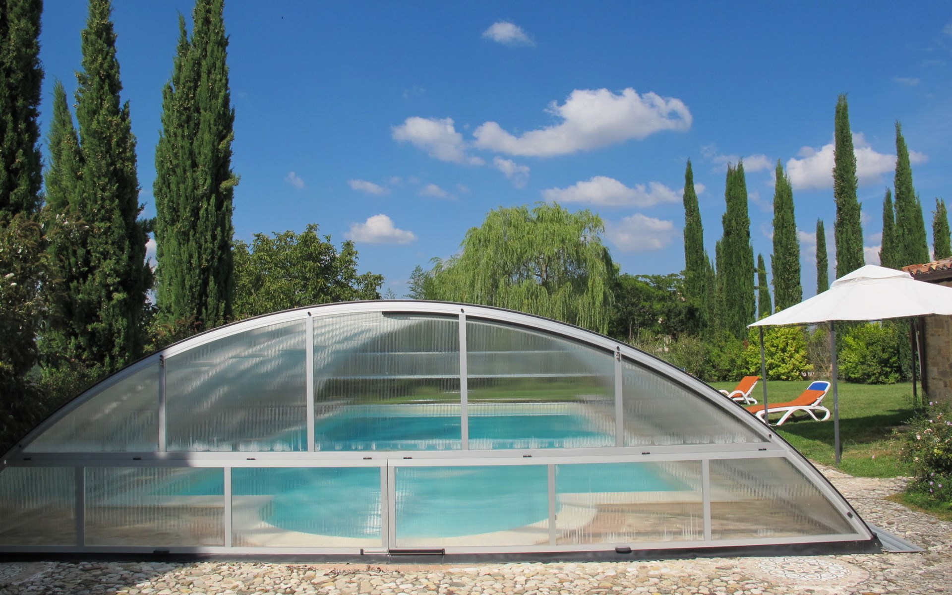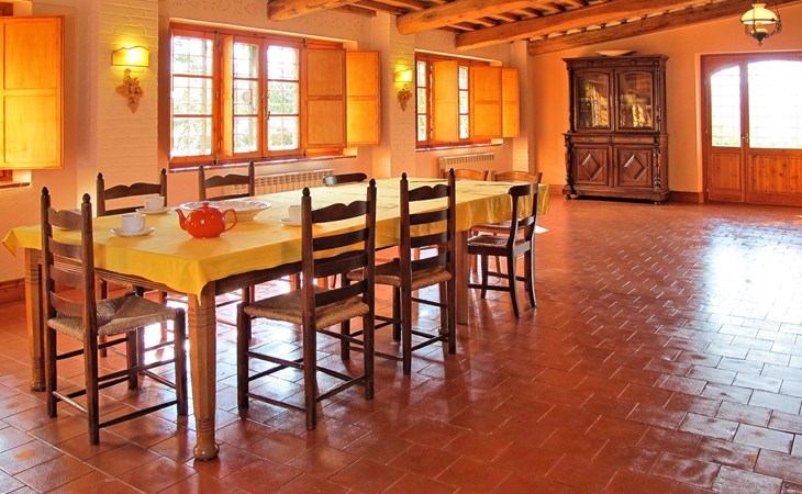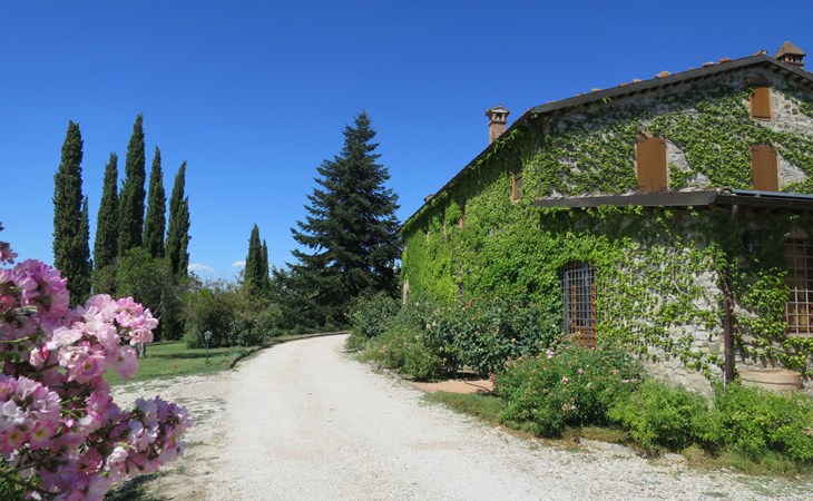 Beautiful country house "Casa Ingrid", detached, surrounded by fields. 15 km from the centre of Marsciano, 4 km from the centre of San Venanzo, 48 km from the centre of Perugia, in the countryside. Private: property 2 ha with lawn and wildlife garden, lawn for sunbathing, swimming pool (14 x 7 m, depth 120 - 250 cm, seasonal availability: 01.Jan. - 31.Dec.). Outdoor shower, pool maintenance by the owner/gardener. In the house: sauna (extra). Fitness room. 2.2 km long motor access (via unmade road). Parking on the premises. Shop 4 km. Local sale of farm products. Pool with mobile roofing (roofed until end of May/beginning of September, otherwise open), the roofing may only be operated by the owner.