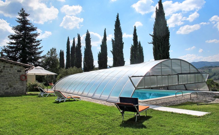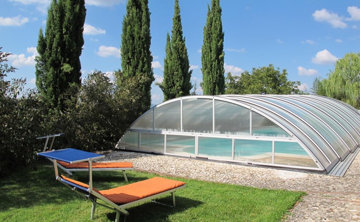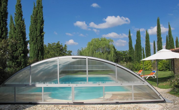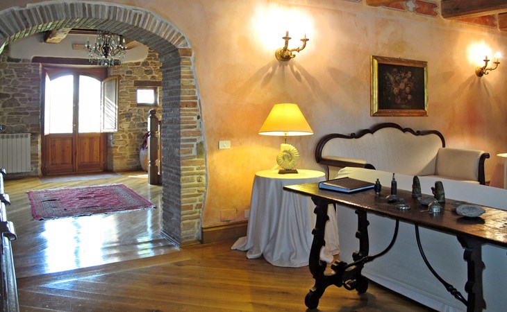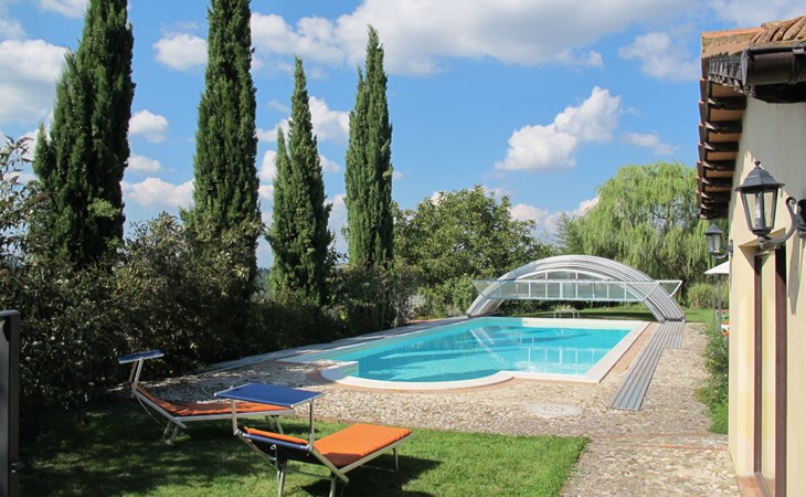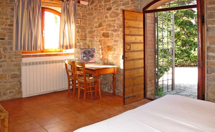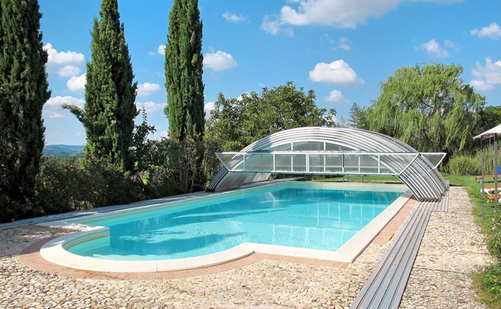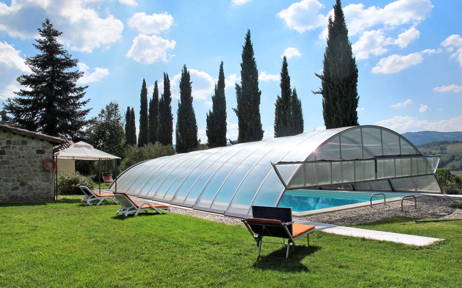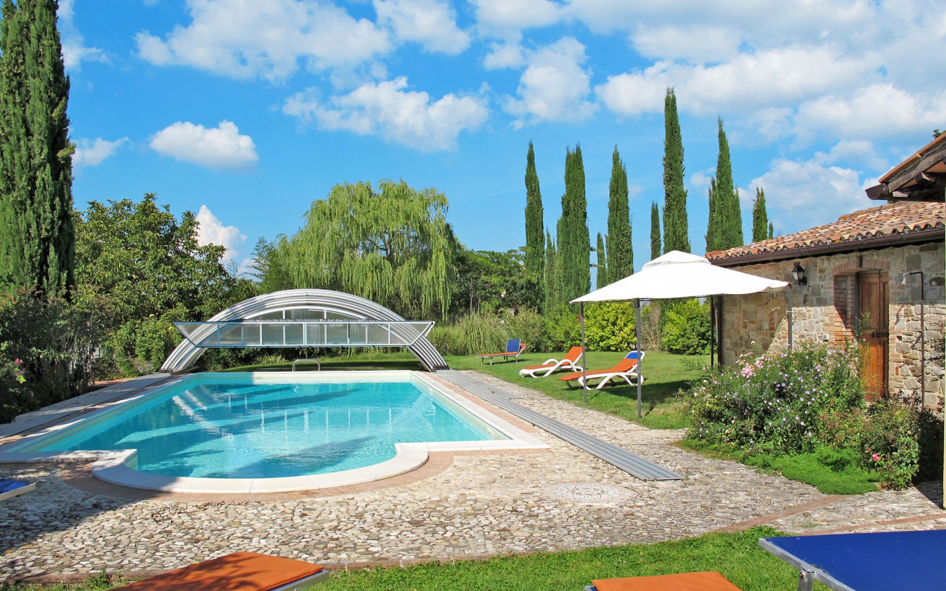 Beautiful country house "Casa Ingrid", detached, surrounded by fields. 15 km from the centre of Marsciano, 4 km from the centre of San Venanzo, 48 km from the centre of Perugia, in the countryside. Private: property 2 ha with lawn and wildlife garden, lawn for sunbathing, swimming pool (14 x 7 m, depth 120 - 250 cm, seasonal availability: 01.Jan. - 31.Dec.). Outdoor shower, pool maintenance by the owner/gardener. In the house: sauna (extra). Fitness room. 2.2 km long motor access (via unmade road). Parking on the premises. Shop 4 km. Local sale of farm products. Pool with mobile roofing (roofed until end of May/beginning of September, otherwise open), the roofing may only be operated by the owner.
