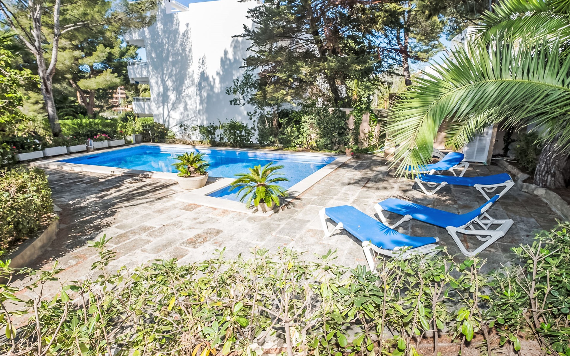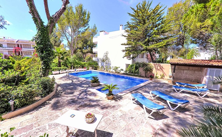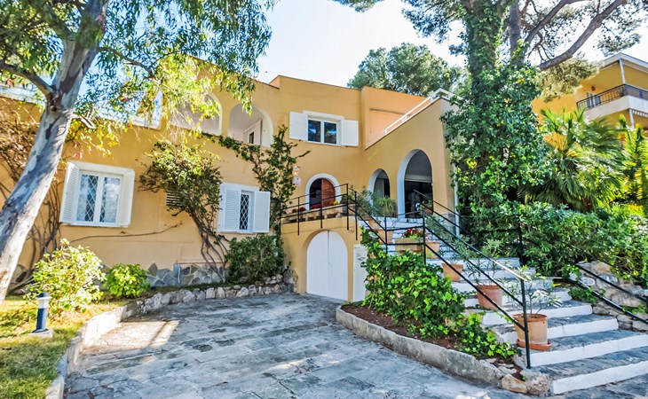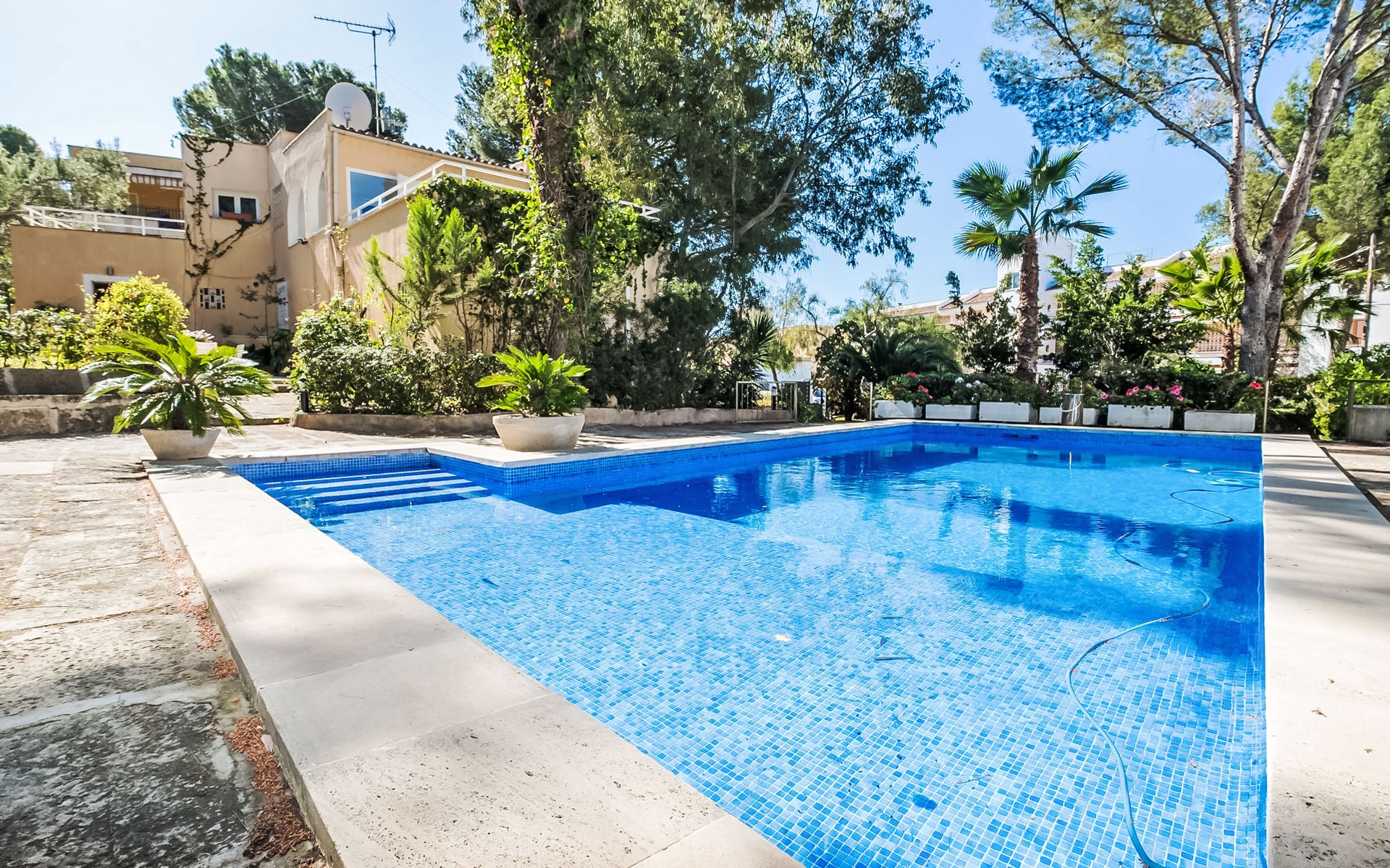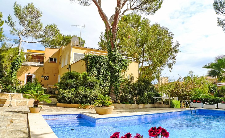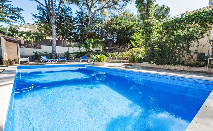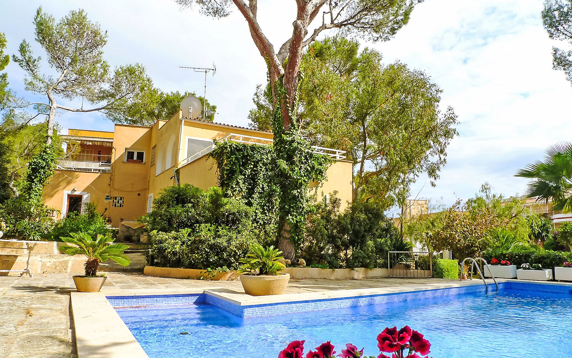 Large, cosy villa "Santa Ponça", 3 storeys. 1.5 km from the centre of Santa Ponça, in a quiet, sunny position, 100 m from the sea. Private: property 1'200 m2 (fenced), biotope, swimming pool angular (5 x 10 m, depth 180 cm, seasonal availability: 01.Jan. - 31.Dec.). Outdoor shower, patio (120 m2), arbour, pergola (25 m2), garden furniture, barbecue. In the house: internet access, WiFi, solarium, air conditioning, washing machine. Stepped path (10 steps) to the house. Parking (for 3 cars) at the house on the premises. Shop 1 km, restaurant 500 m, bus stop 600 m, sandy beach 1 km (small), shingle beach 200 m, diving center 100 m, swimming bay 650 m. Sports harbour 100 m, golf course (18 hole) 2.8 km. Nearby attractions: Palma centro 22 km, Calvià centro 9 km, Parc Natural Sa Dragonera 30 km. Object suitable for 8 adults. The owner does not accept any youth groups. Neighbourhood highly sensitive to noise. Quietness and good behaviour expected. The tap water has no drinking water quality.
