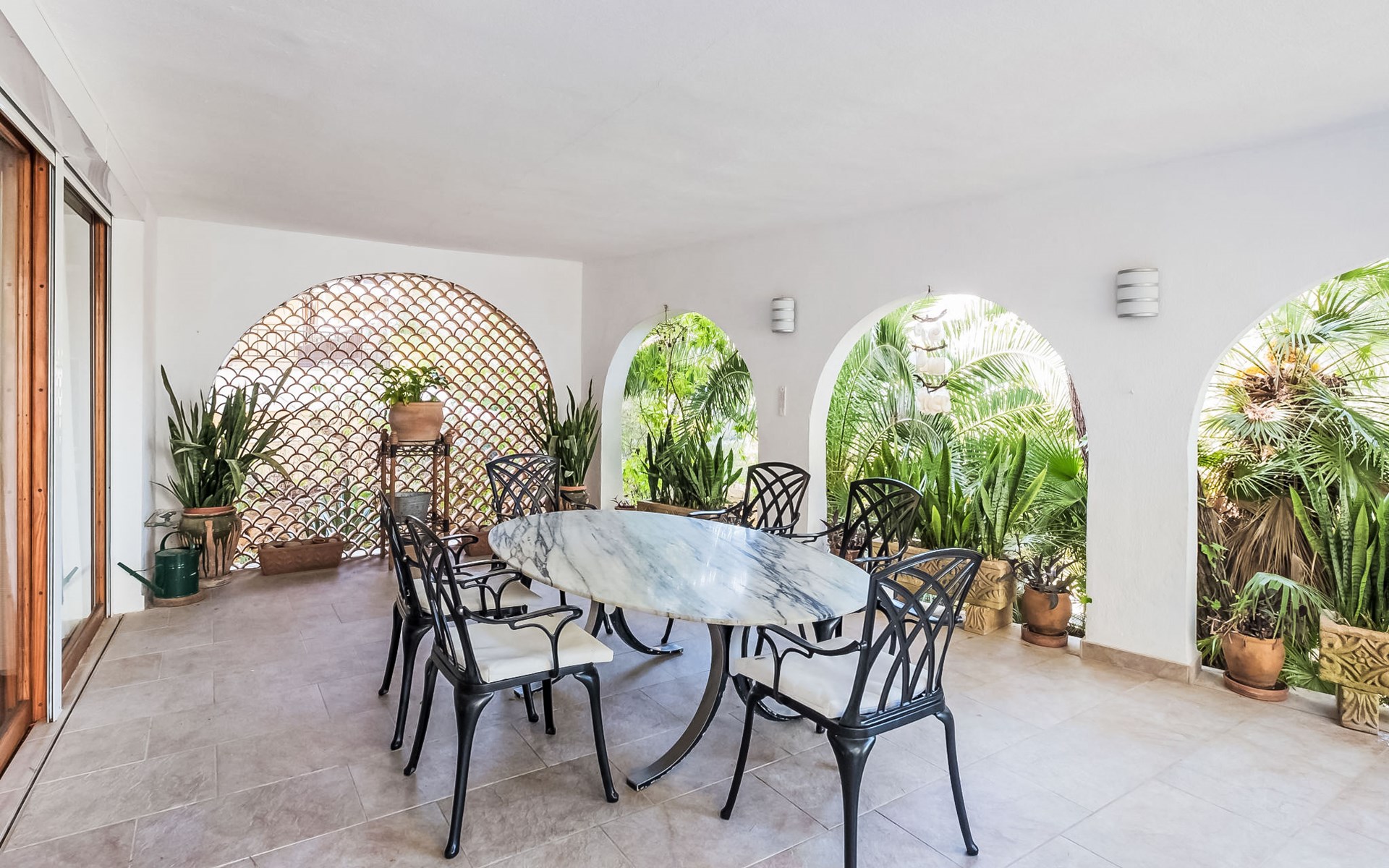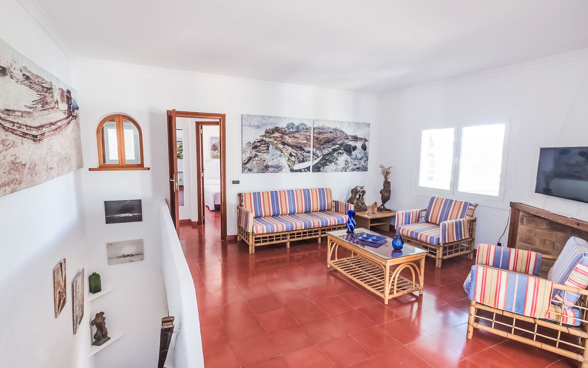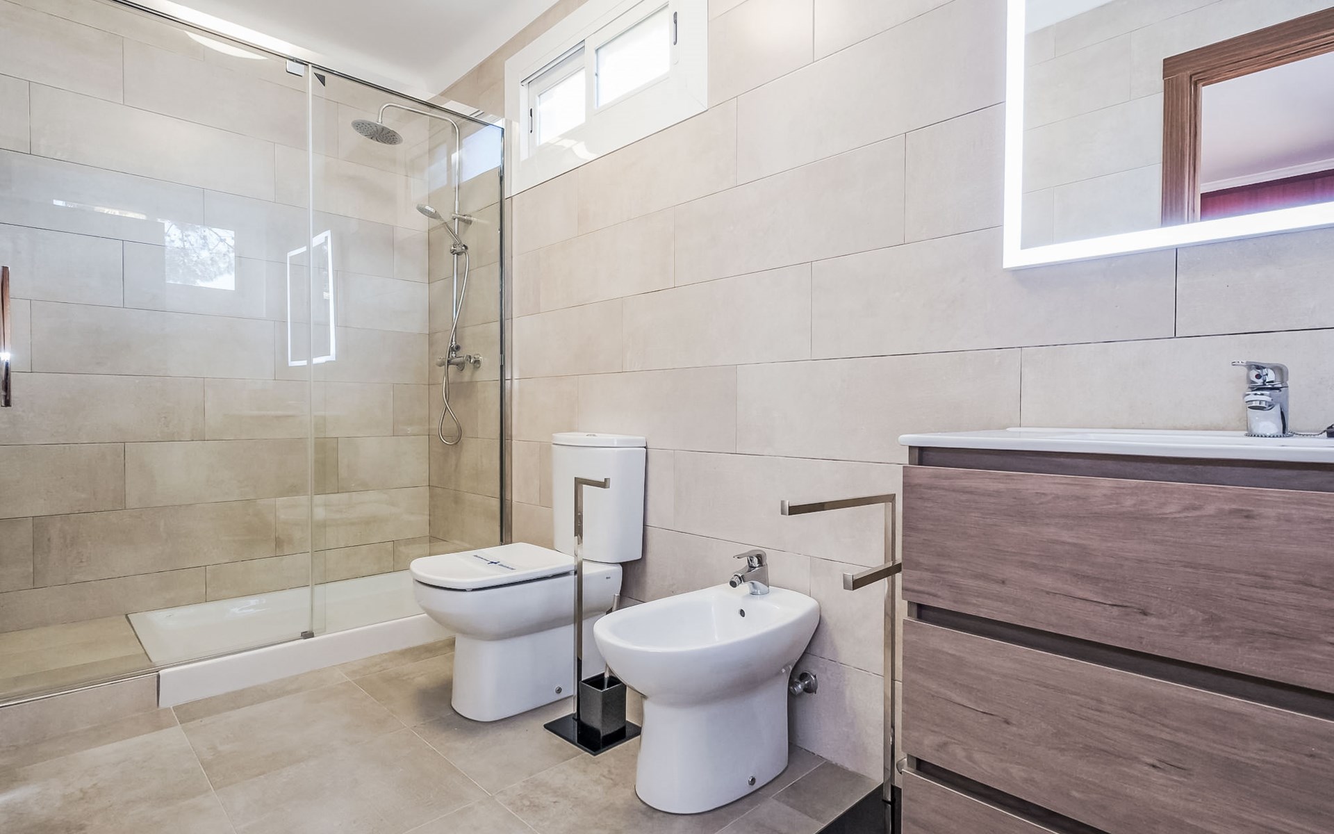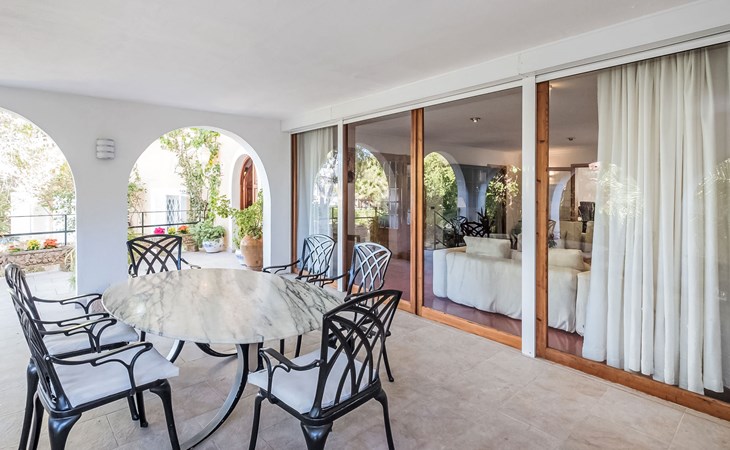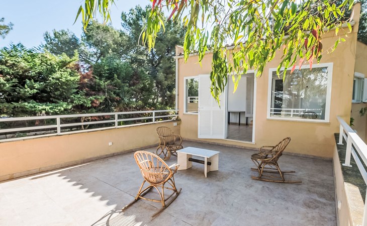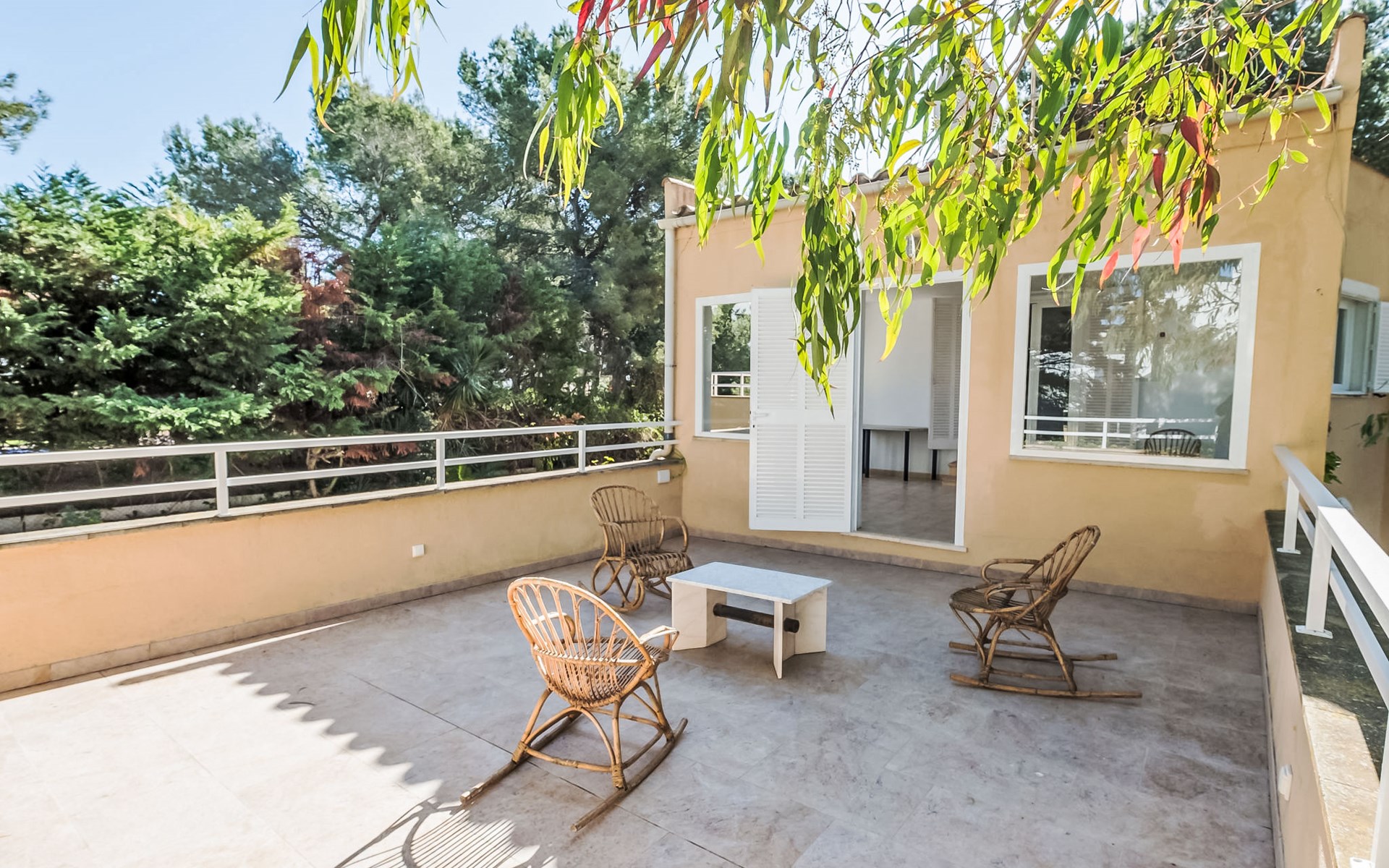 Large, cosy villa "Santa Ponça", 3 storeys. 1.5 km from the centre of Santa Ponça, in a quiet, sunny position, 100 m from the sea. Private: property 1'200 m2 (fenced), biotope, swimming pool angular (5 x 10 m, depth 180 cm, seasonal availability: 01.Jan. - 31.Dec.). Outdoor shower, patio (120 m2), arbour, pergola (25 m2), garden furniture, barbecue. In the house: internet access, WiFi, solarium, air conditioning, washing machine. Stepped path (10 steps) to the house. Parking (for 3 cars) at the house on the premises. Shop 1 km, restaurant 500 m, bus stop 600 m, sandy beach 1 km (small), shingle beach 200 m, diving center 100 m, swimming bay 650 m. Sports harbour 100 m, golf course (18 hole) 2.8 km. Nearby attractions: Palma centro 22 km, Calvià centro 9 km, Parc Natural Sa Dragonera 30 km. Object suitable for 8 adults. The owner does not accept any youth groups. Neighbourhood highly sensitive to noise. Quietness and good behaviour expected. The tap water has no drinking water quality.