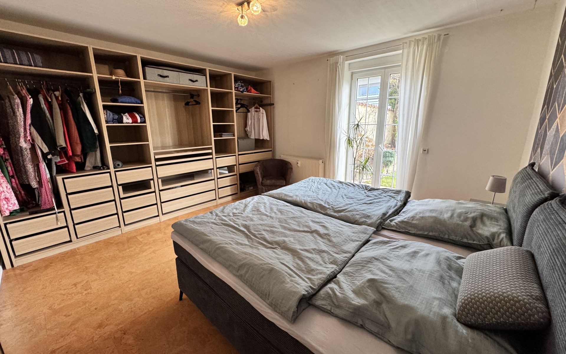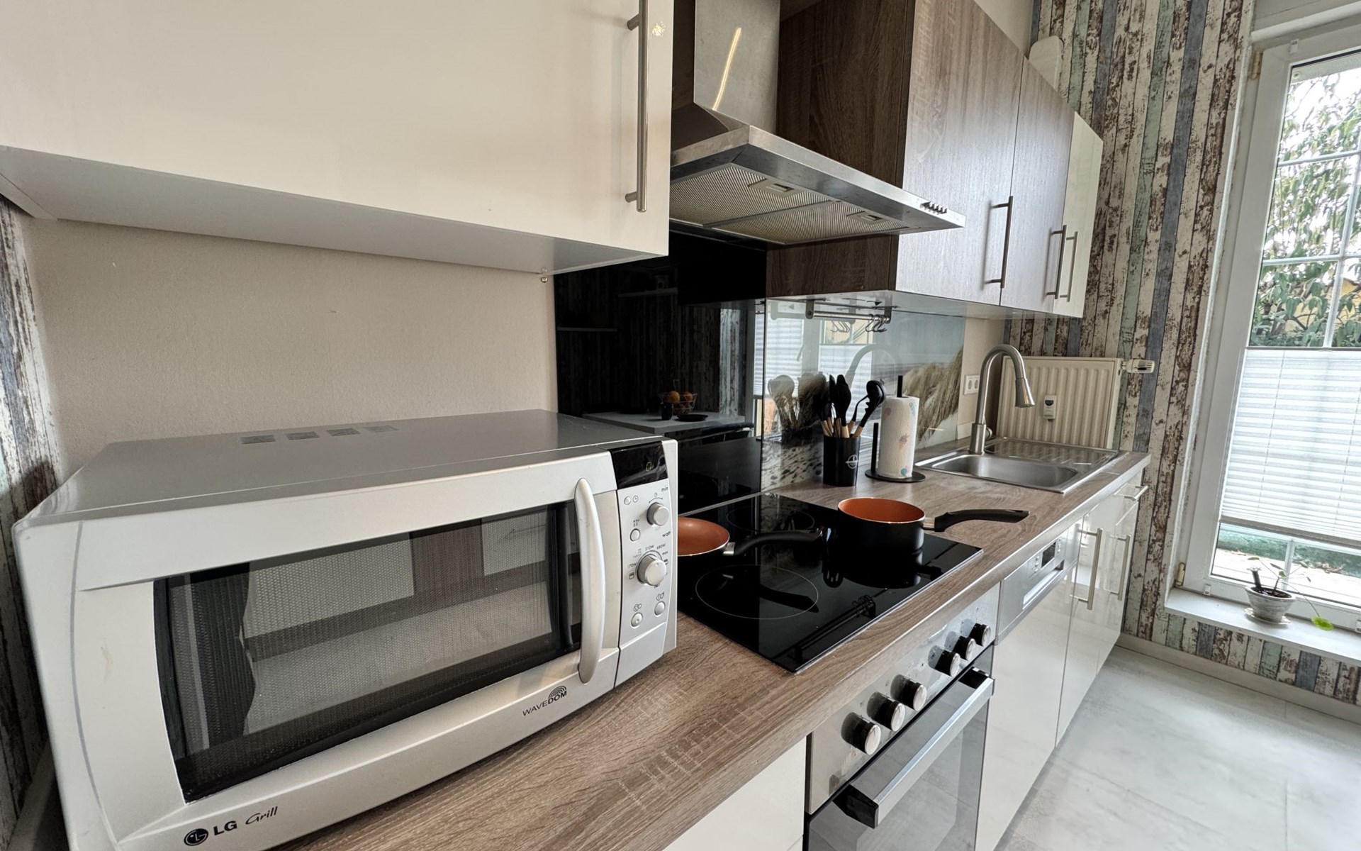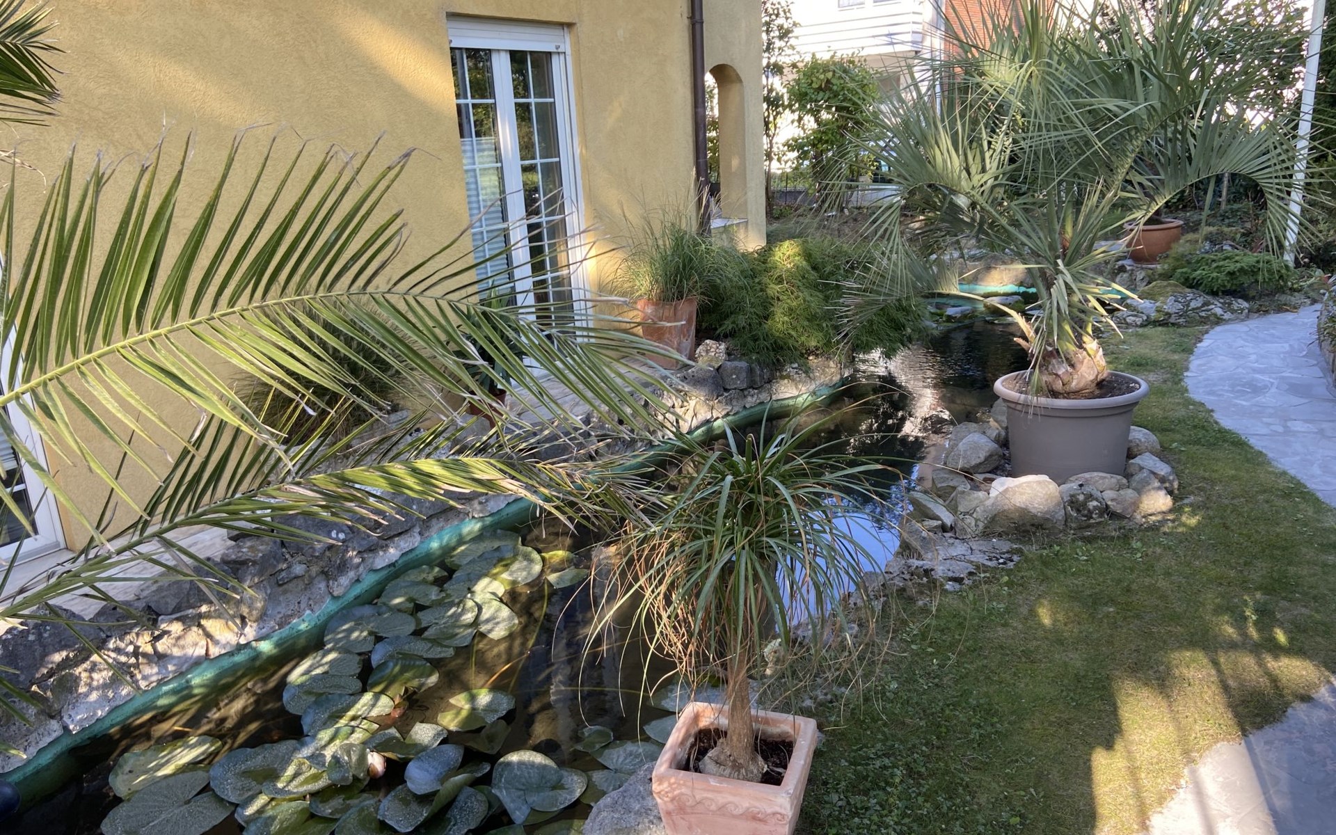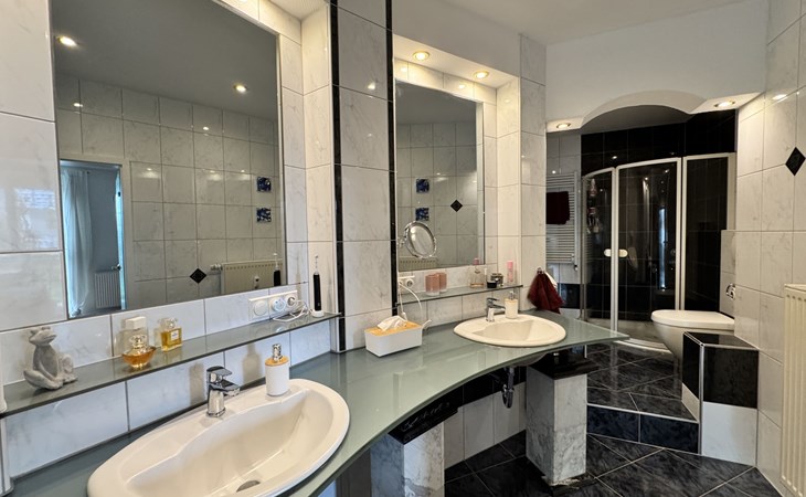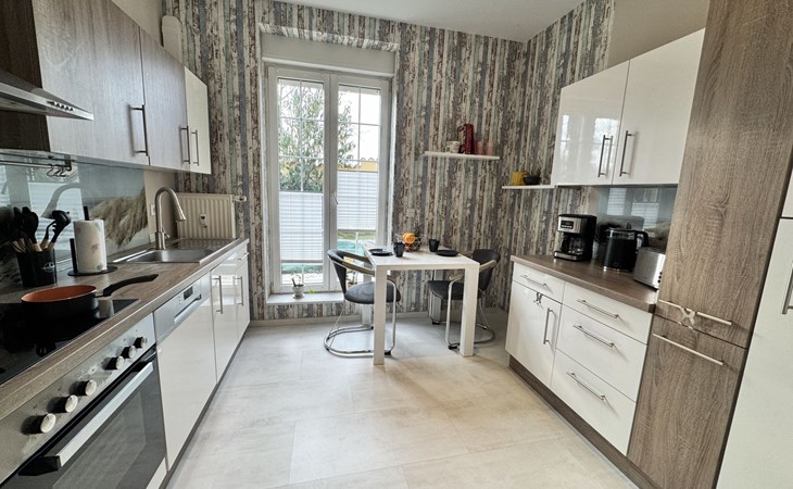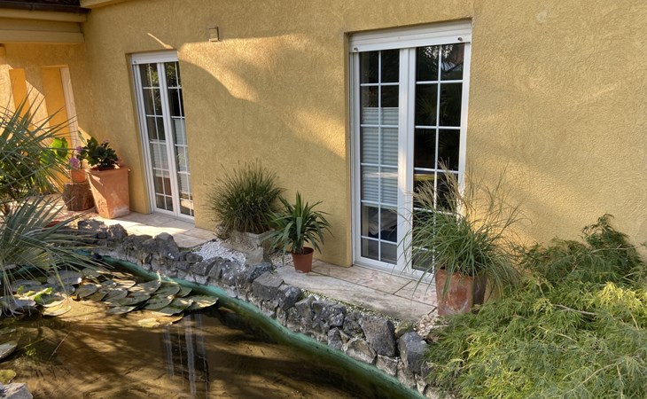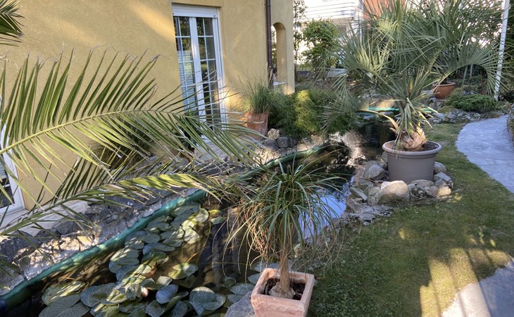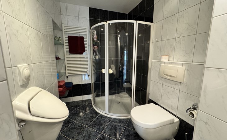 Apartment house. On the outskirts, 1.5 km from the centre, in a quiet position in the residential district. Private: property 100 m2, lawn for sunbathing, pond, parking at the house. Supermarket 200 m, restaurant 400 m, bus stop 50 m, railway station 1.5 km, outdoor swimming pool 2 km, indoor swimming pool 8 km, lake Schiedersee 9 km. Golf course (18 hole) 14 km, tennis 2 km. Please note: the owner lives in the same residence.
